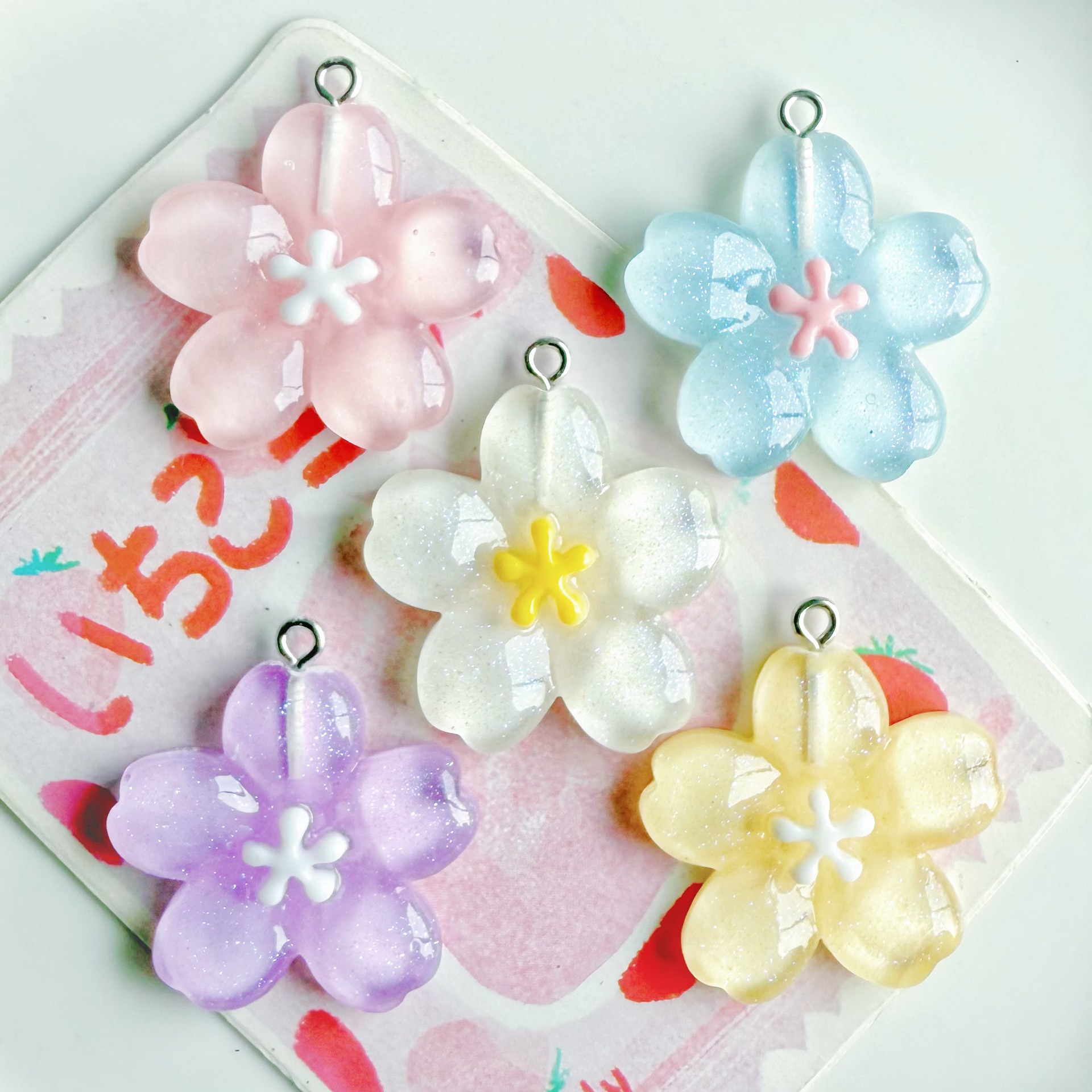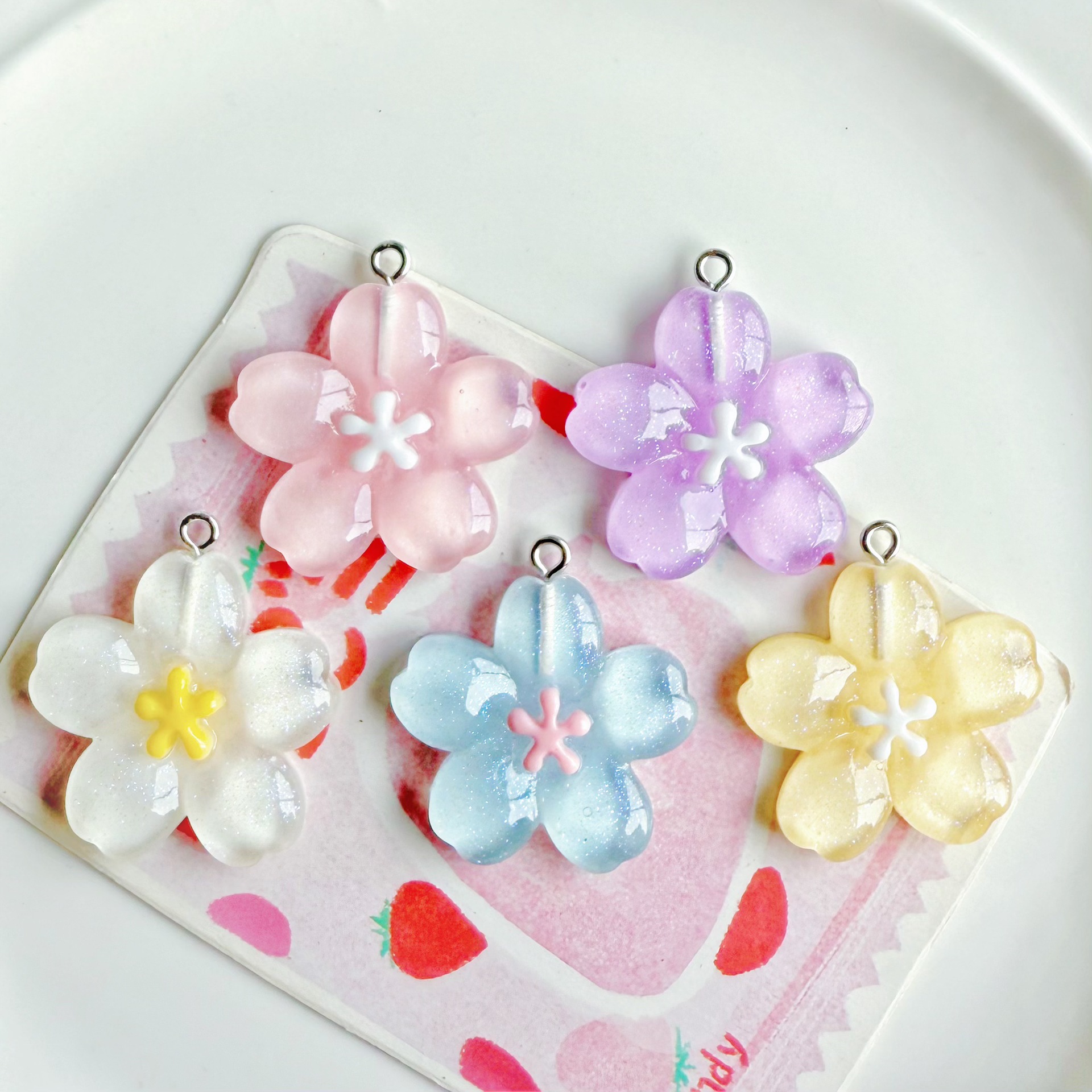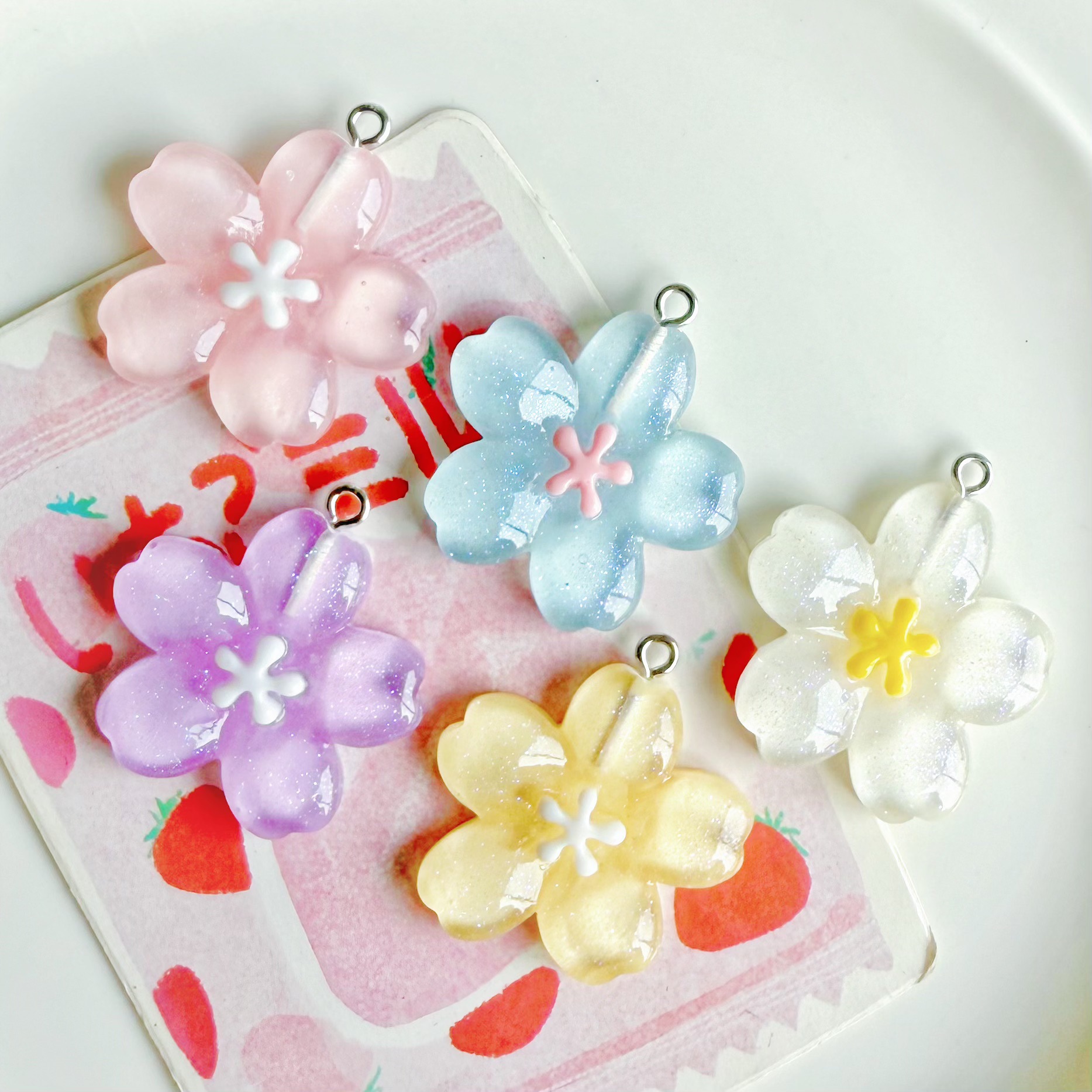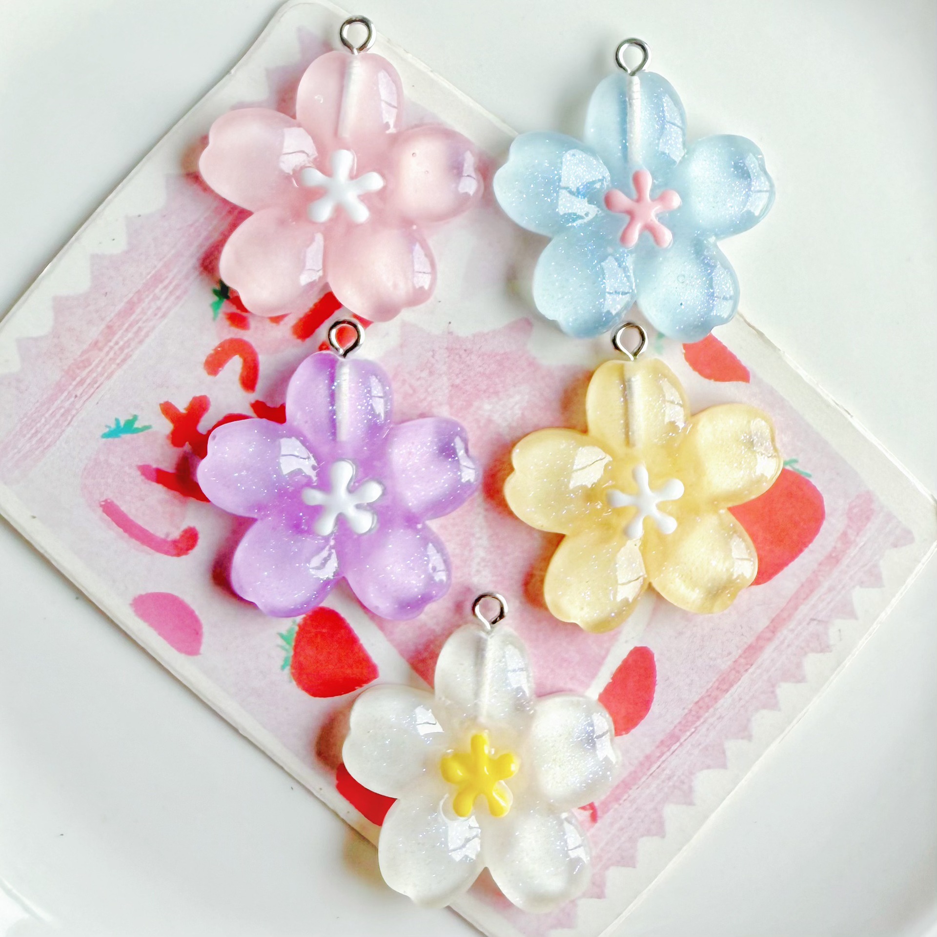 작은 신선한 수지 시뮬레이션 반짝이 투명 5 꽃잎 꽃 데이지 꽃 키 체인 펜던트 diy 보석 액세서리