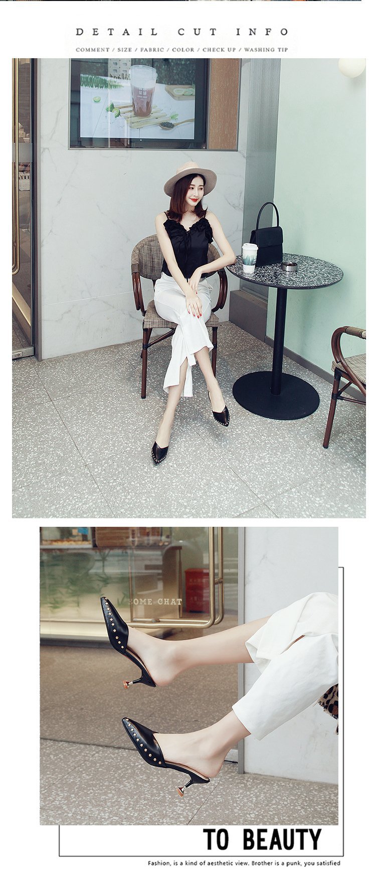 Ins 인터넷 연예인 슬리퍼 여성 2025 봄 새로운 한국 스타일 유행 바오터우 아우터, 여성용 얇은 힐 하이힐 게으른 슬리퍼 착용