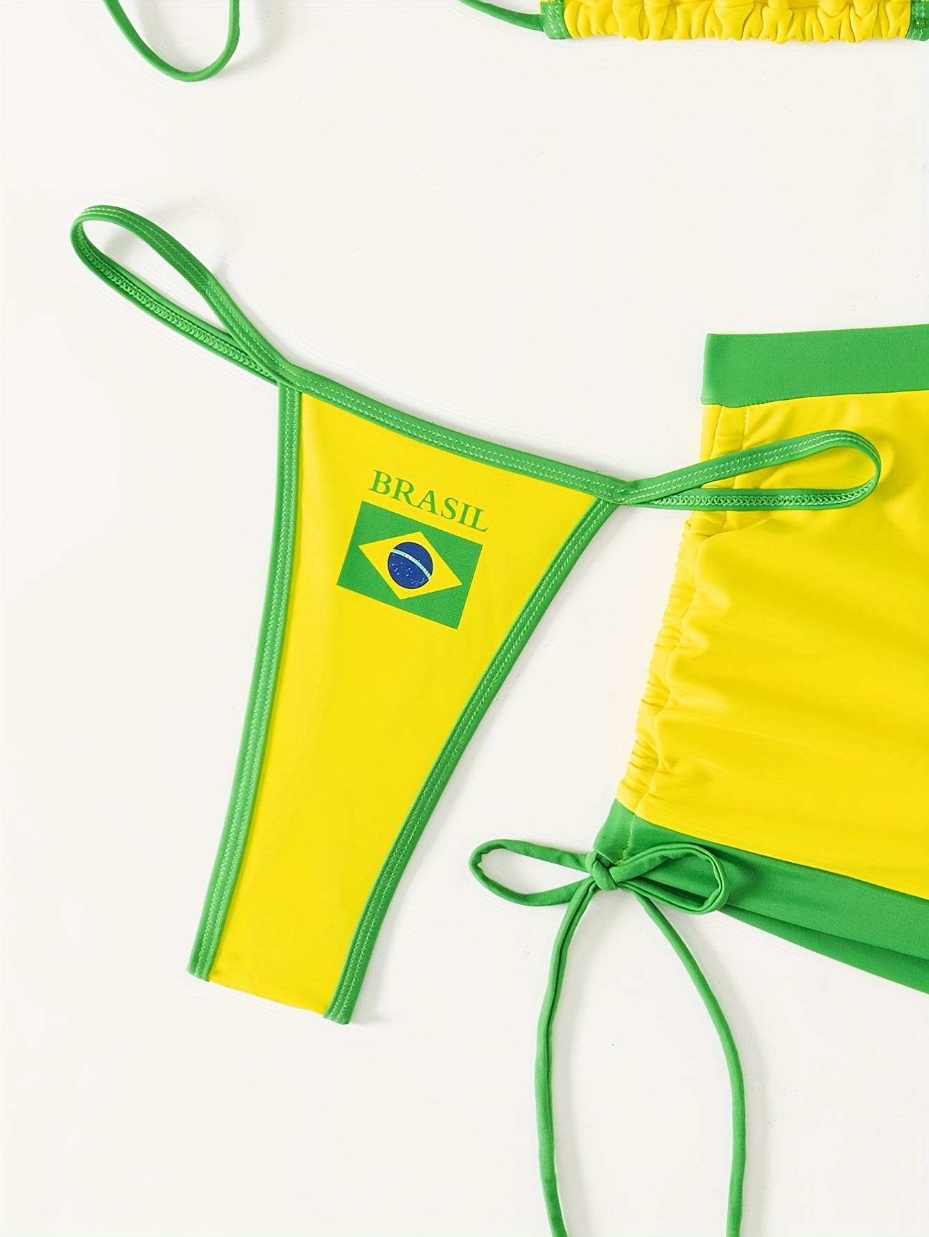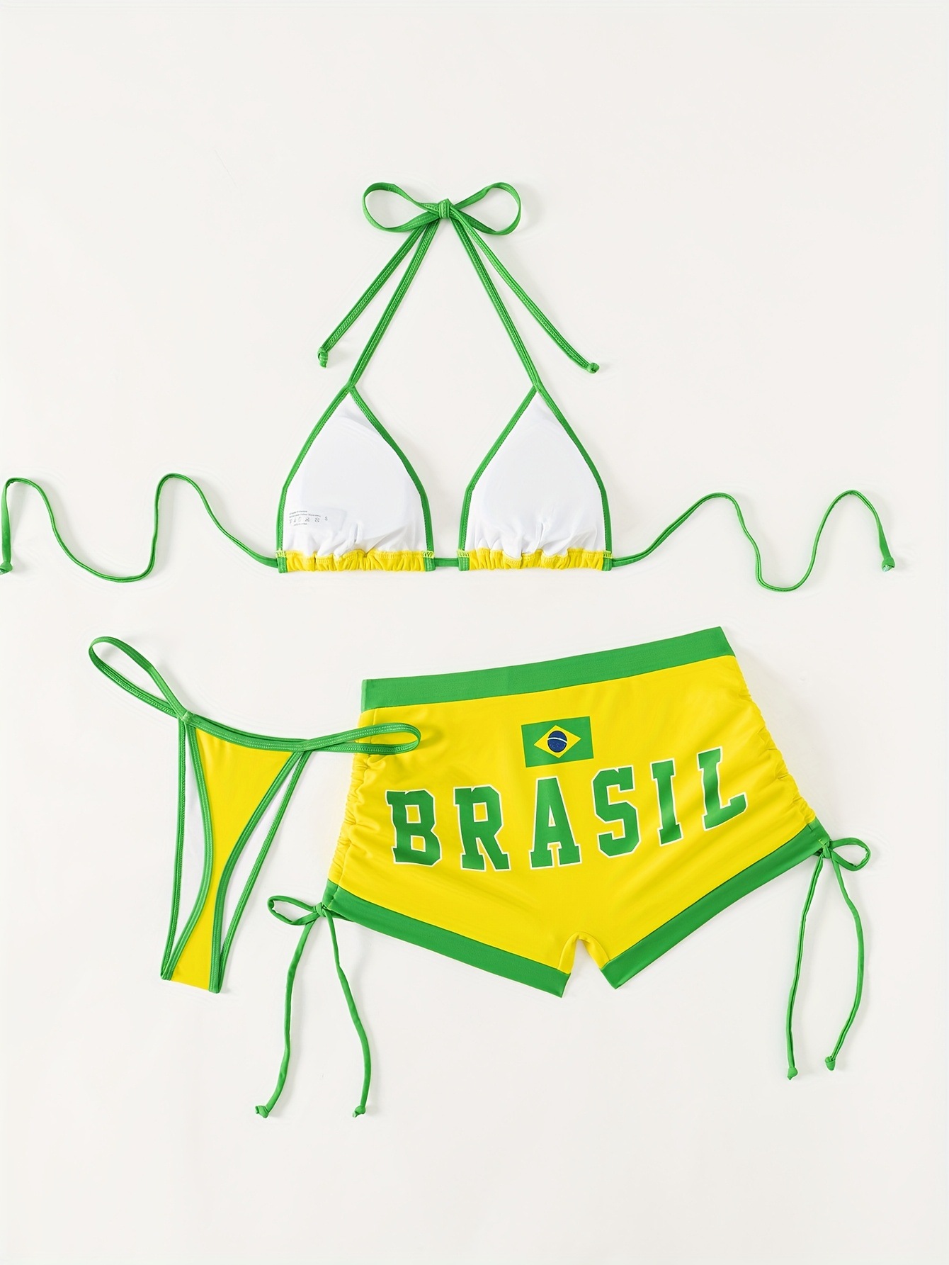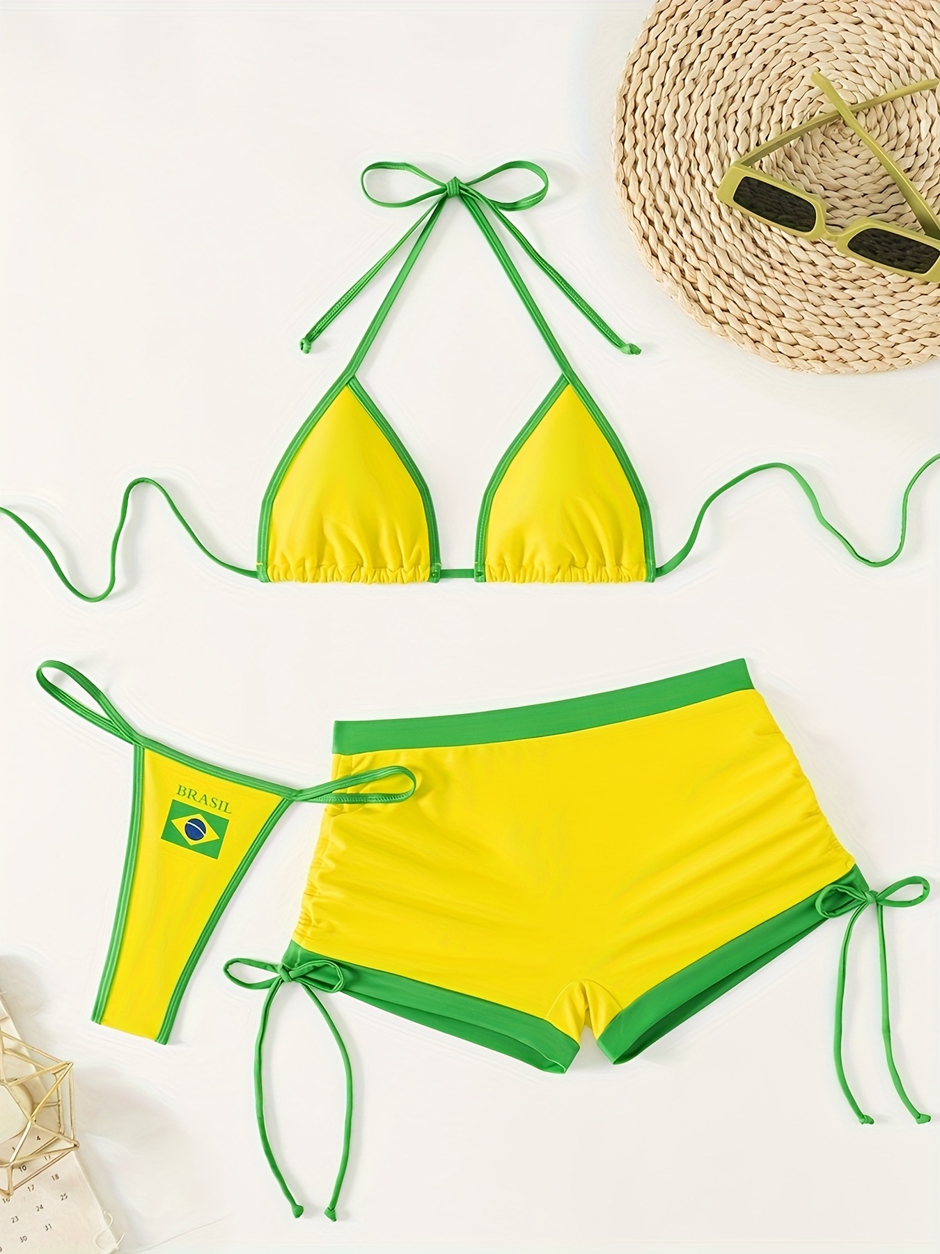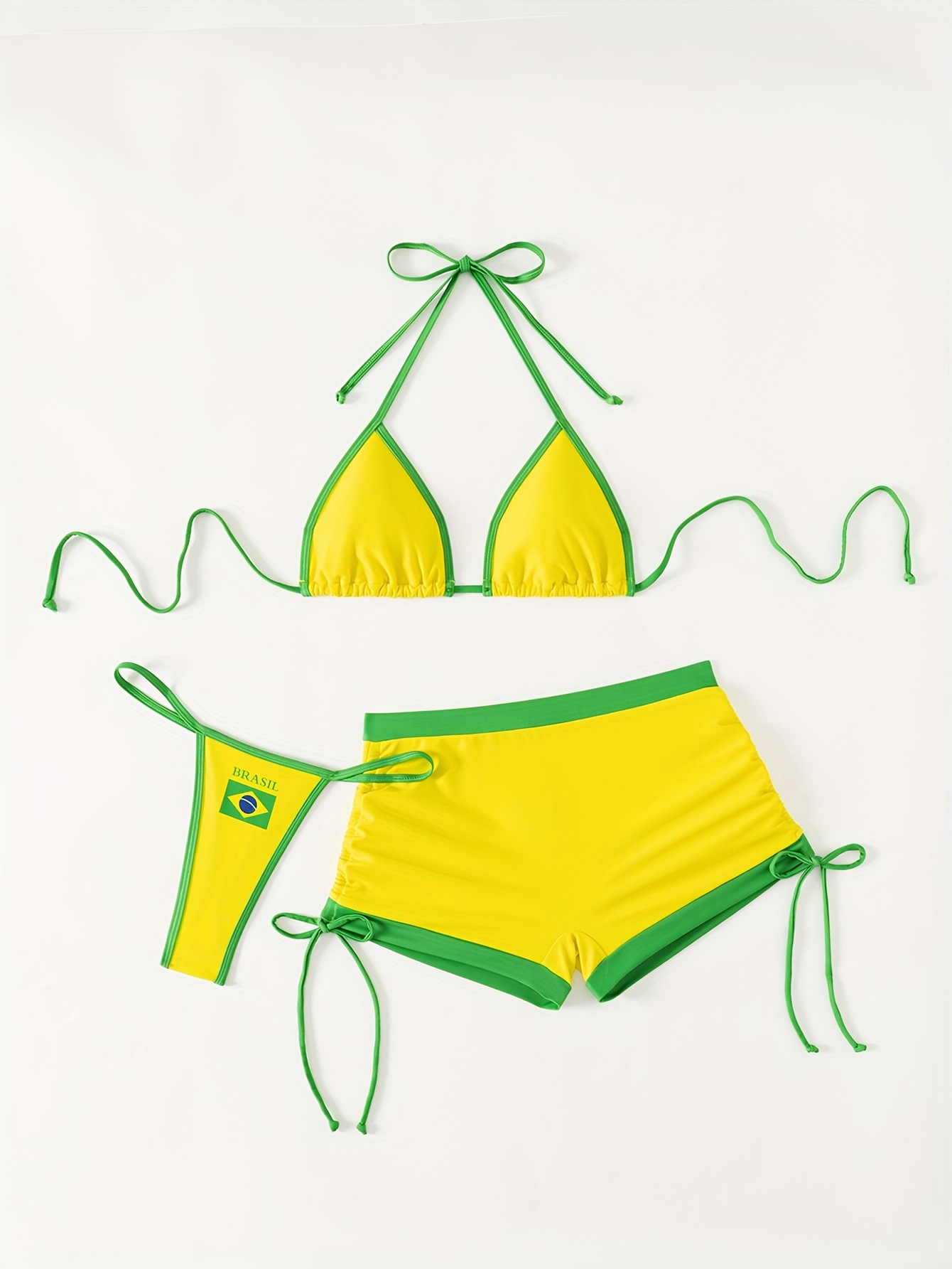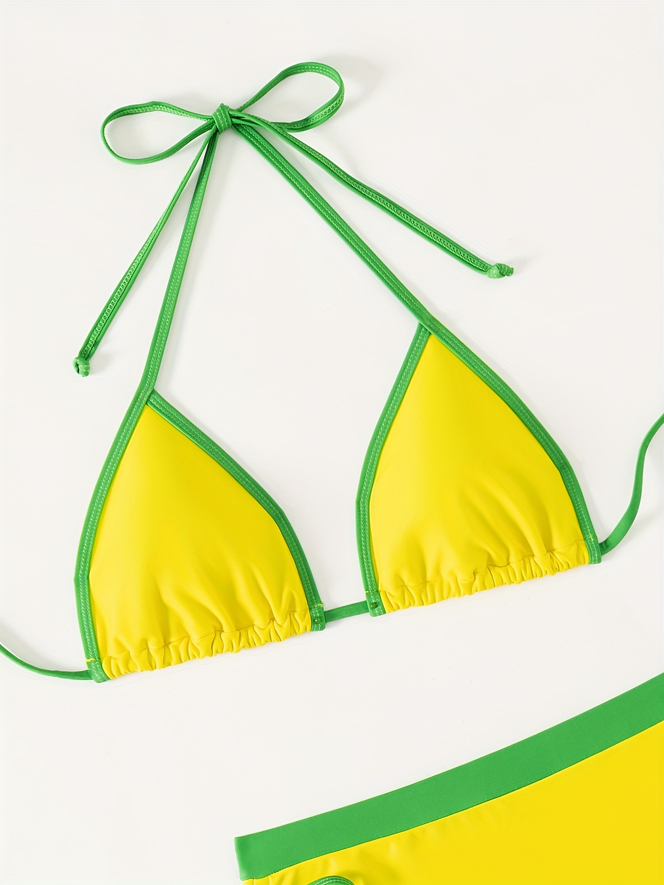 2025 새로운 비키니 크로스보더 핫 세일 3피스 대비 색상 섹시한 아마존 해변 도파민 수영복스토어 가기