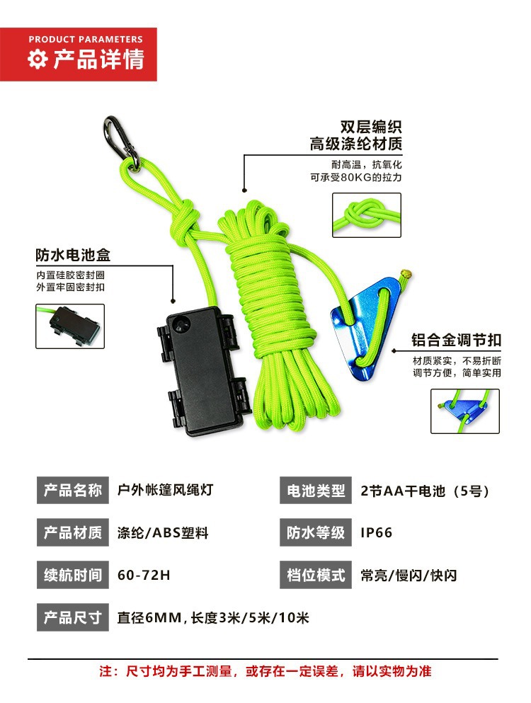 야외 캠핑 빛나는 바람 로프 램프 3 미터 5 미터 10 미터 텐트 경고 밤 빛 캐노피 방풍 로프 빛나는 바람 로프 램프