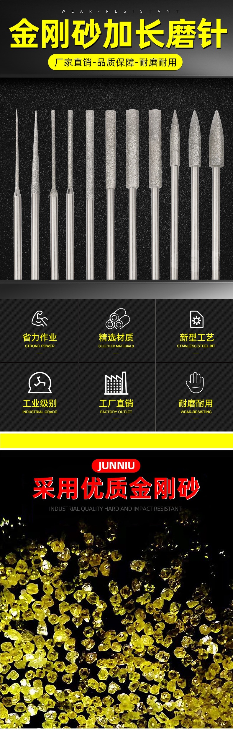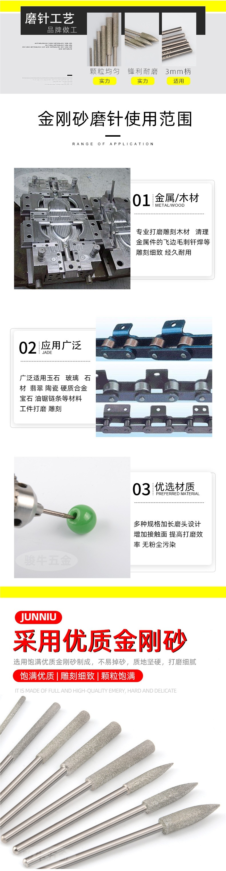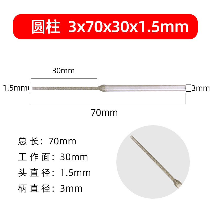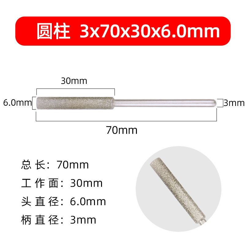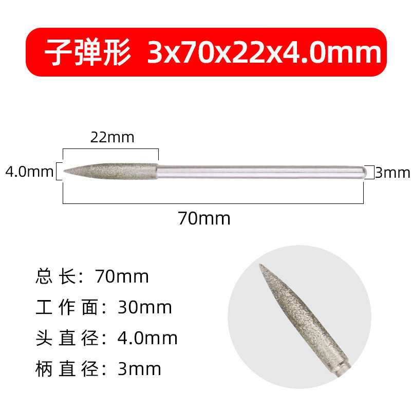 골드 스틸 연삭 휠로드 미세 모래 3mm 핸들 다이아몬드 연삭 헤드 팁/원통형 옥 그라인딩 조각 구멍 리밍