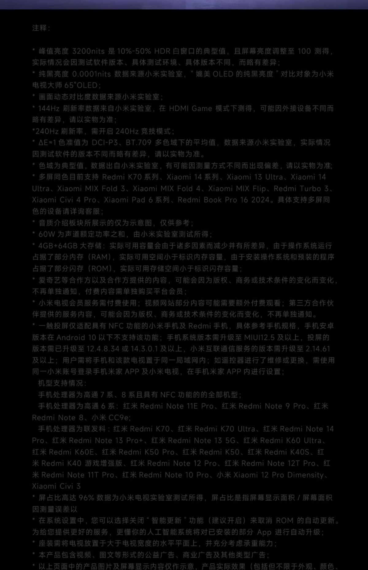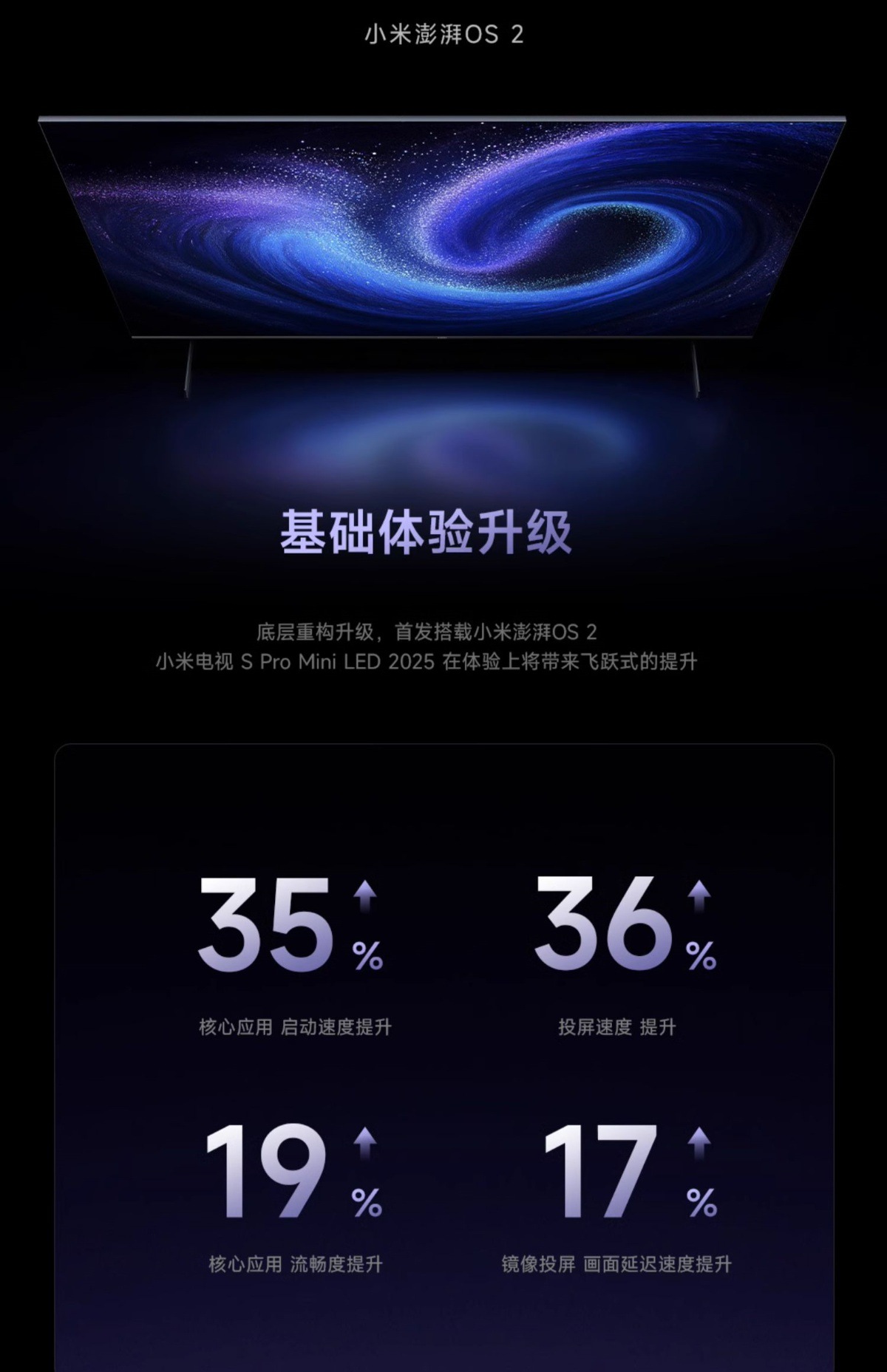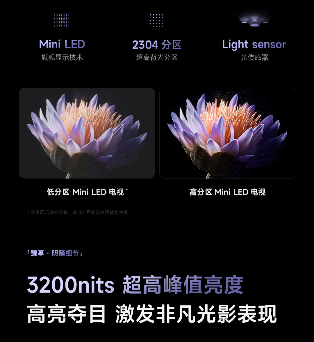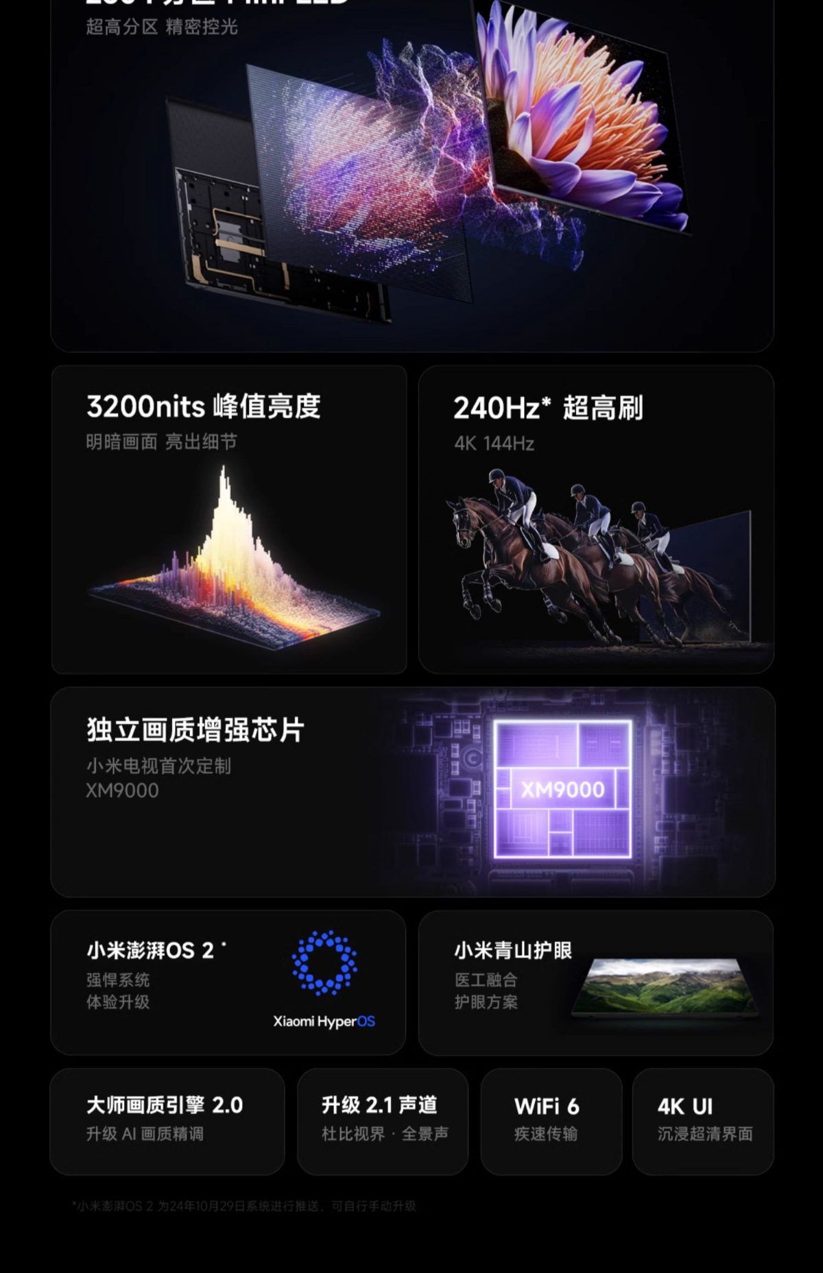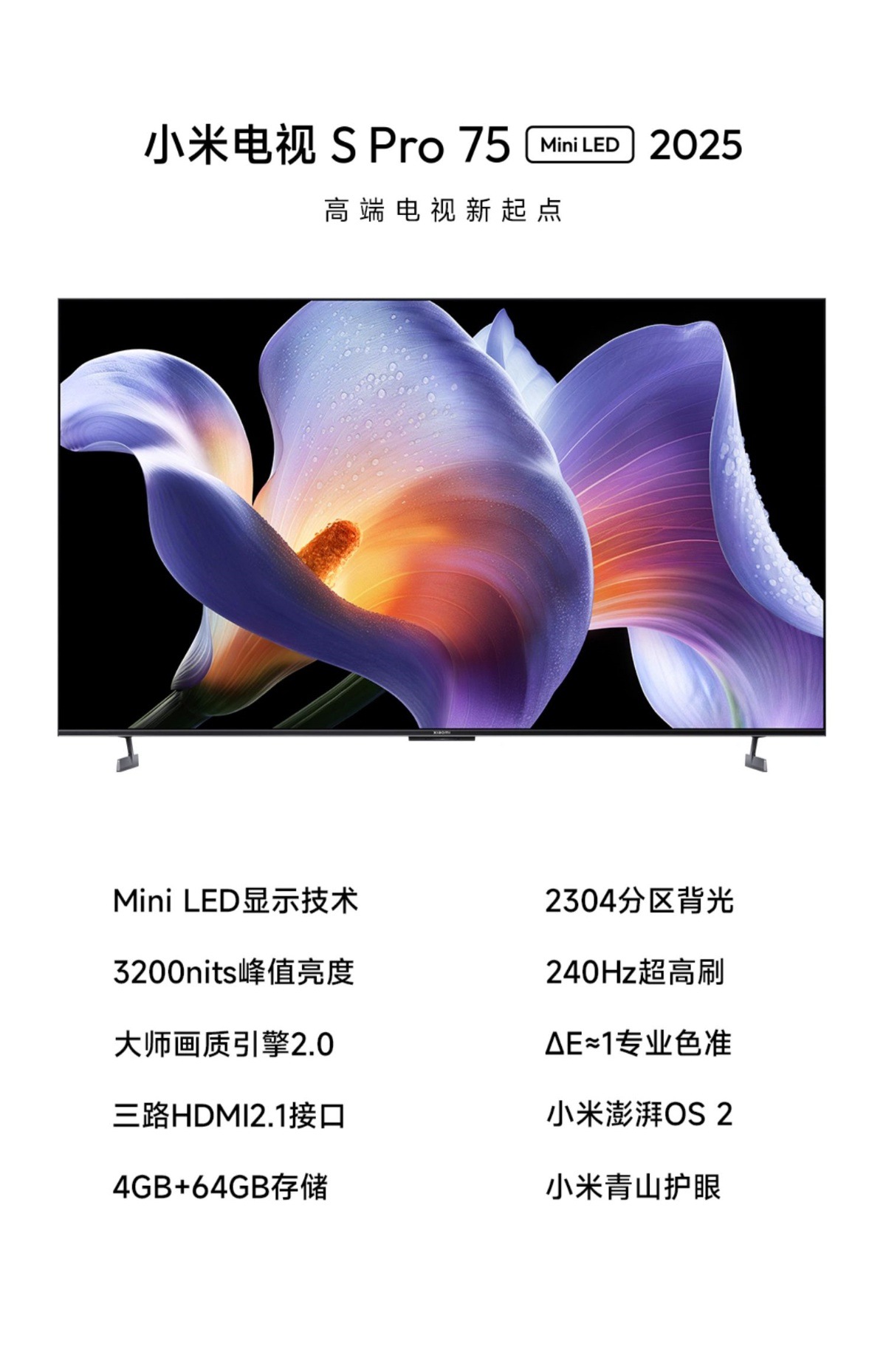 TV S Pro MiniLED 75인치 2304존역역구역화 평면 TV 2025년형