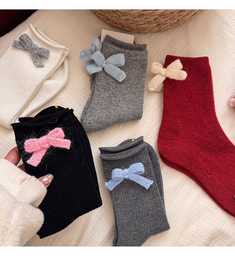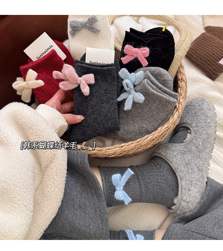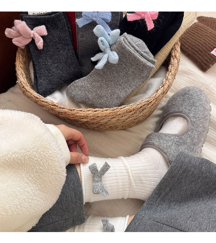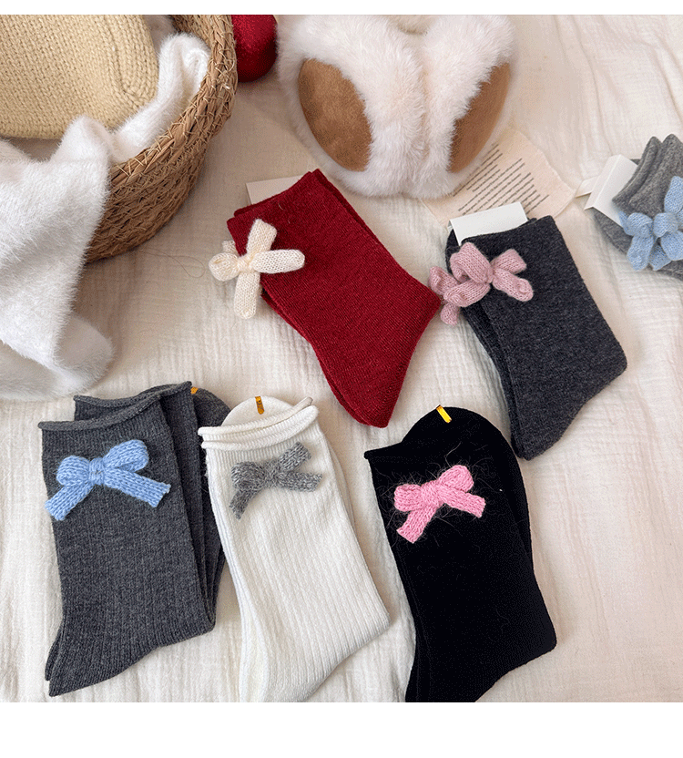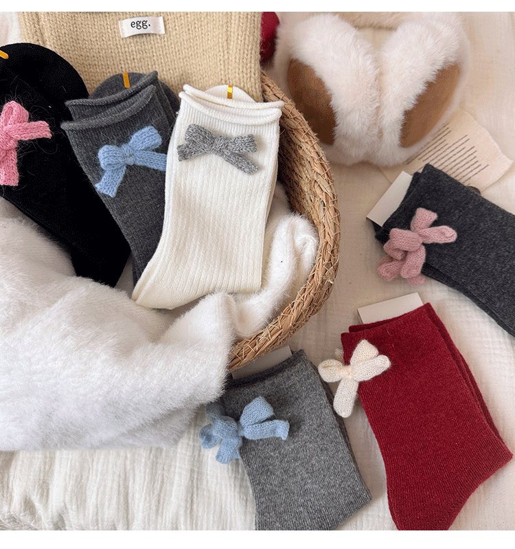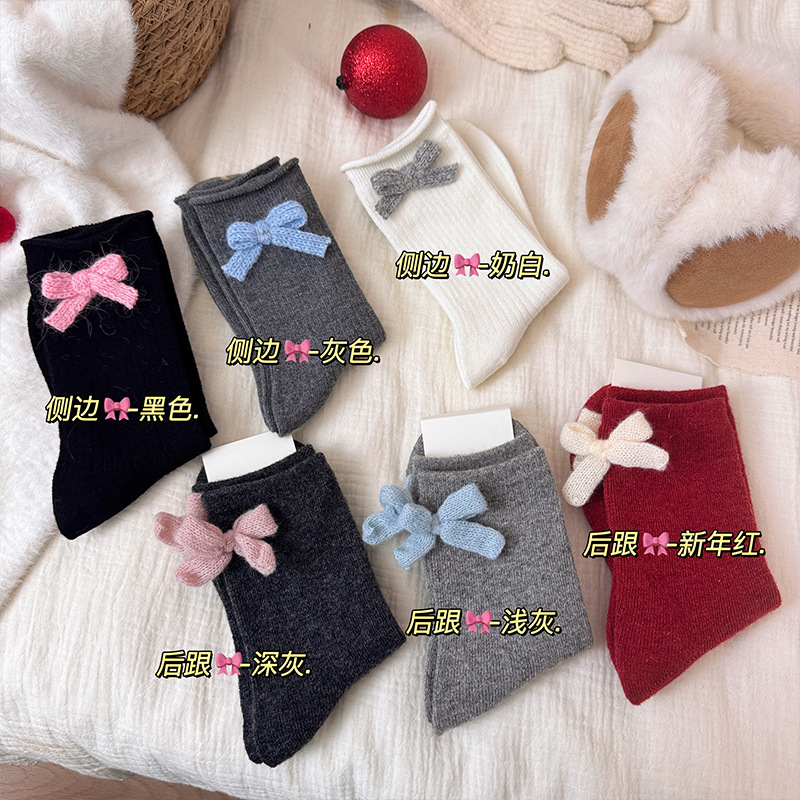 게으른 소녀 분위기 "활 양모 양말 여성 중추와 겨울 따뜻한 miu 단색 더미 양말 여성스토어 가기