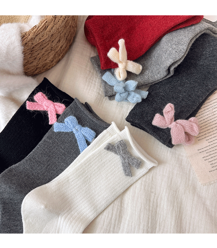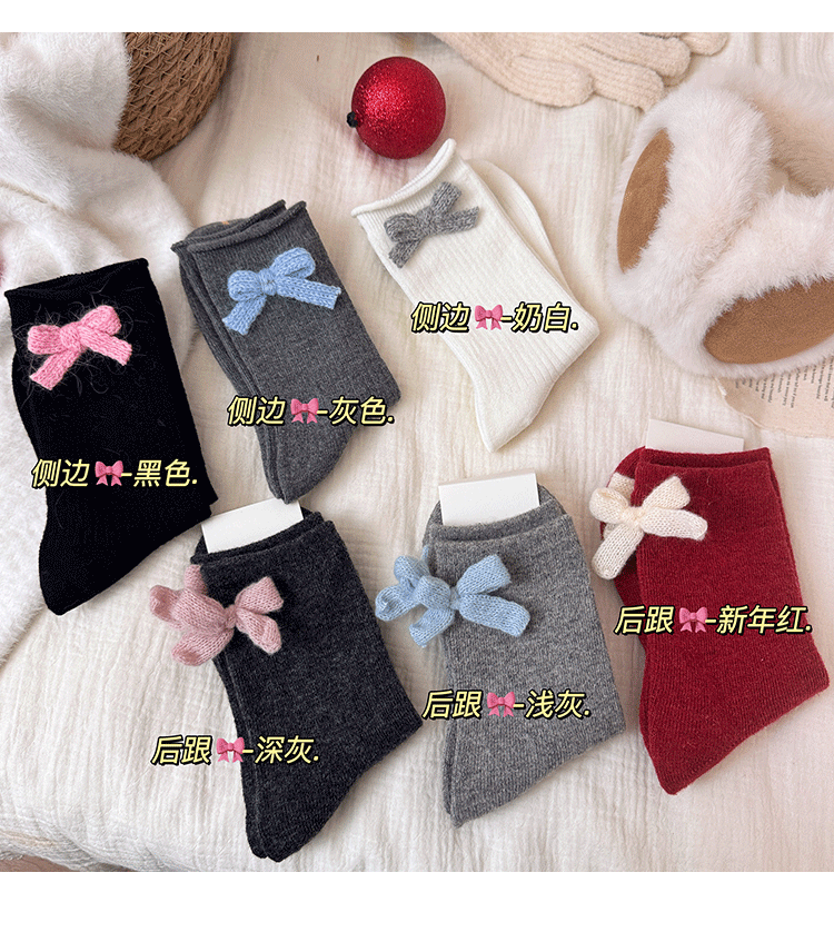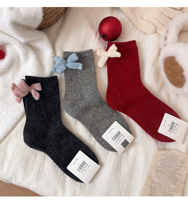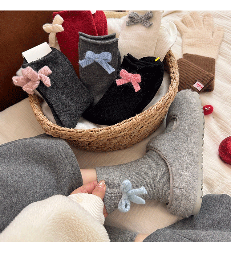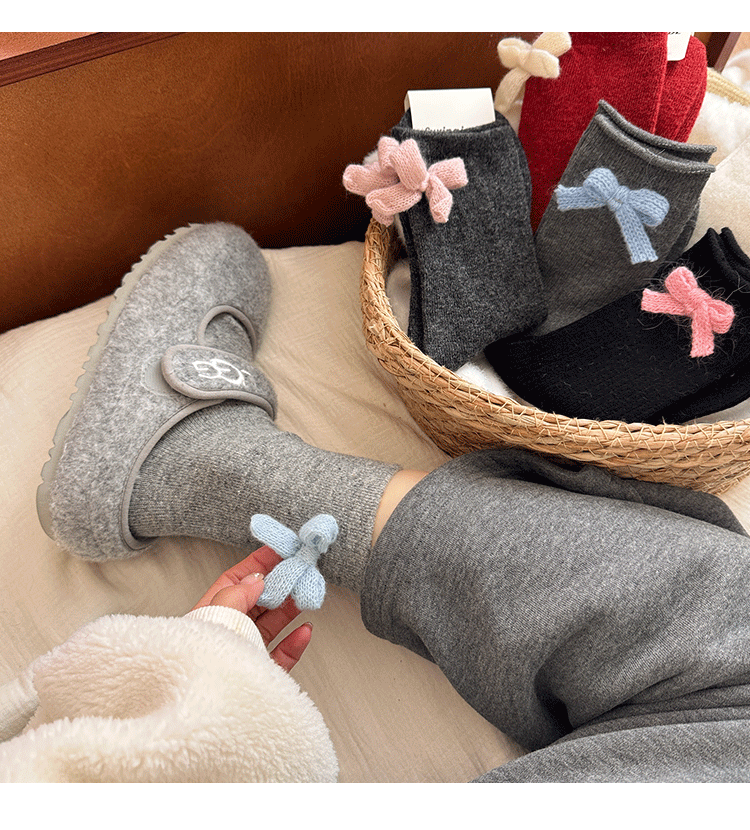 게으른 소녀 분위기 "활 양모 양말 여성 중추와 겨울 따뜻한 miu 단색 더미 양말 여성스토어 가기