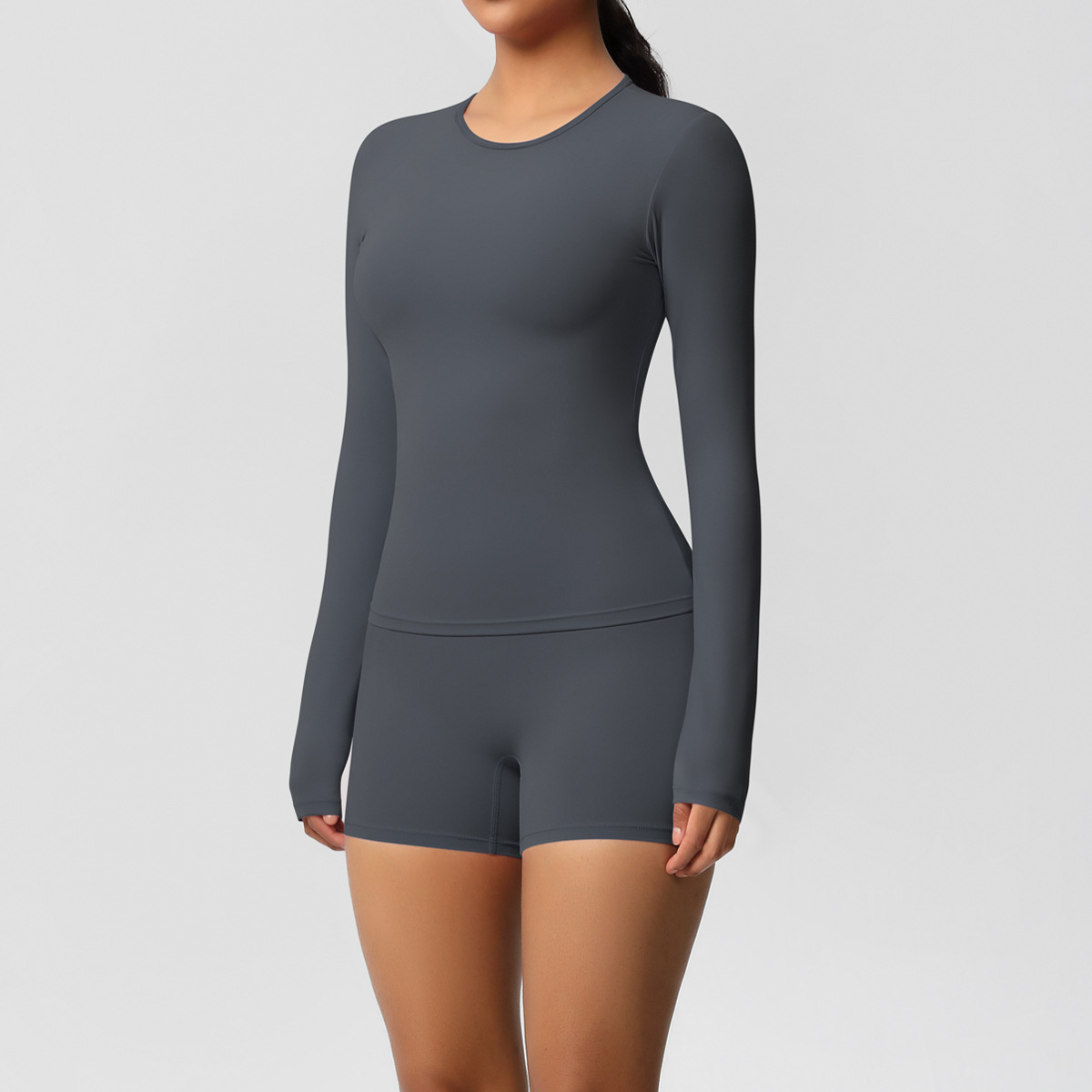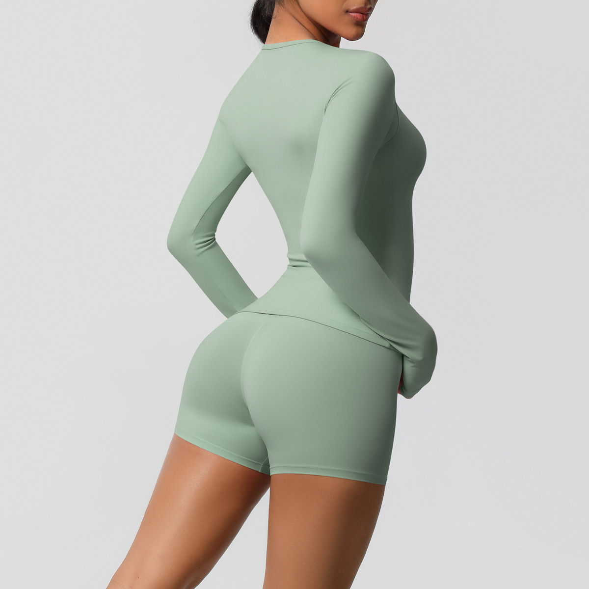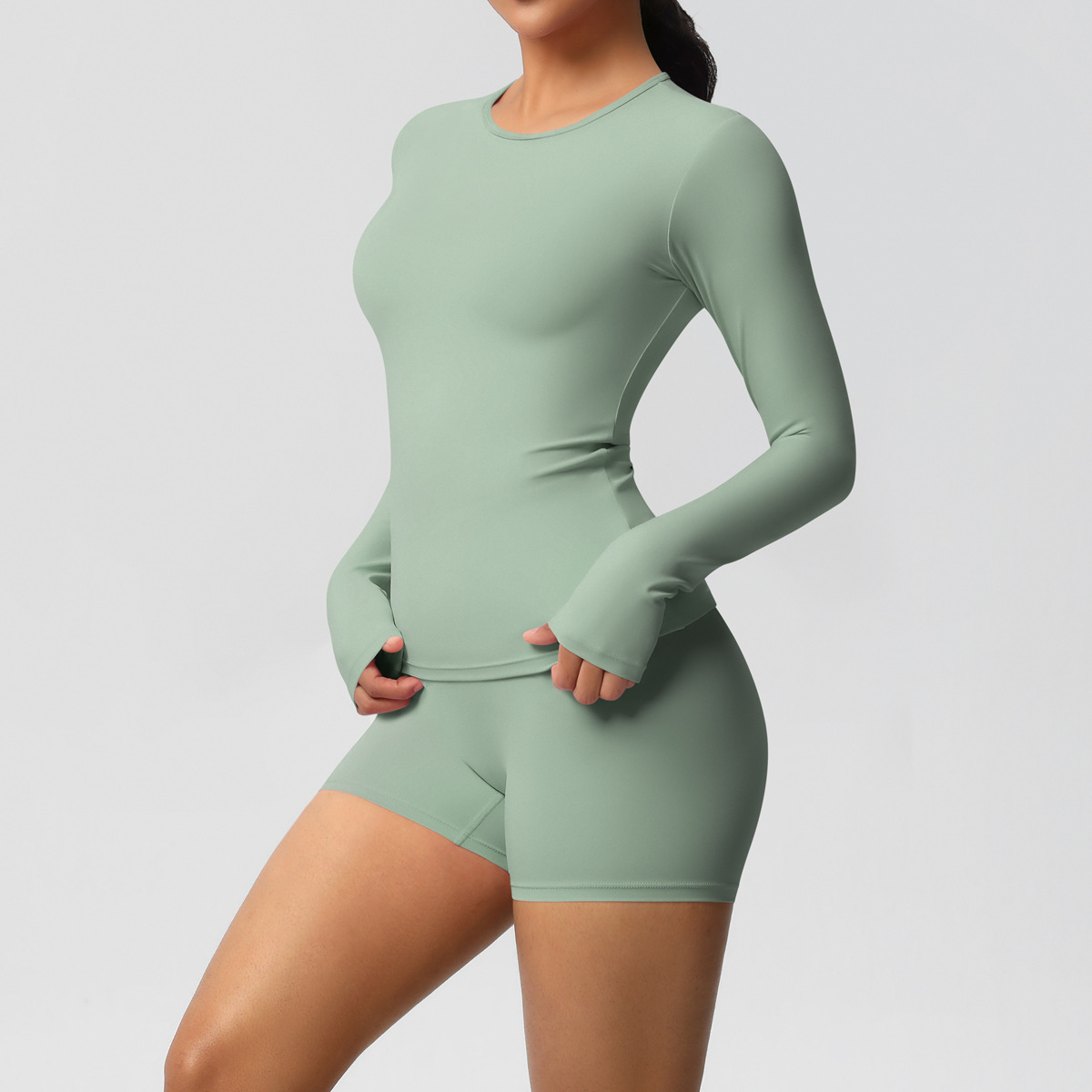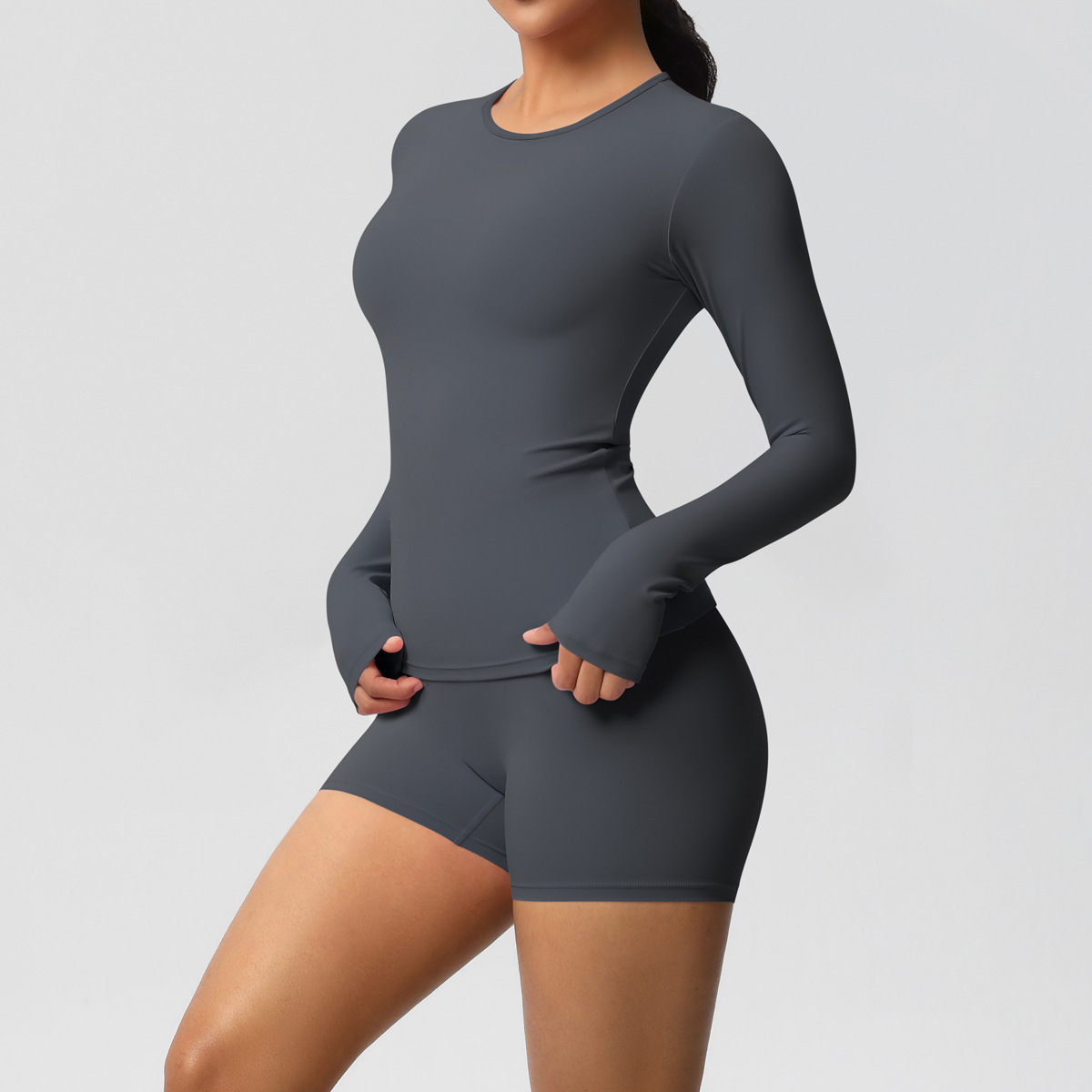 새로운 유럽과 미국의 단색 피부 친화적 인 샌딩 타이트 롱 요가 세트 세트 스포츠 달리기 피트니스 세트 투피스 세트스토어 가기