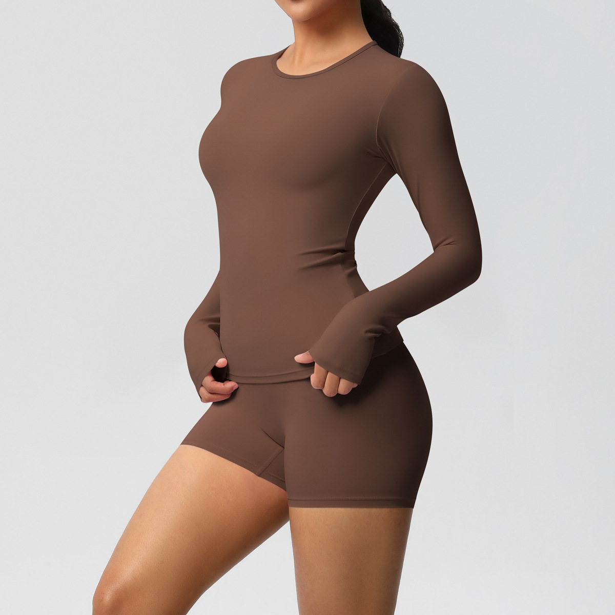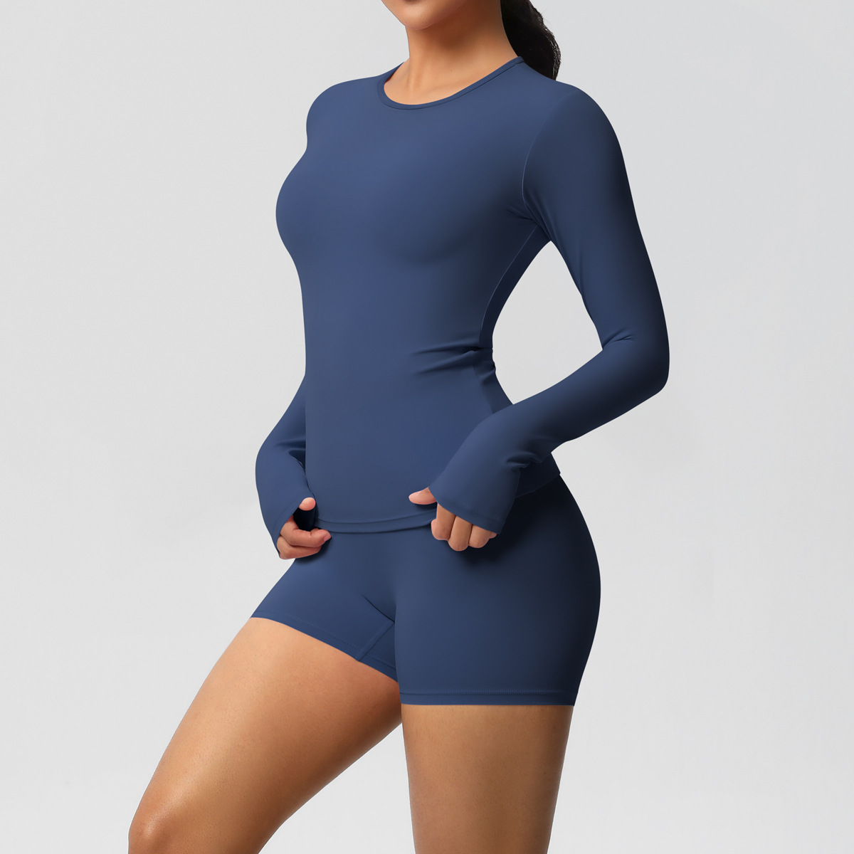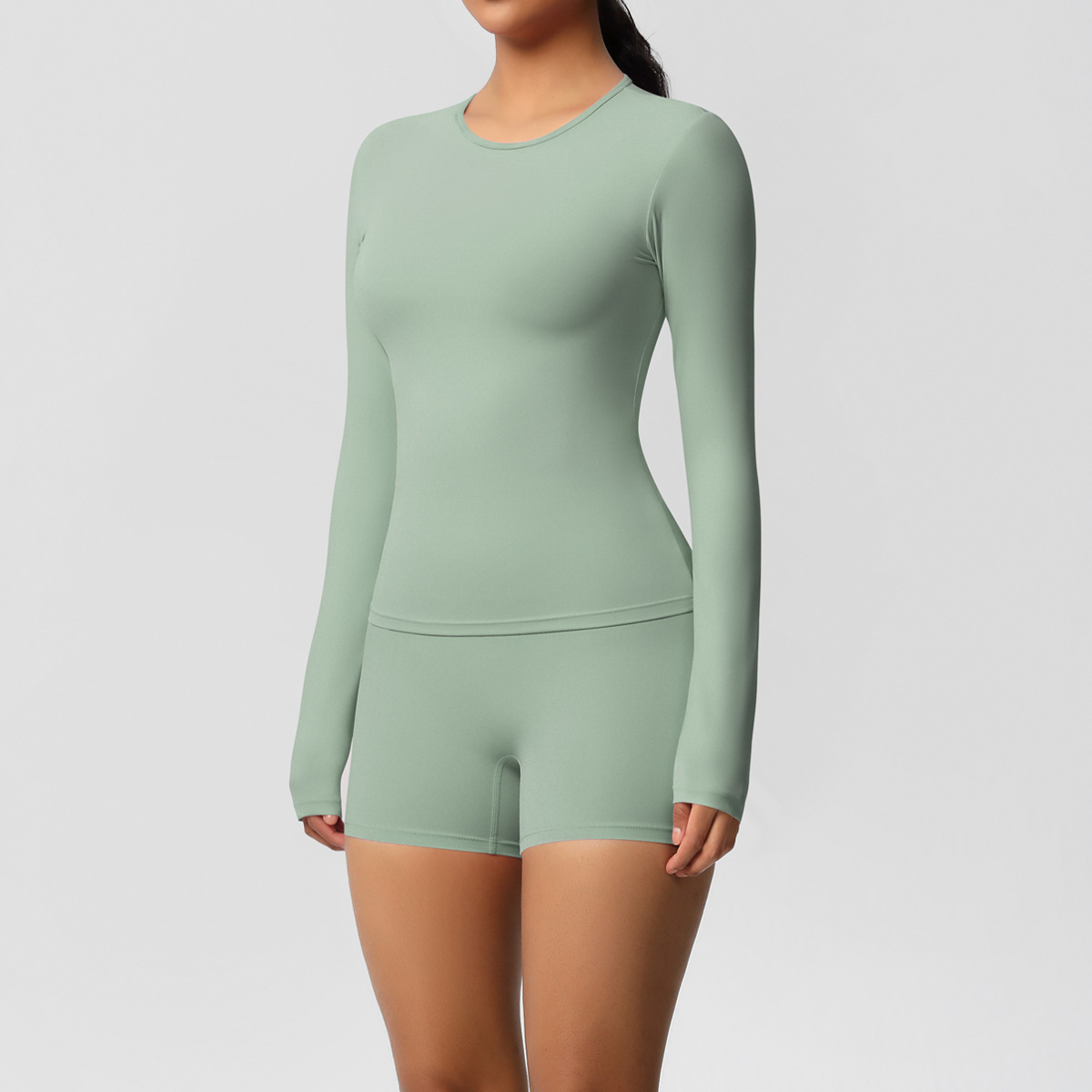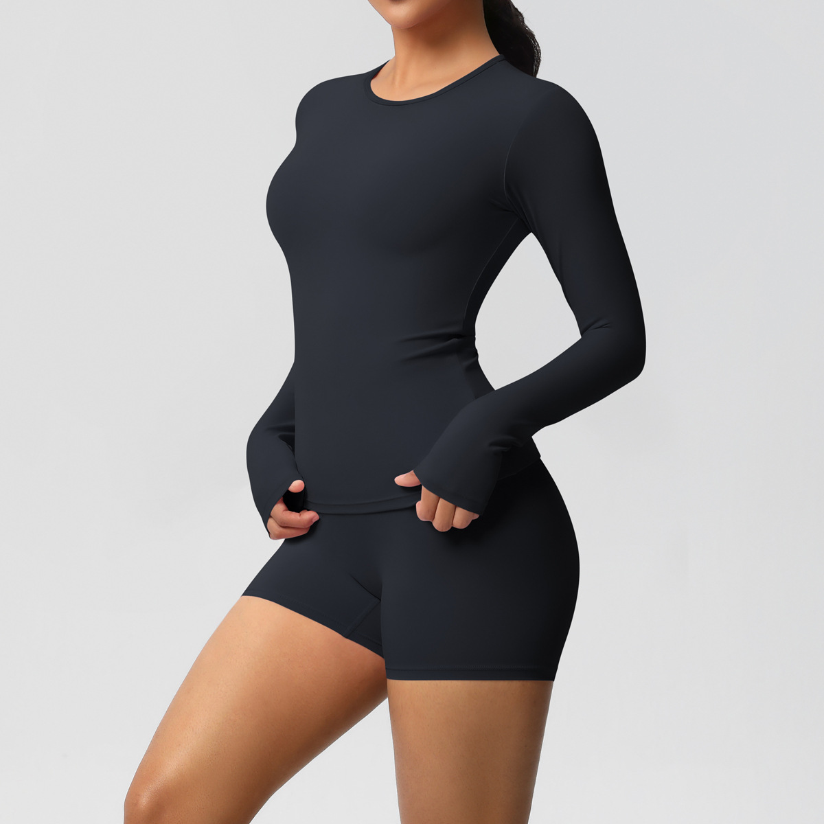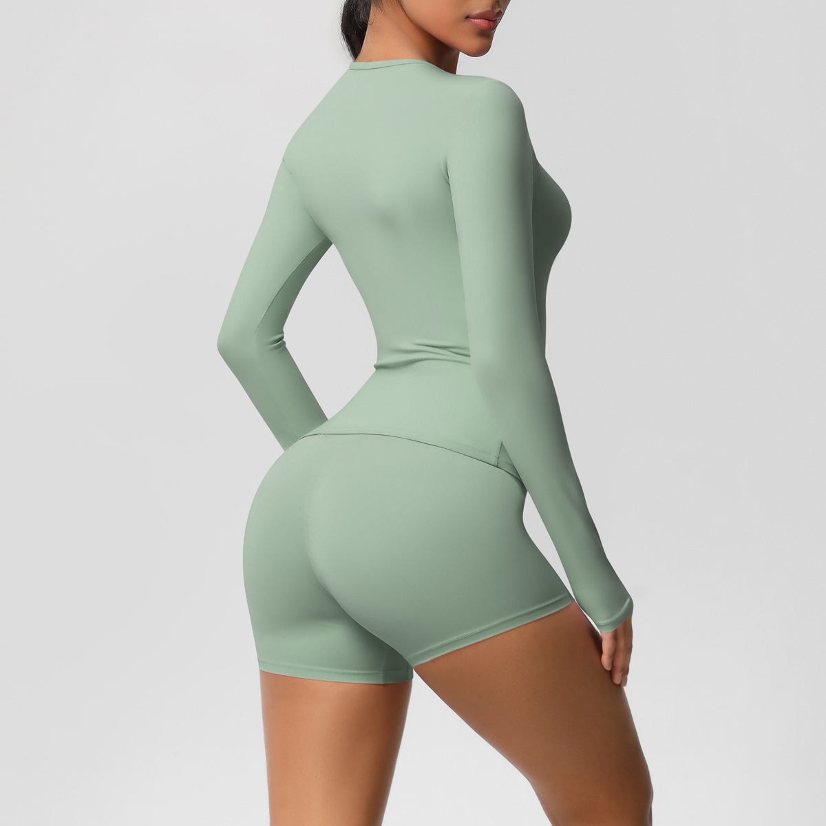 새로운 유럽과 미국의 단색 피부 친화적 인 샌딩 타이트 롱 요가 세트 세트 스포츠 달리기 피트니스 세트 투피스 세트스토어 가기