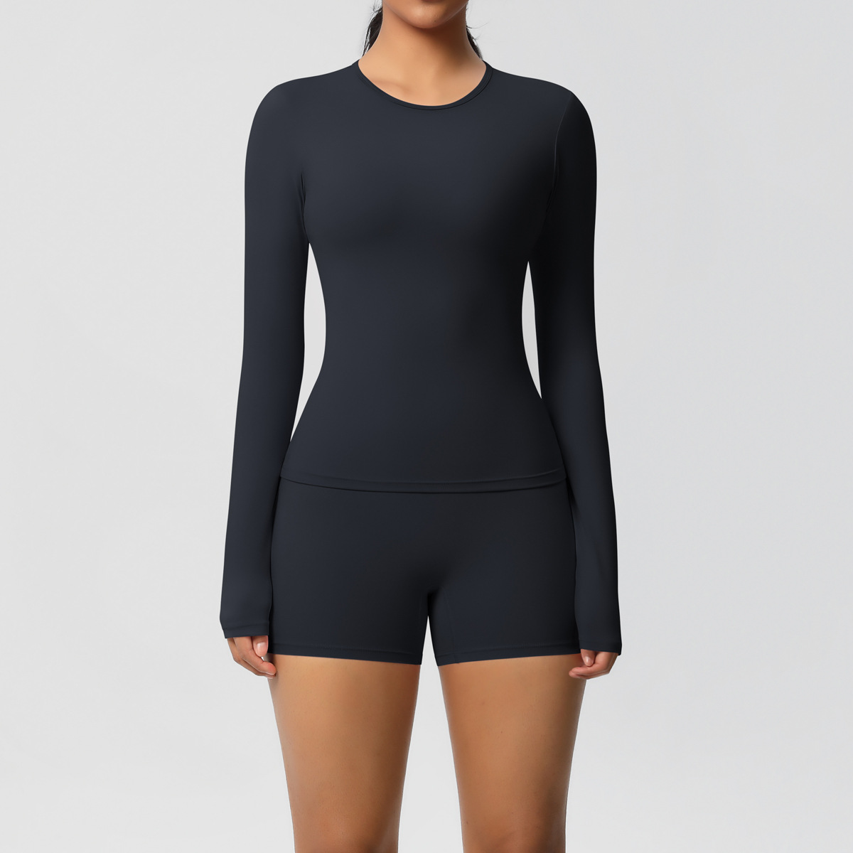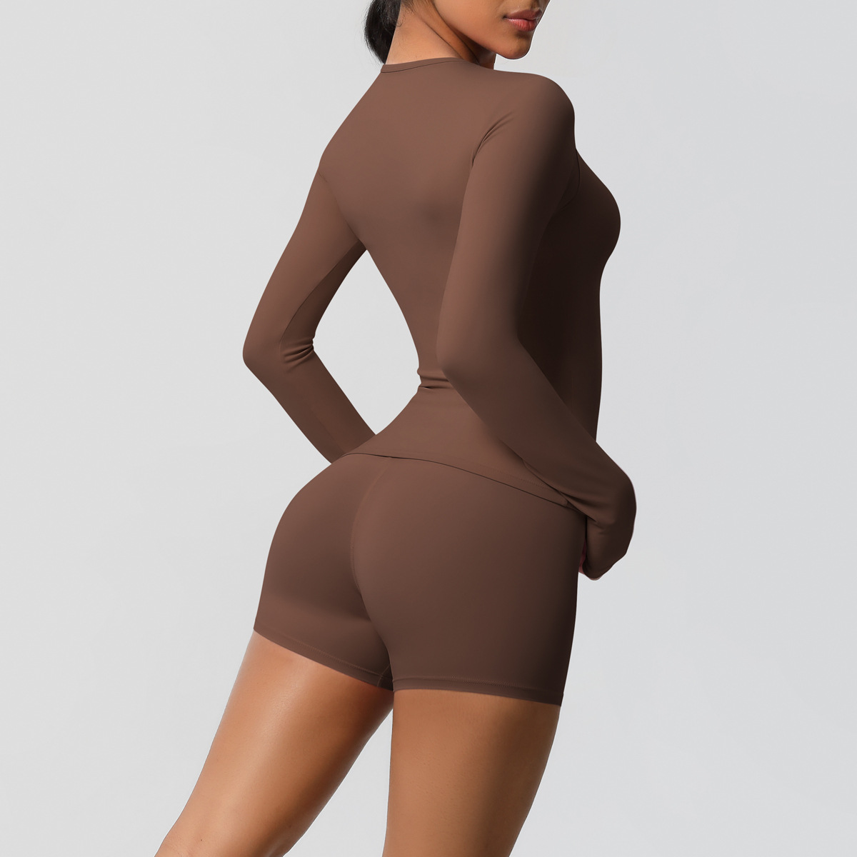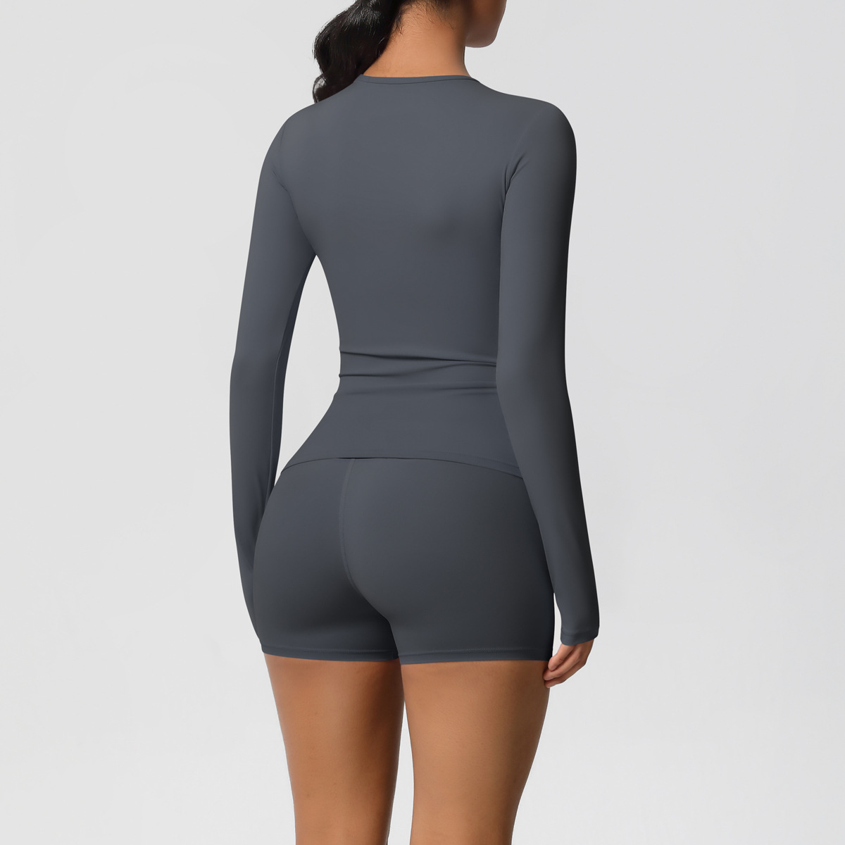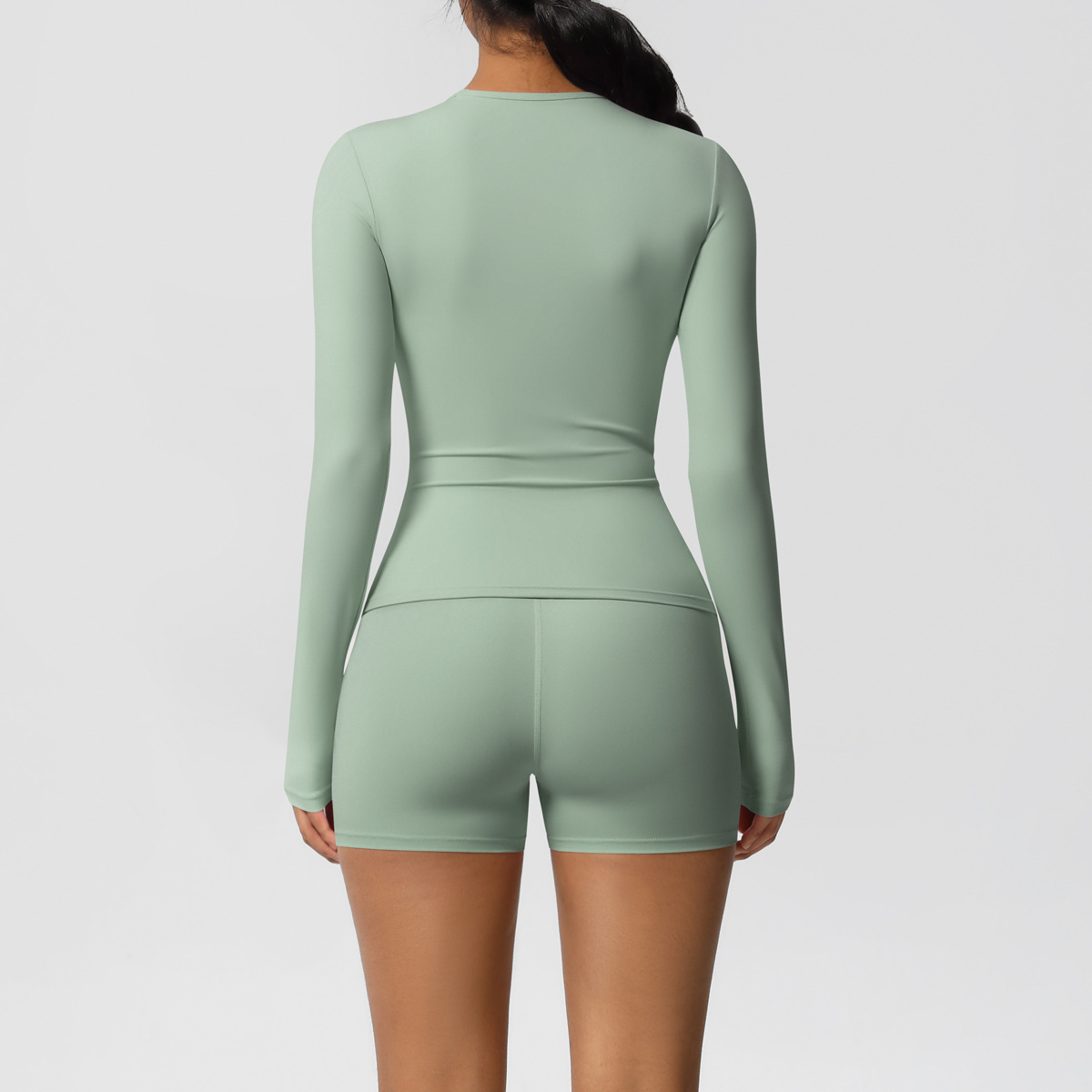 새로운 유럽과 미국의 단색 피부 친화적 인 샌딩 타이트 롱 요가 세트 세트 스포츠 달리기 피트니스 세트 투피스 세트스토어 가기