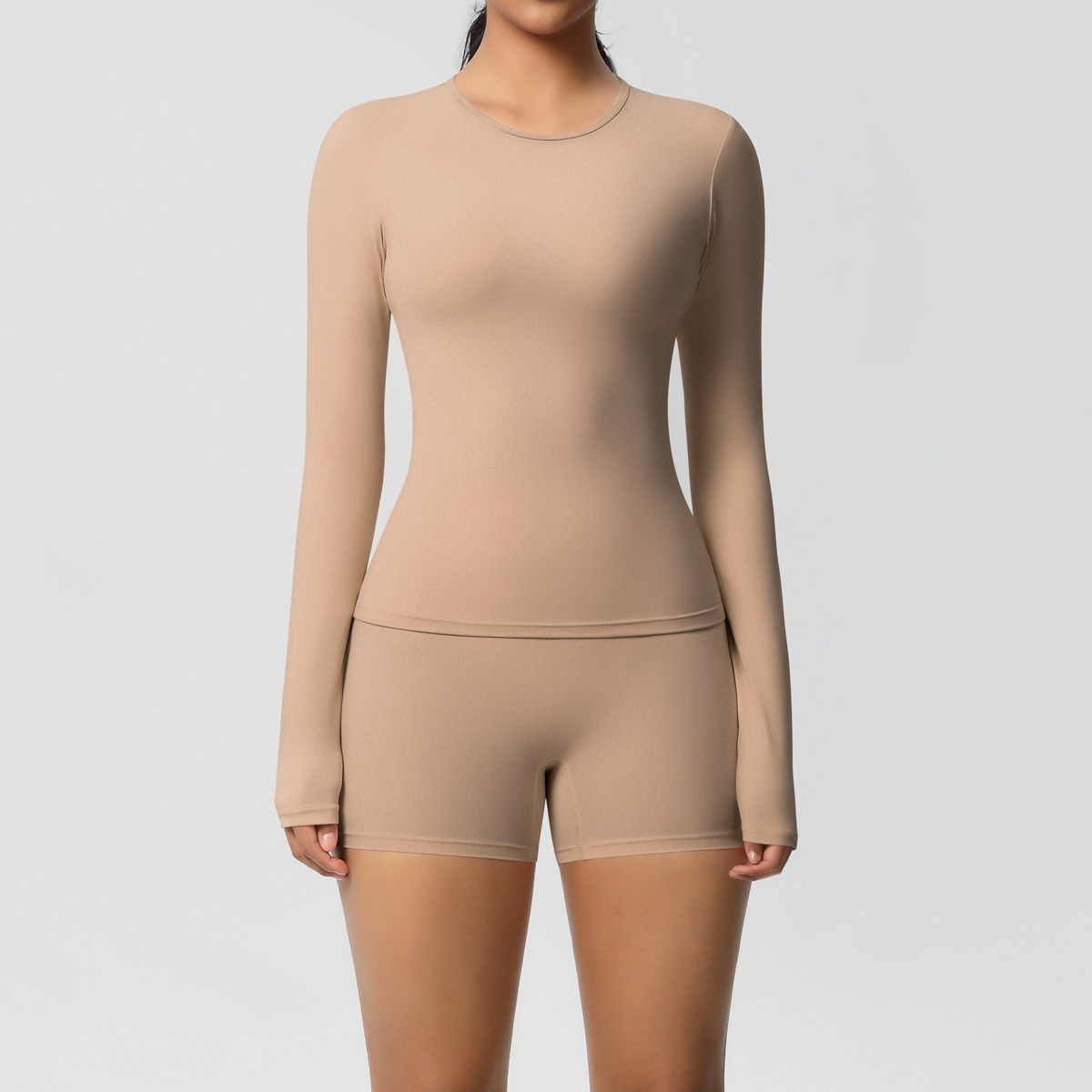 새로운 유럽과 미국의 단색 피부 친화적 인 샌딩 타이트 롱 요가 세트 세트 스포츠 달리기 피트니스 세트 투피스 세트