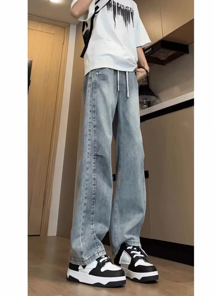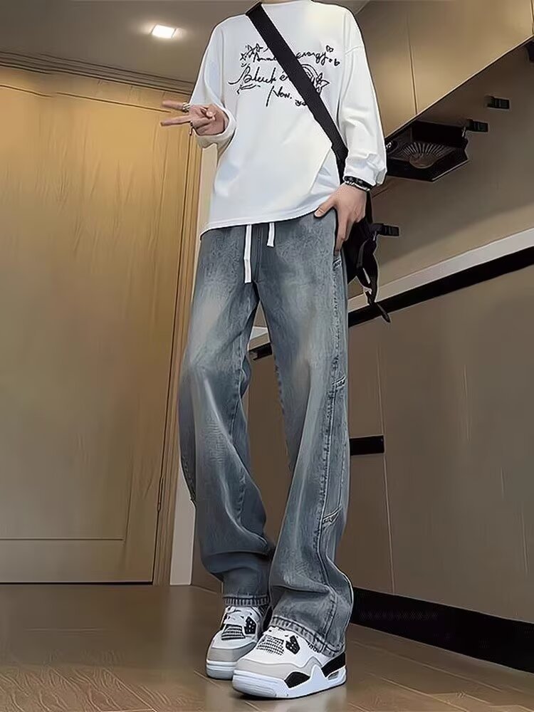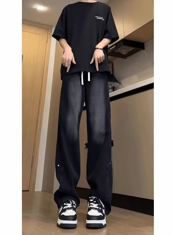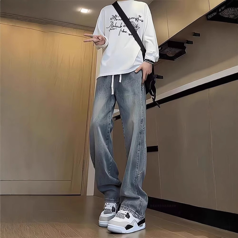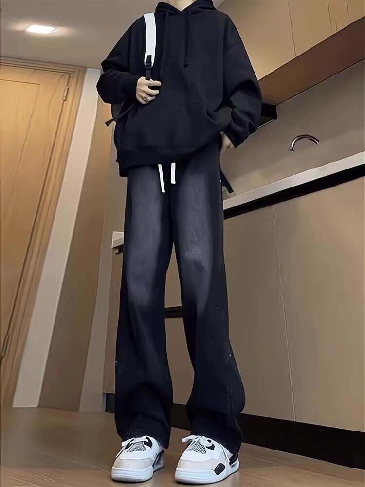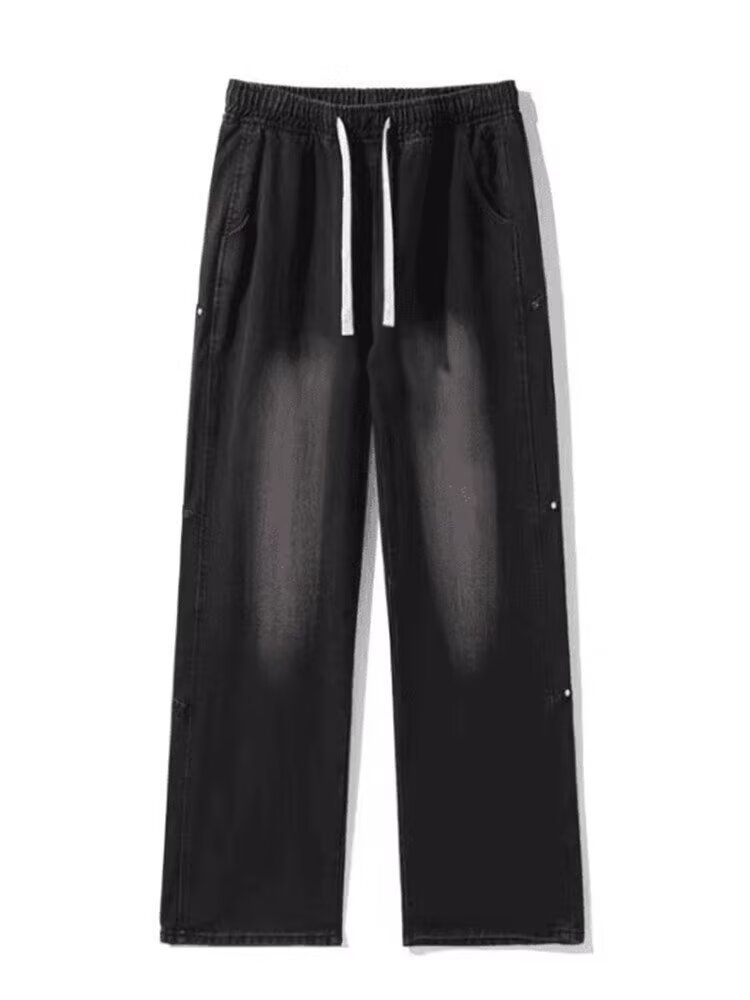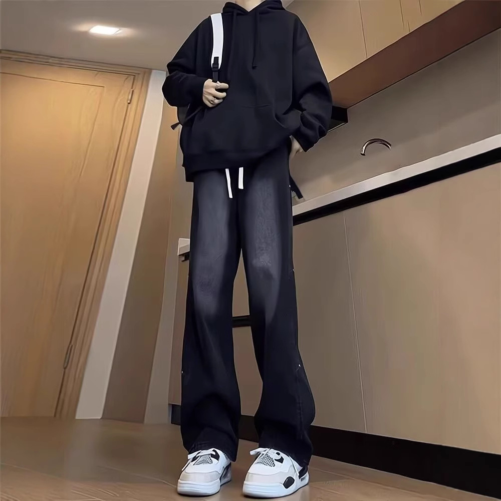 십대 정사이즈 블랙 그라디언트 청바지 남성과 여성 가을 미국 스타일 복고풍 세척 바지 테더 스트레이트 마이크로 탄성스토어 가기