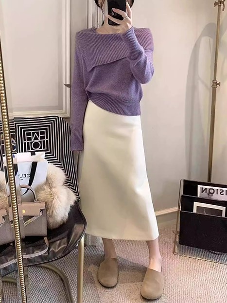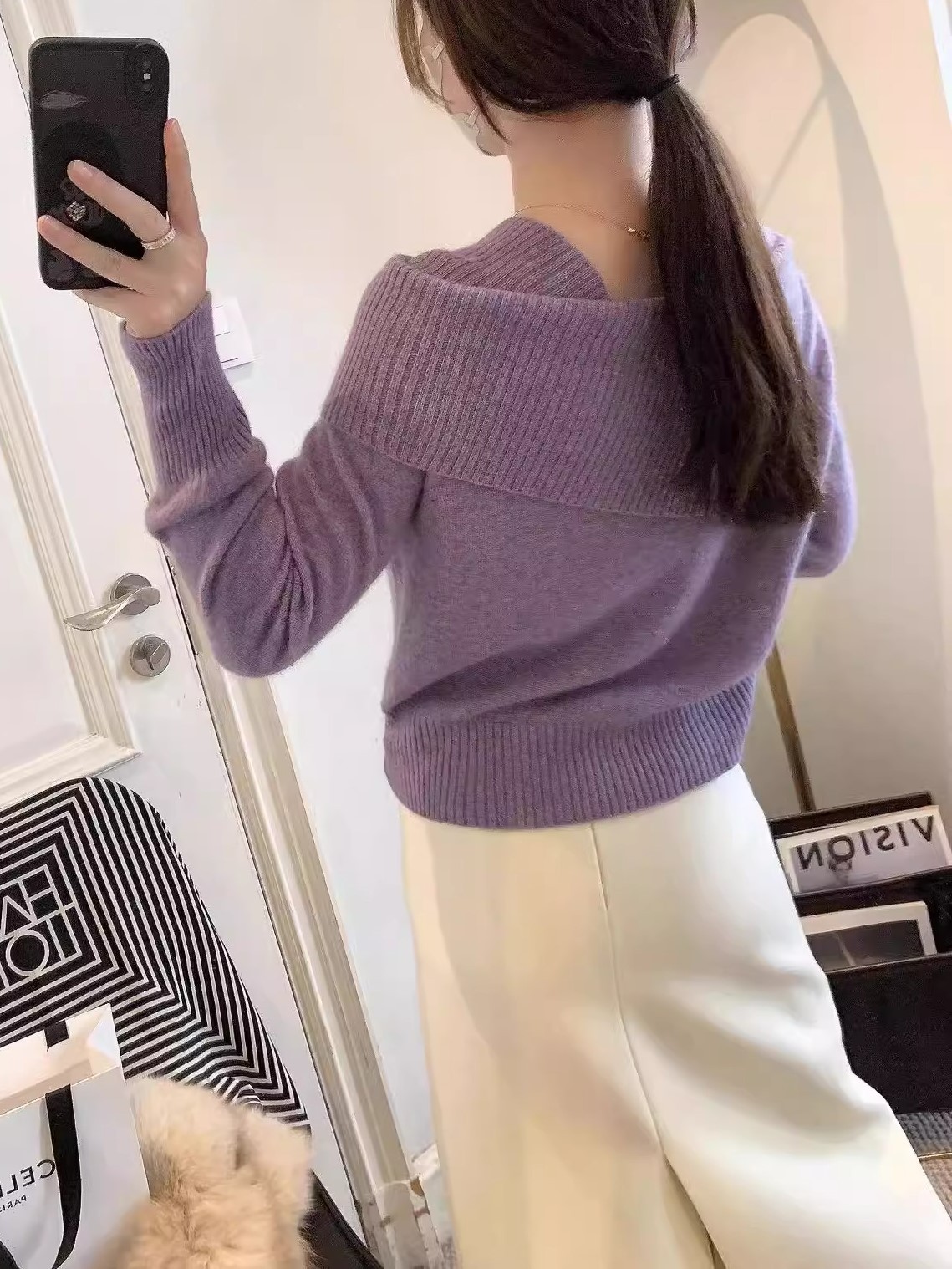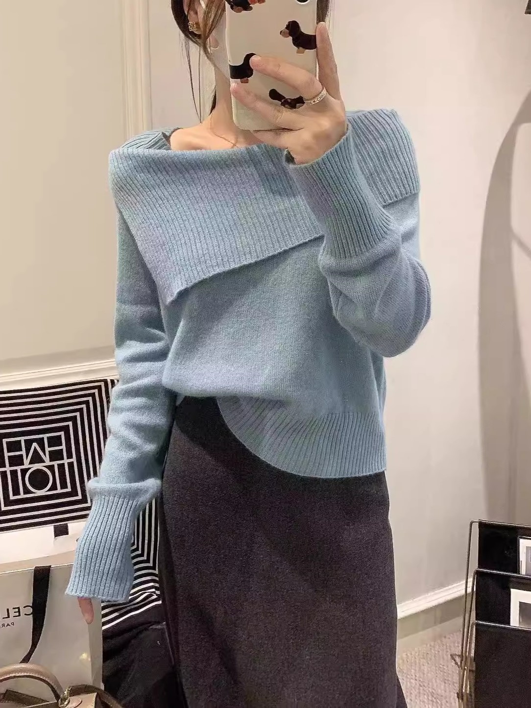 프랑스 니트웨어 여성 2025 가을 겨울 새로운 여성 한국 스타일 유행 어깨 옷깃베이스 셔츠스토어 가기