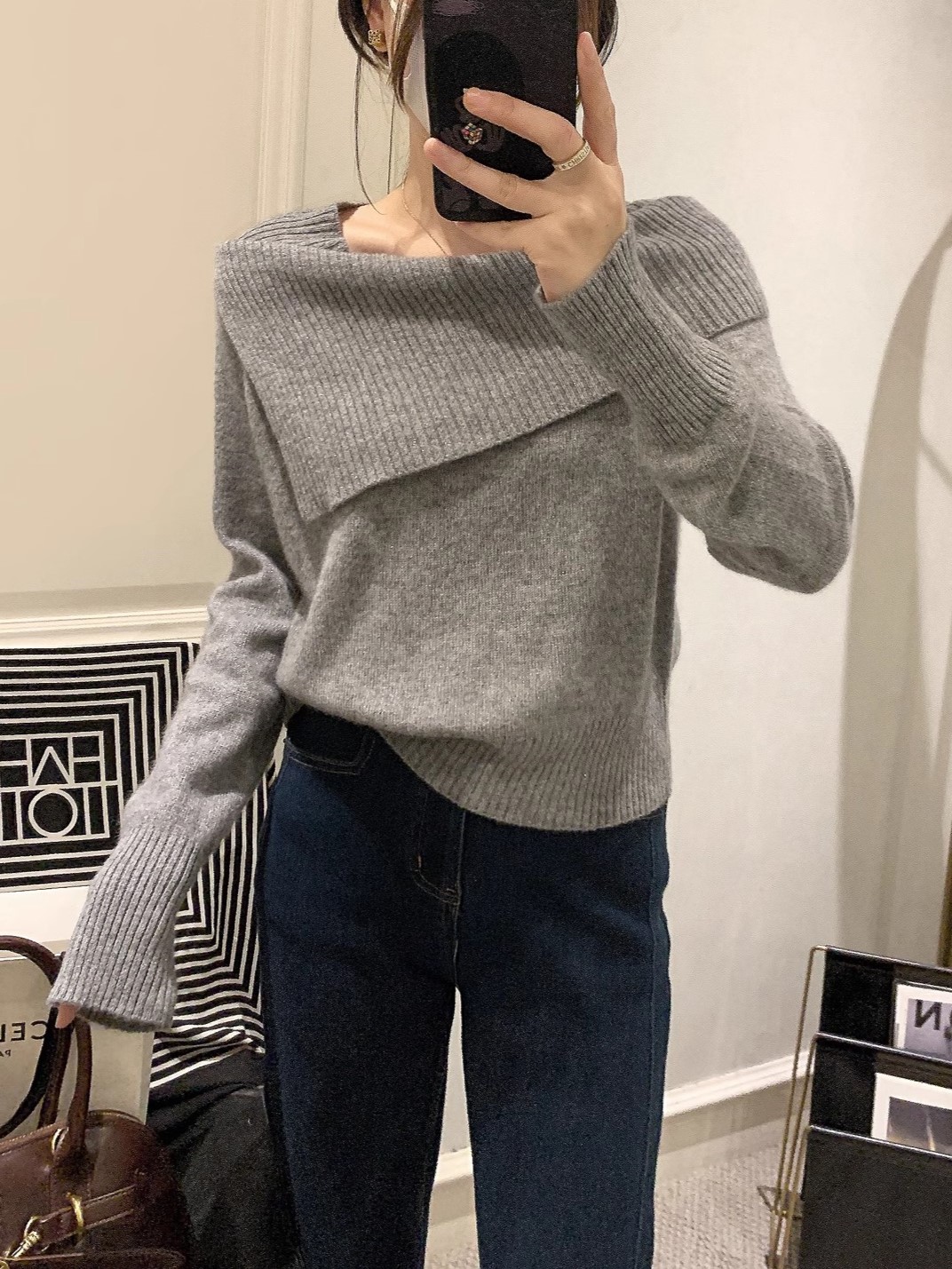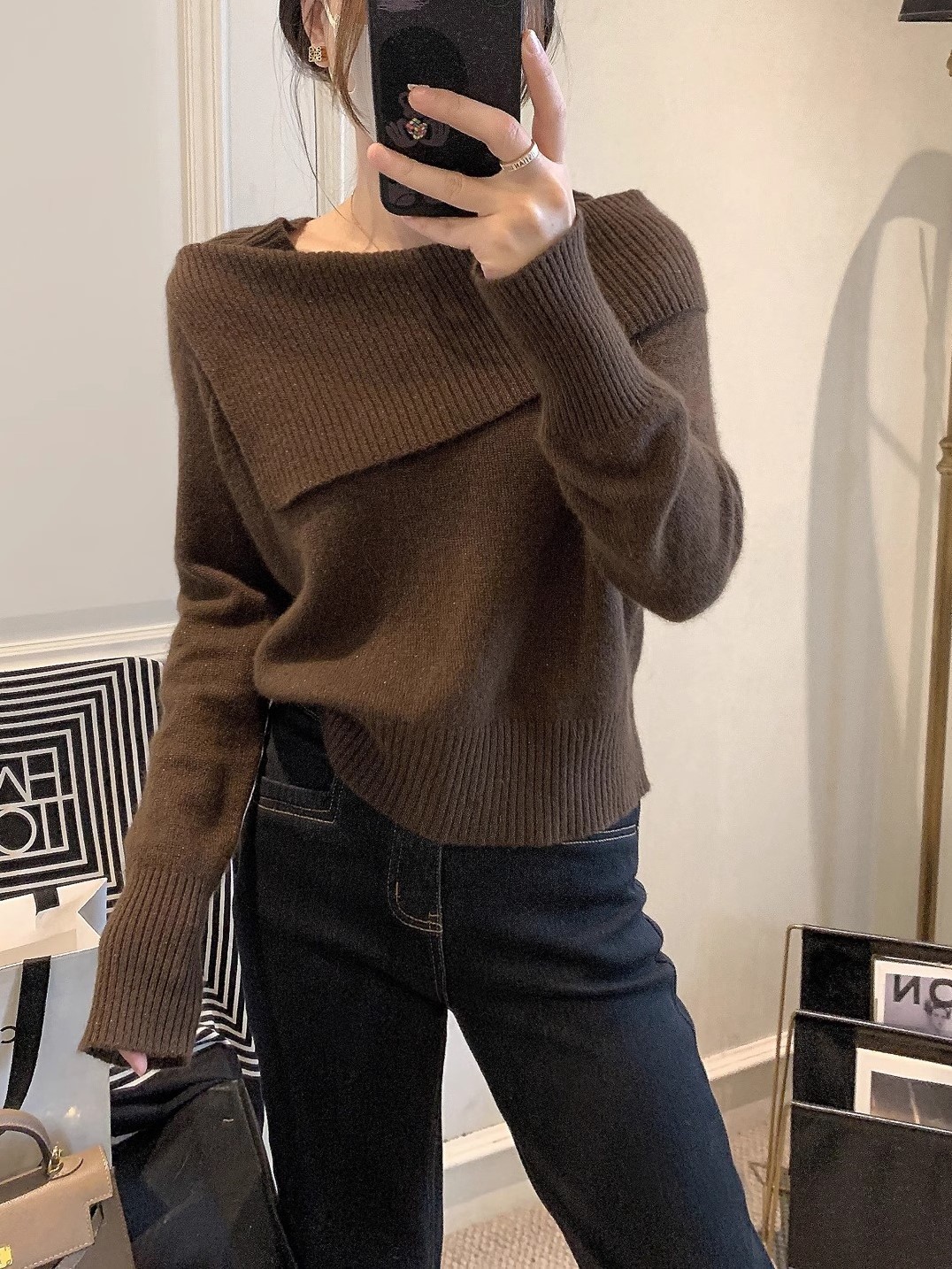 프랑스 니트웨어 여성 2025 가을 겨울 새로운 여성 한국 스타일 유행 어깨 옷깃베이스 셔츠