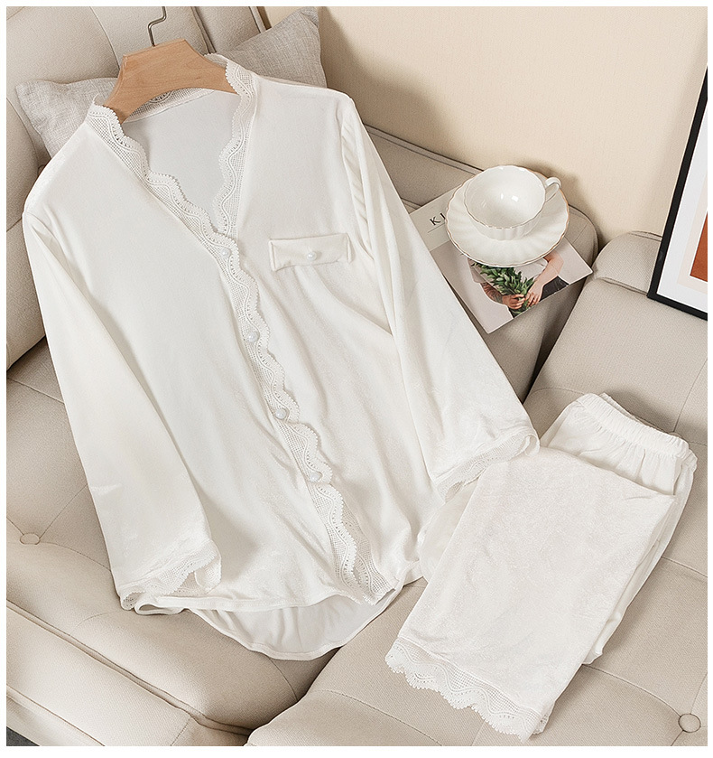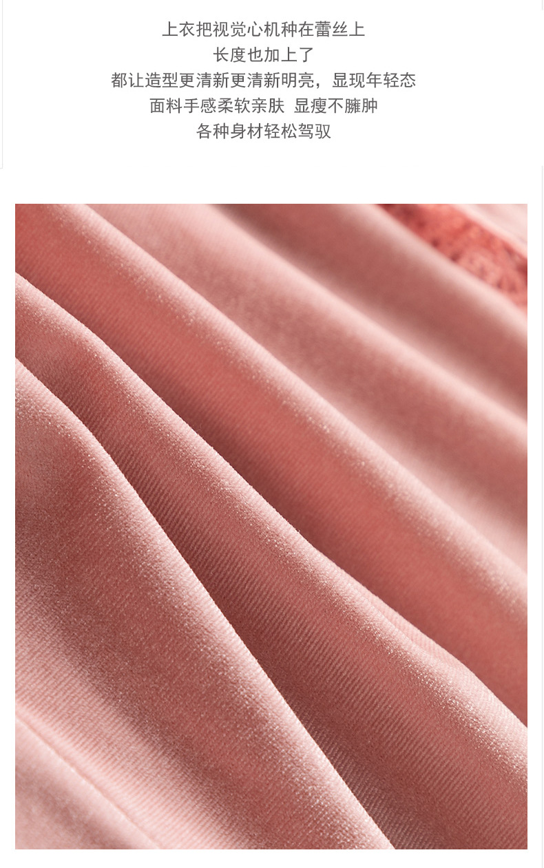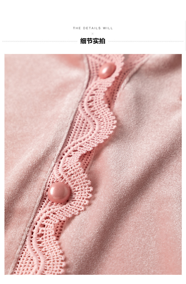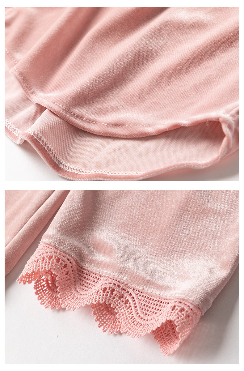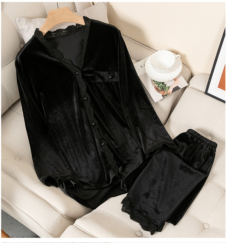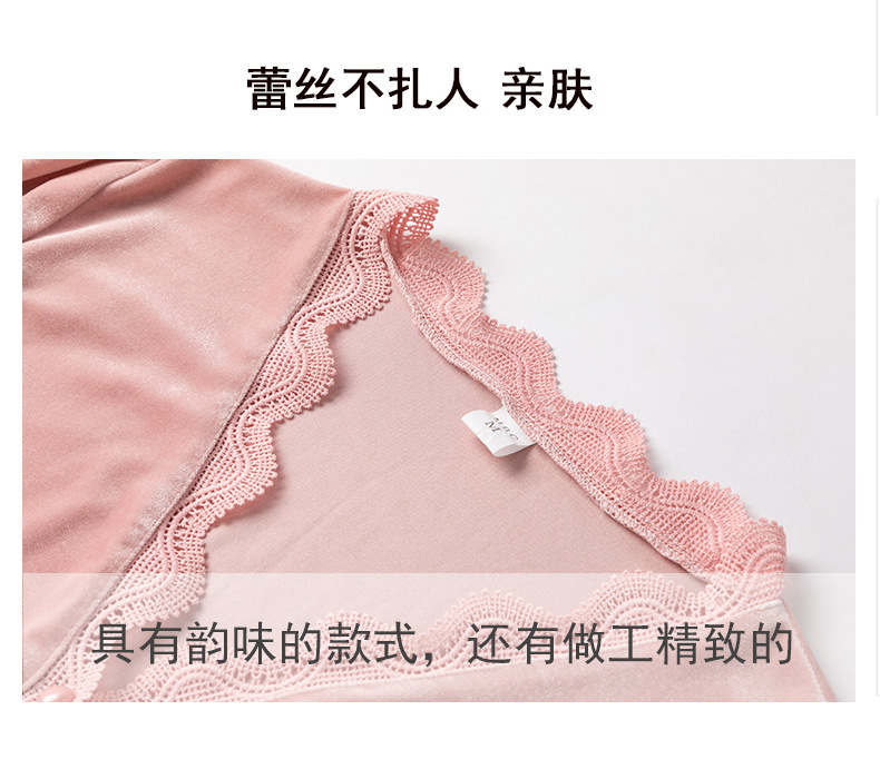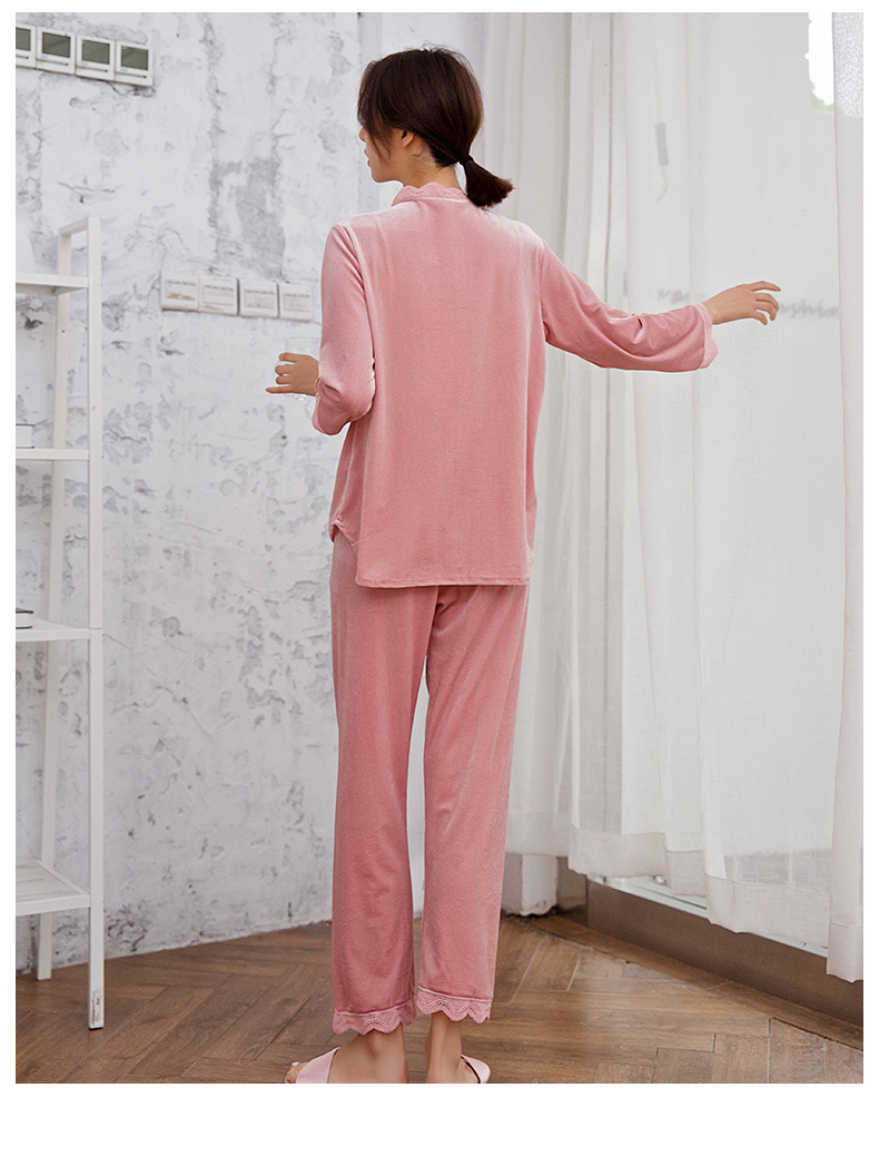 새로운 골드 벨벳 파자마 여성의 봄과 가을 긴 소매 레이스 외부 달콤한 두 조각 세트 라이브 인터넷 축하 홈 옷스토어 가기