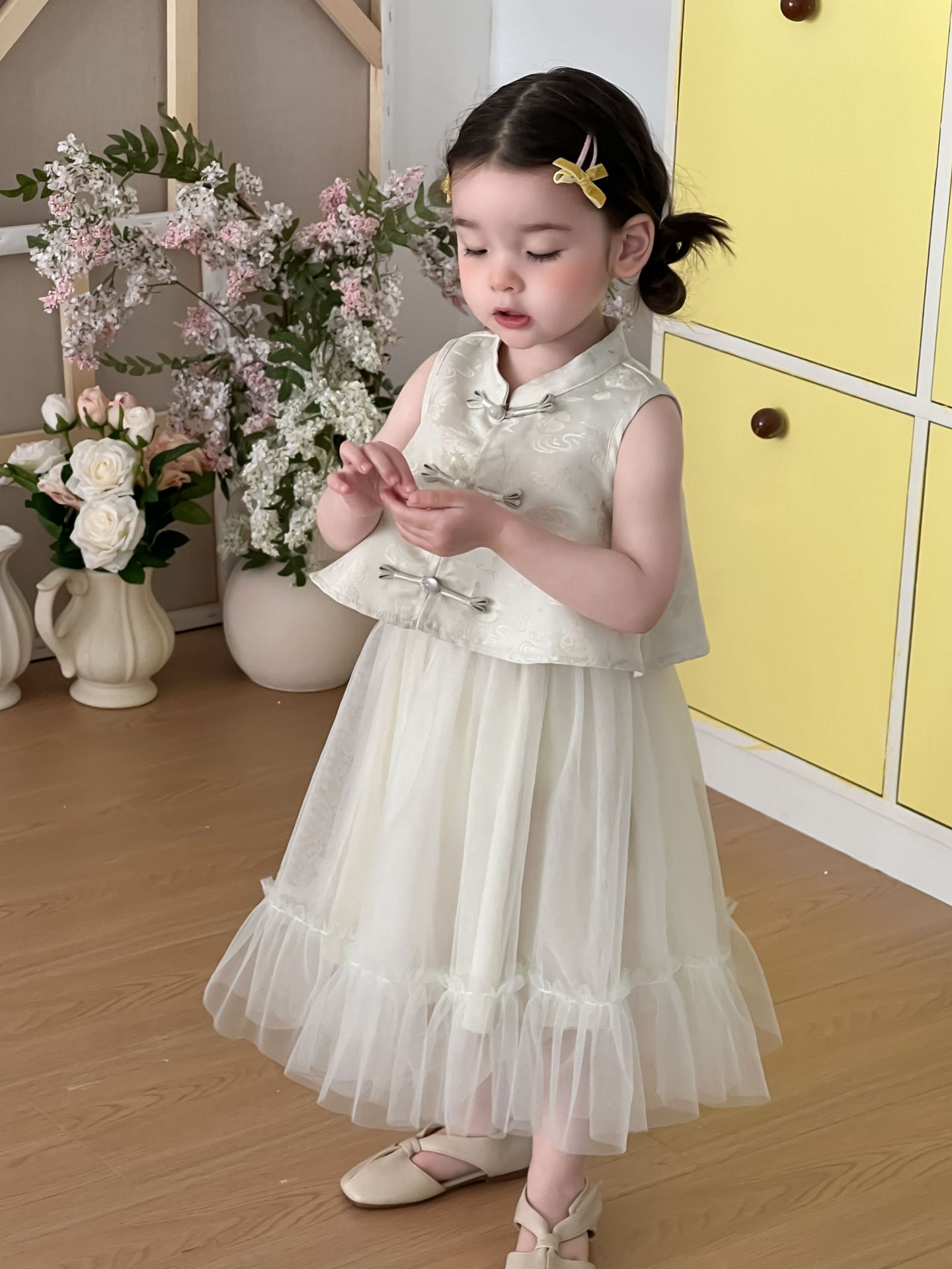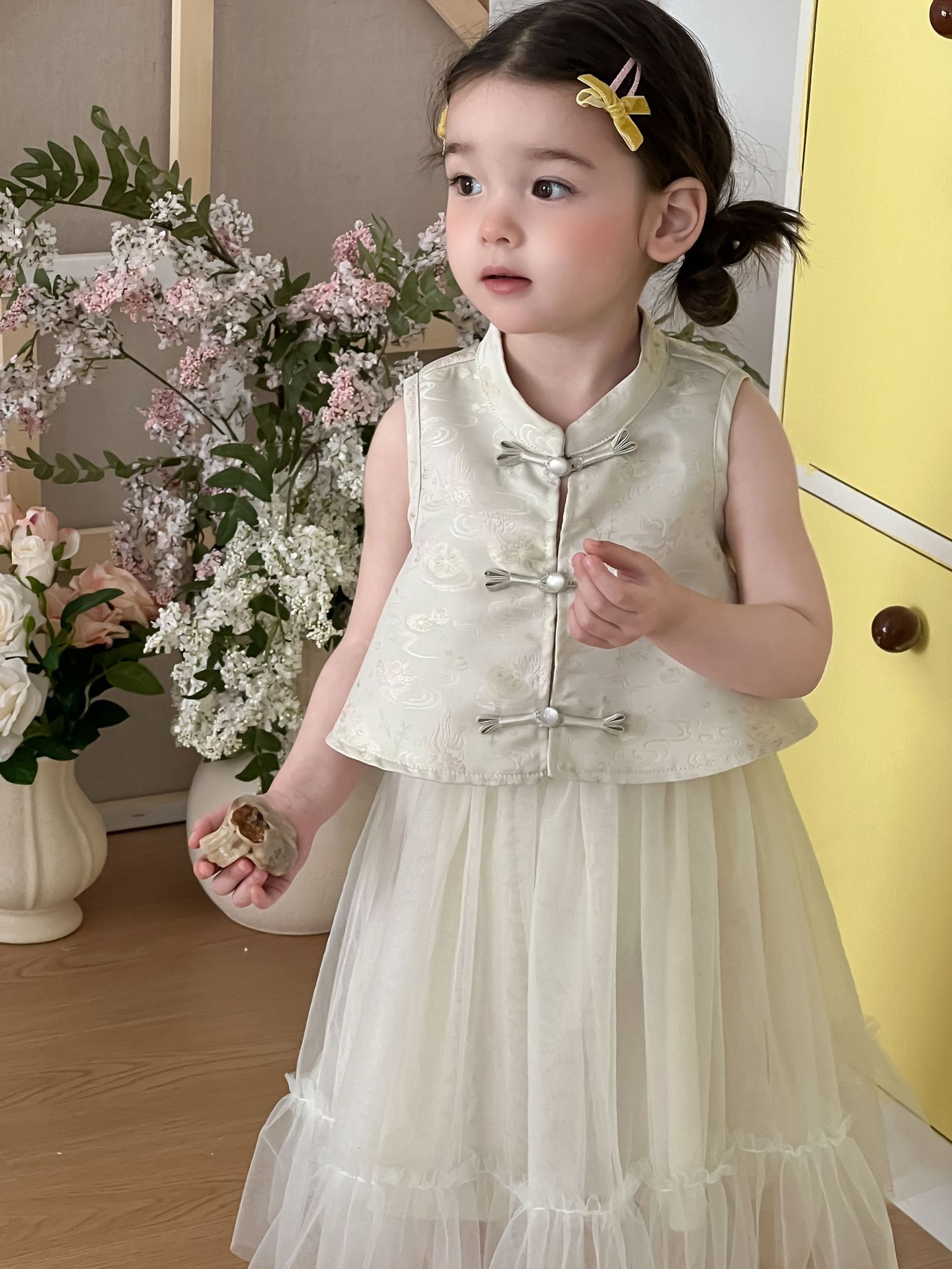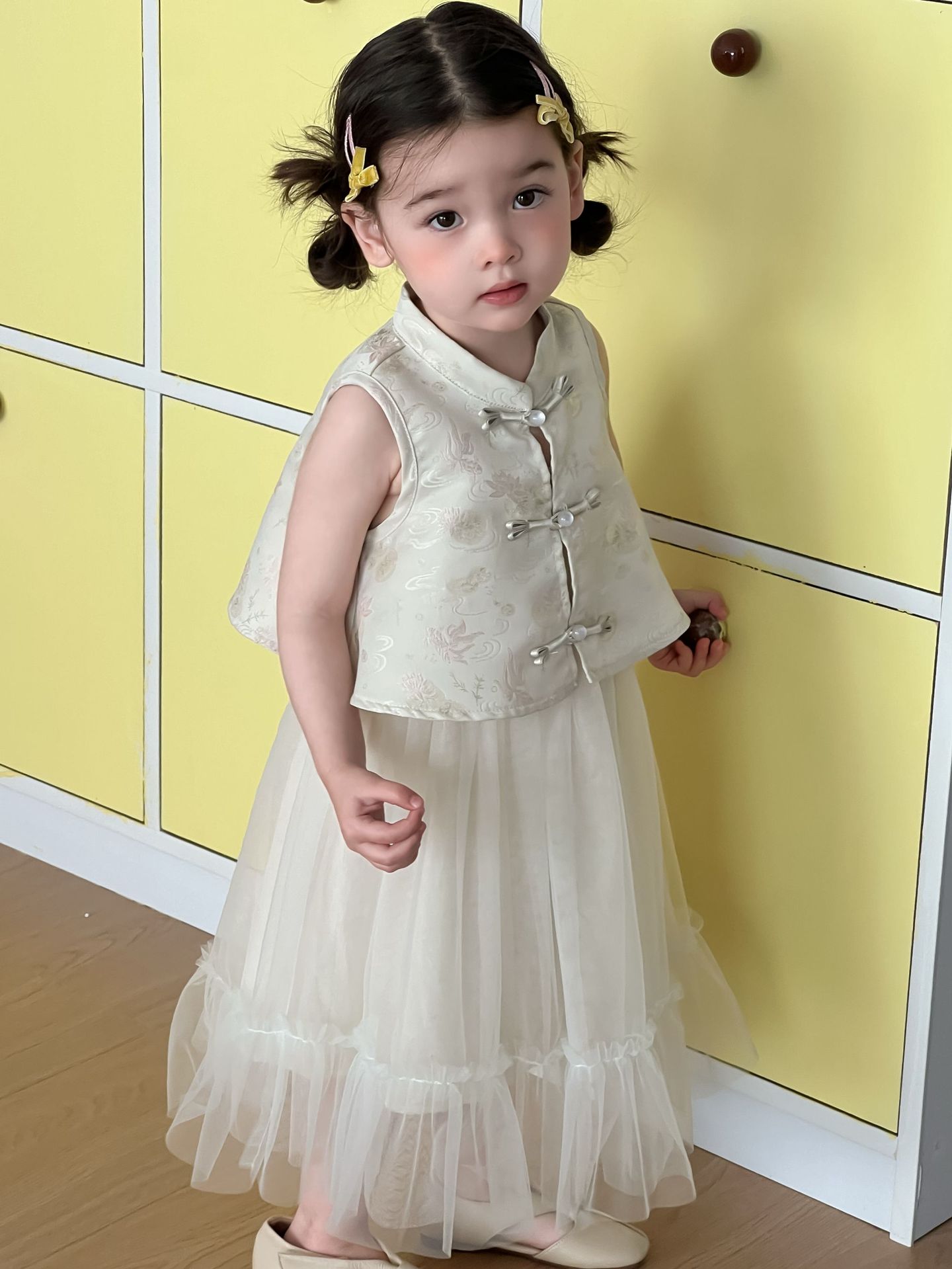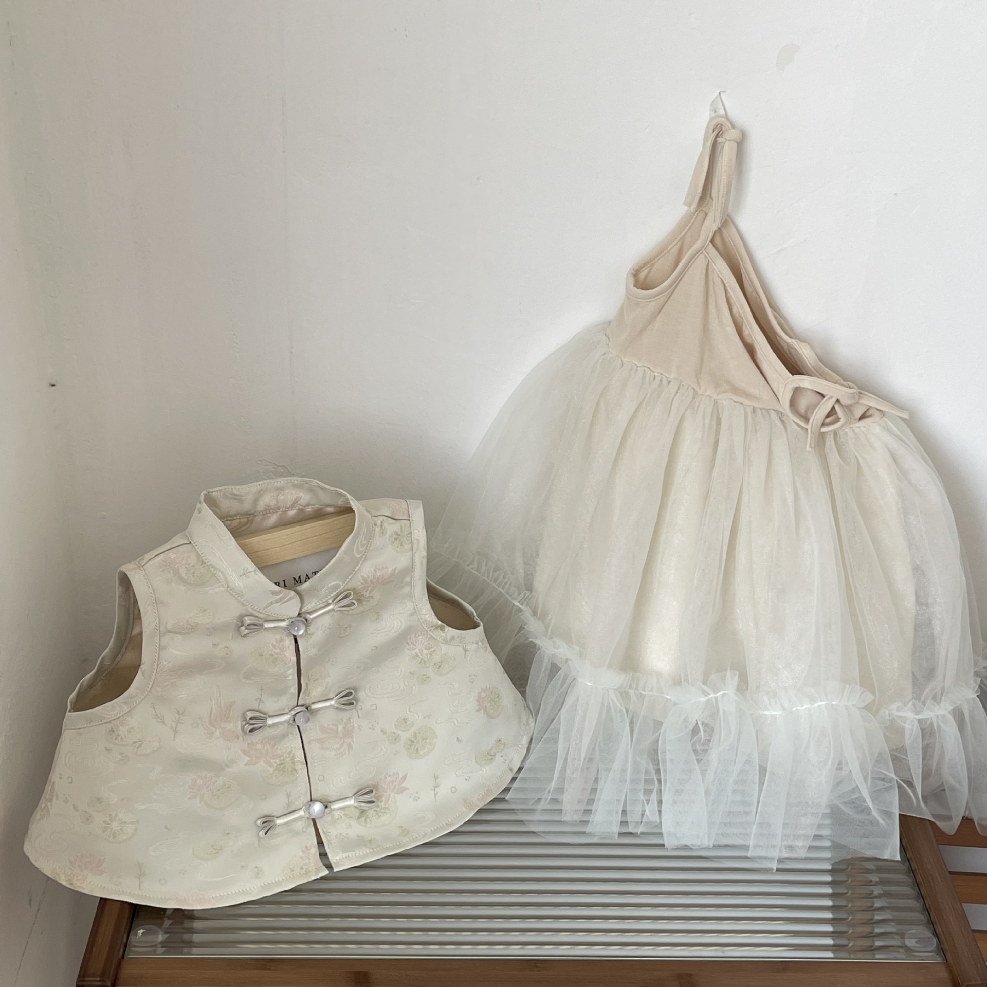 봄 여름 여아 공주풍 신중국풍 거즈 스커트 투피스 세트 민소매 우아하고 달콤한 튜튜 스커트