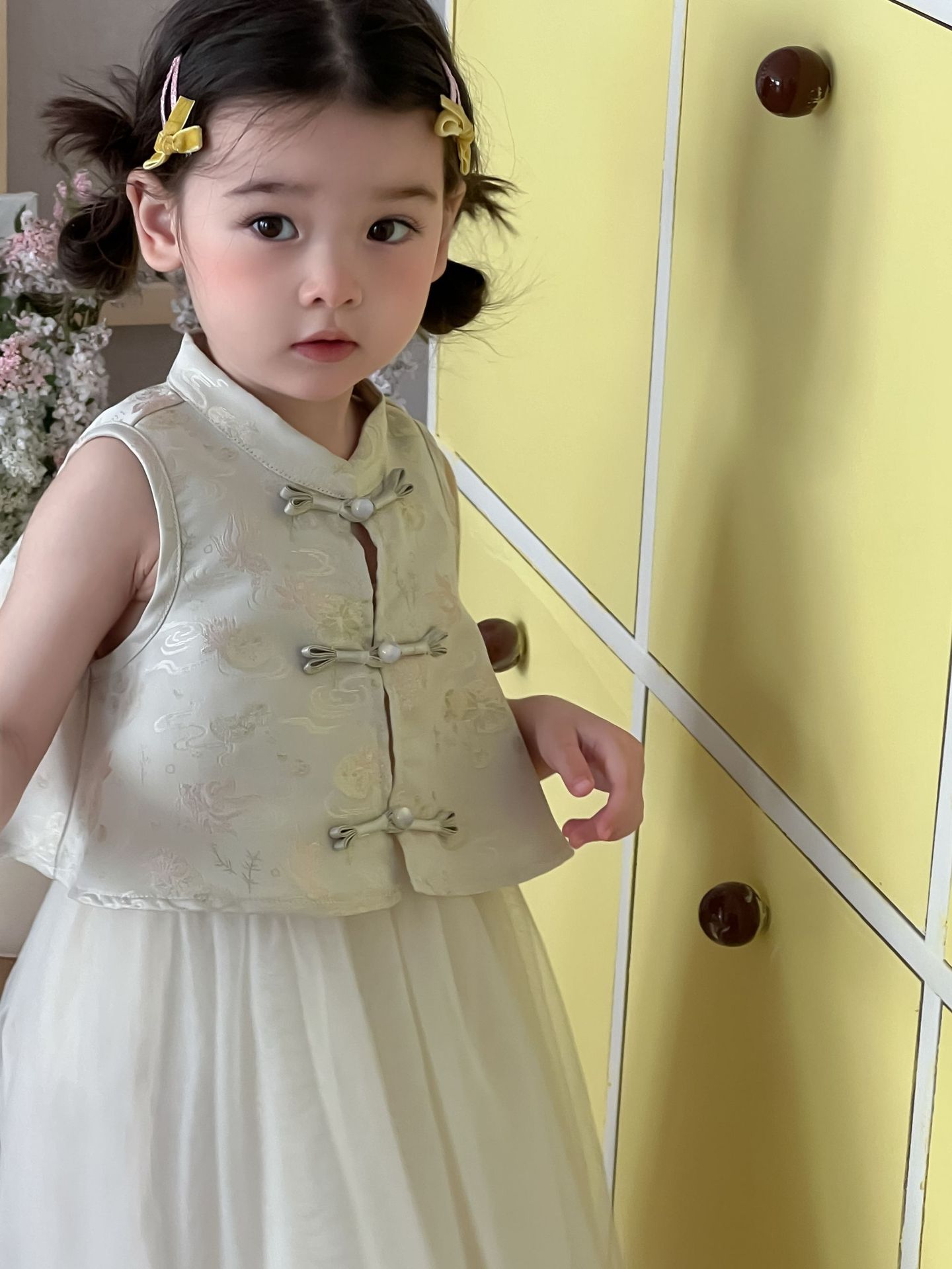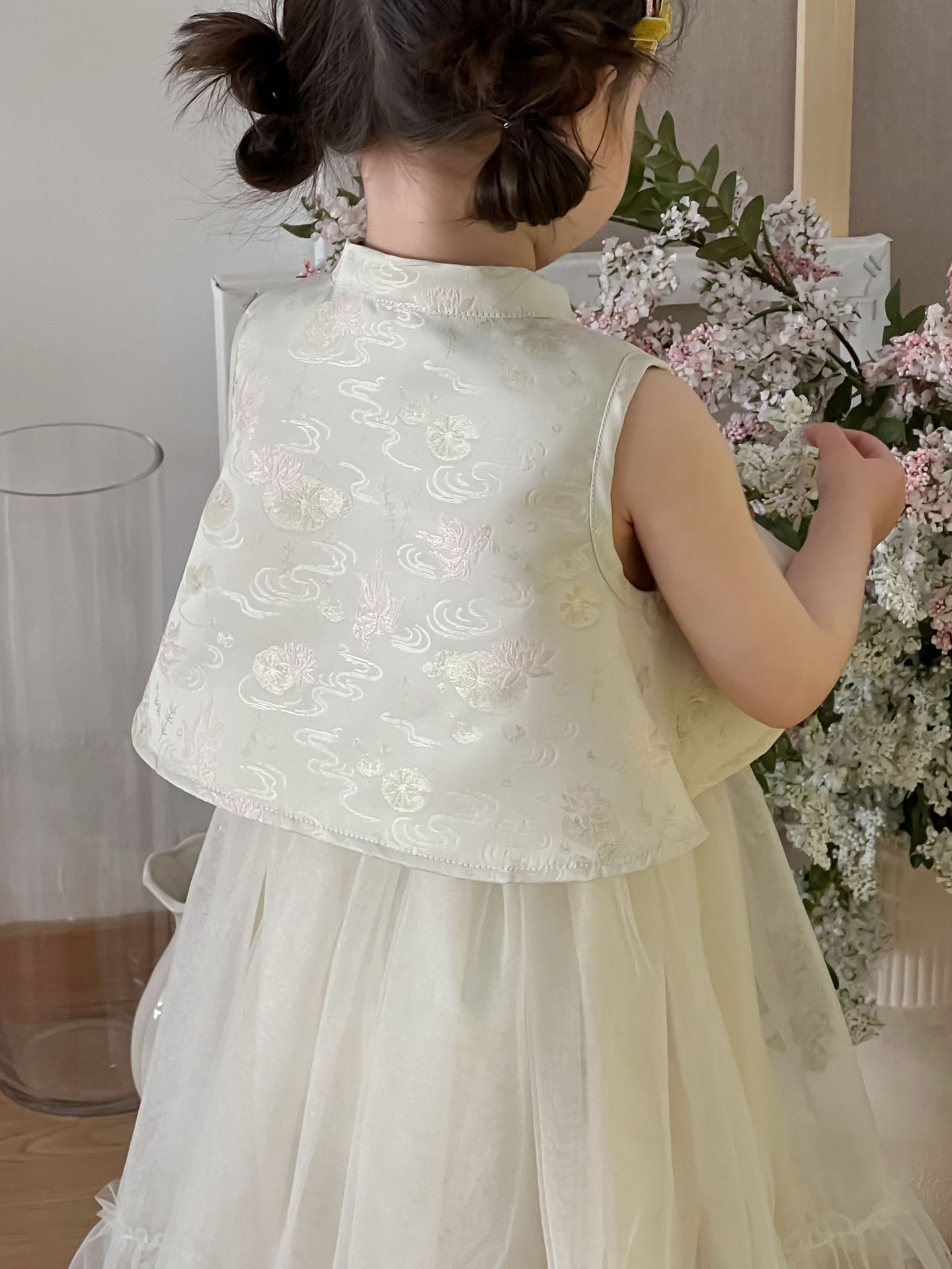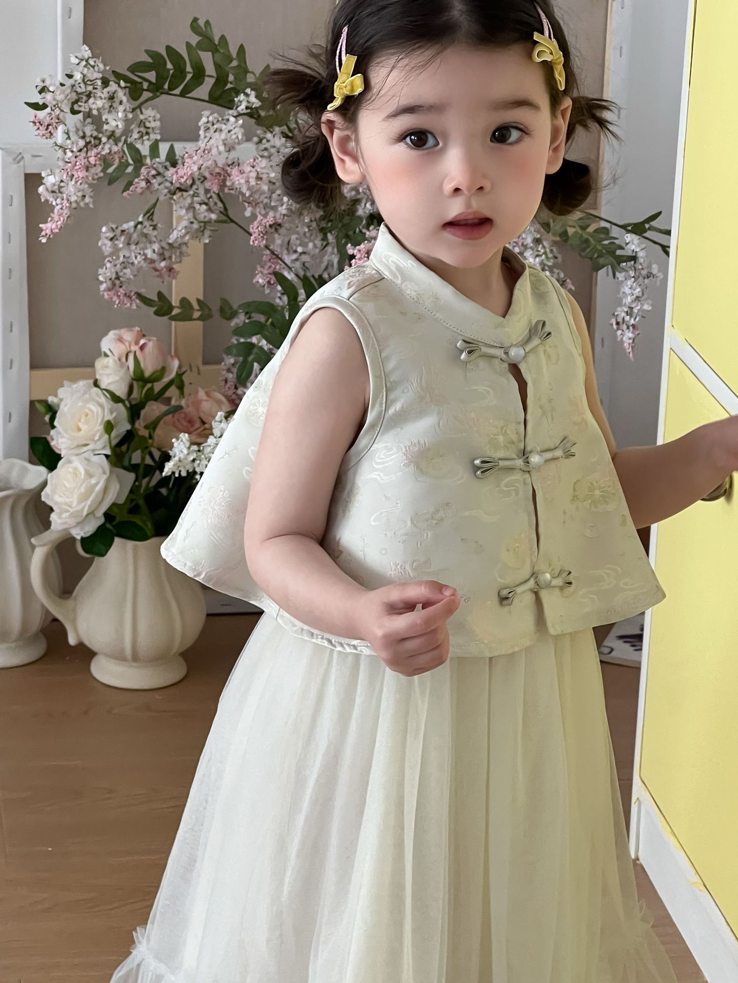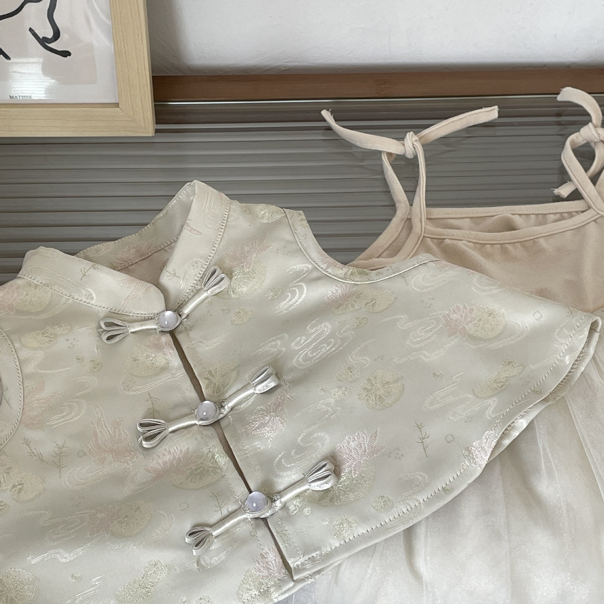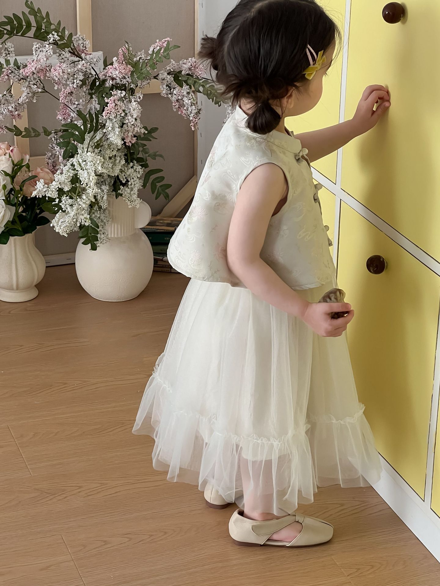 봄 여름 여아 공주풍 신중국풍 거즈 스커트 투피스 세트 민소매 우아하고 달콤한 튜튜 스커트