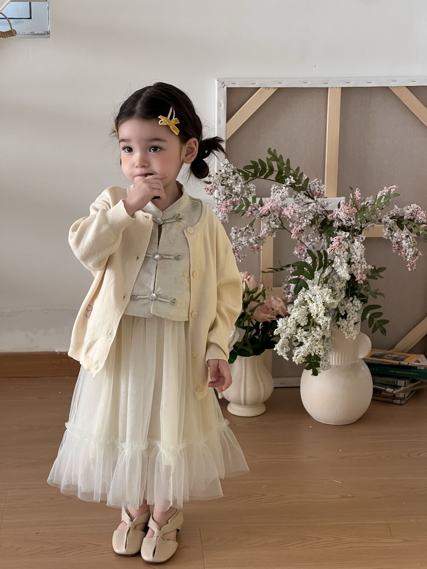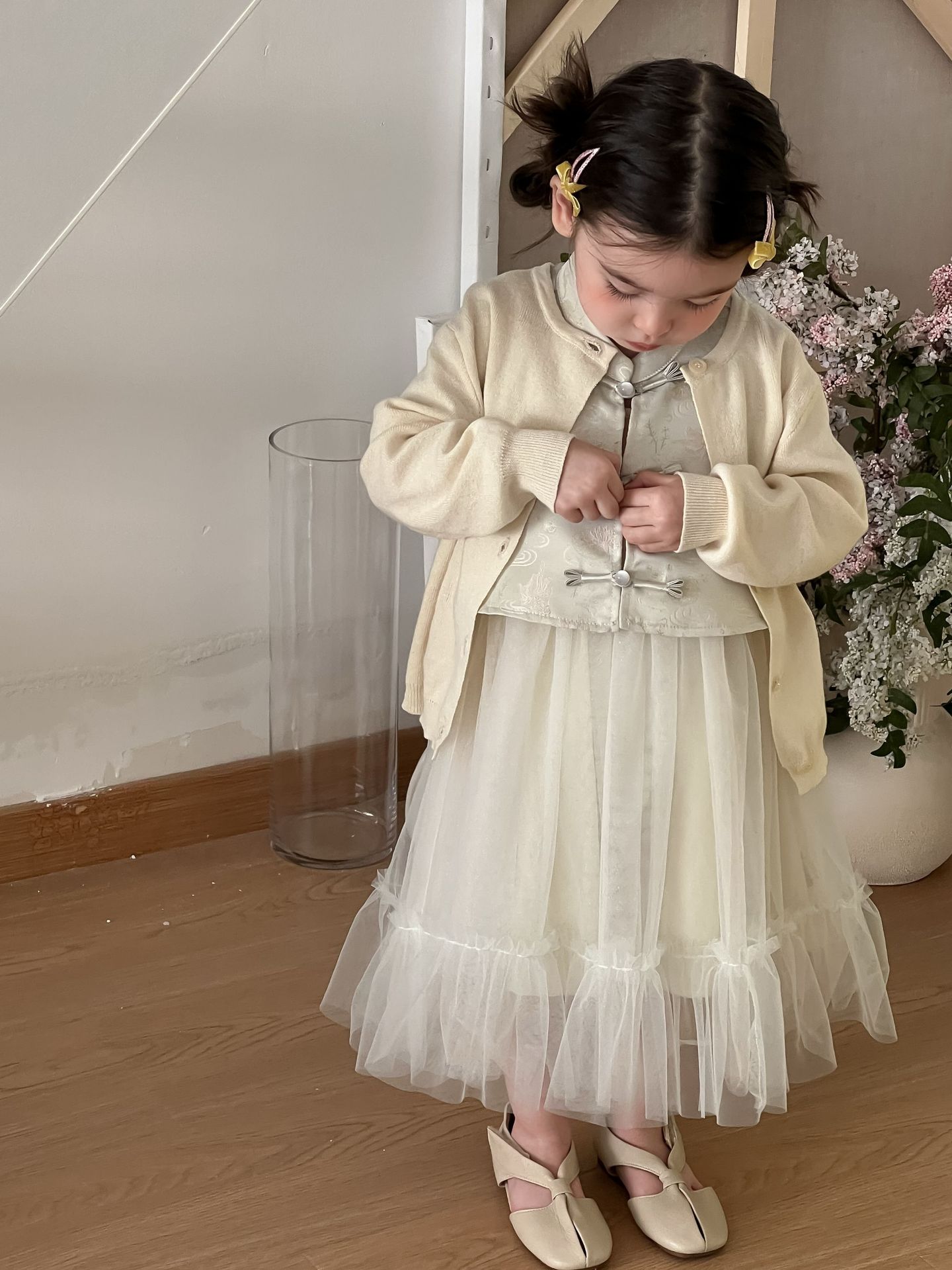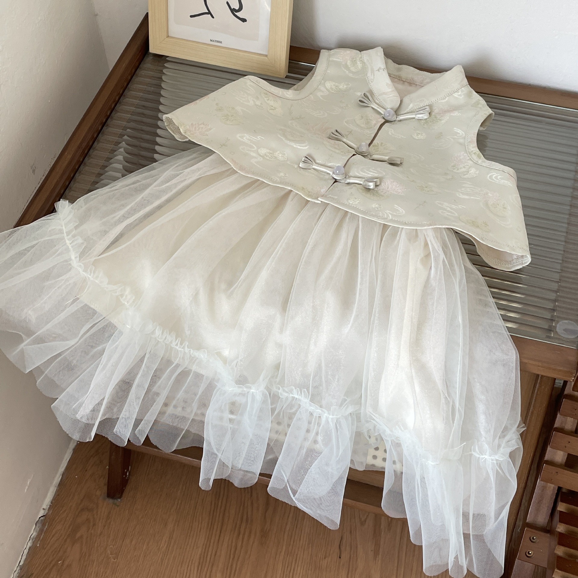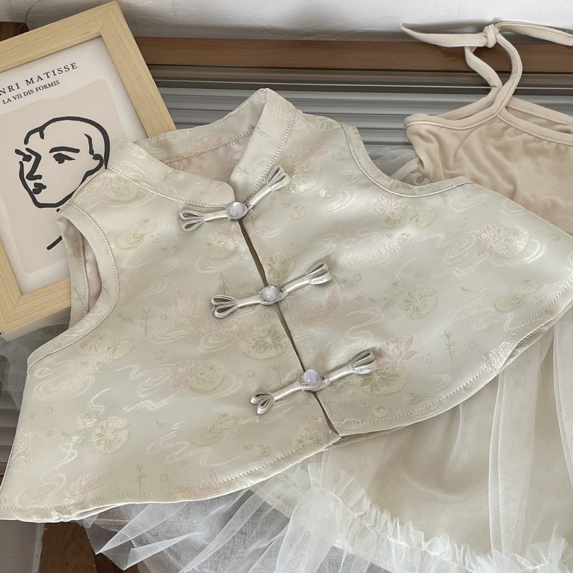 봄 여름 여아 공주풍 신중국풍 거즈 스커트 투피스 세트 민소매 우아하고 달콤한 튜튜 스커트