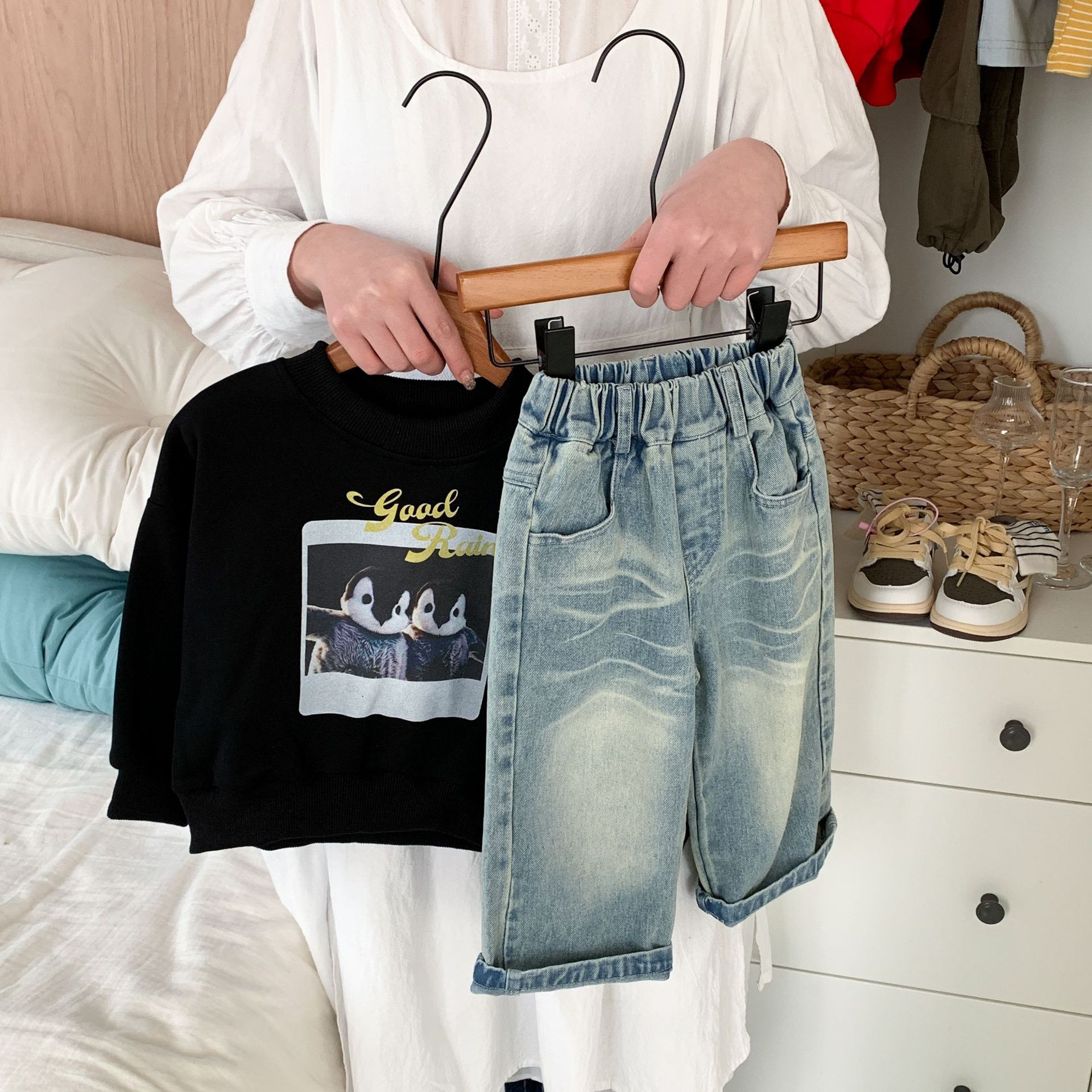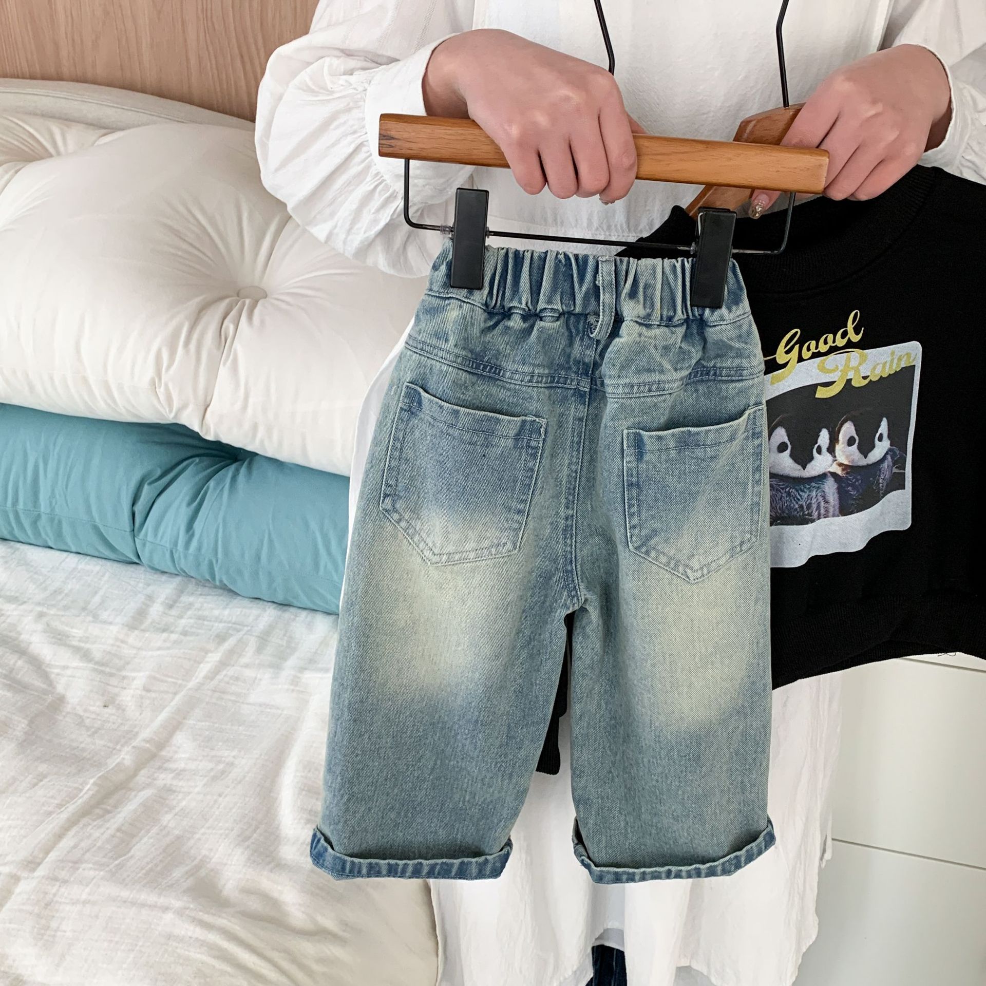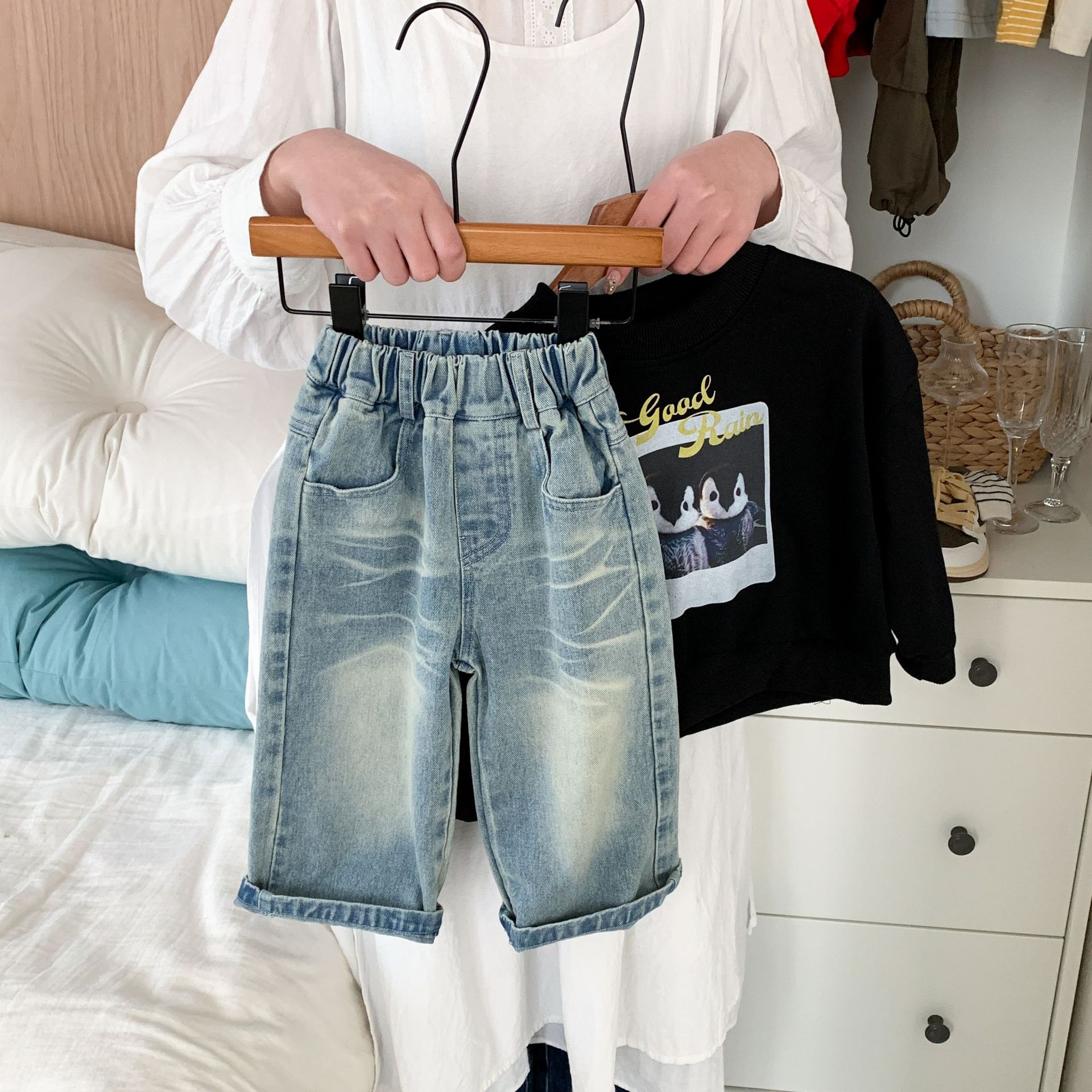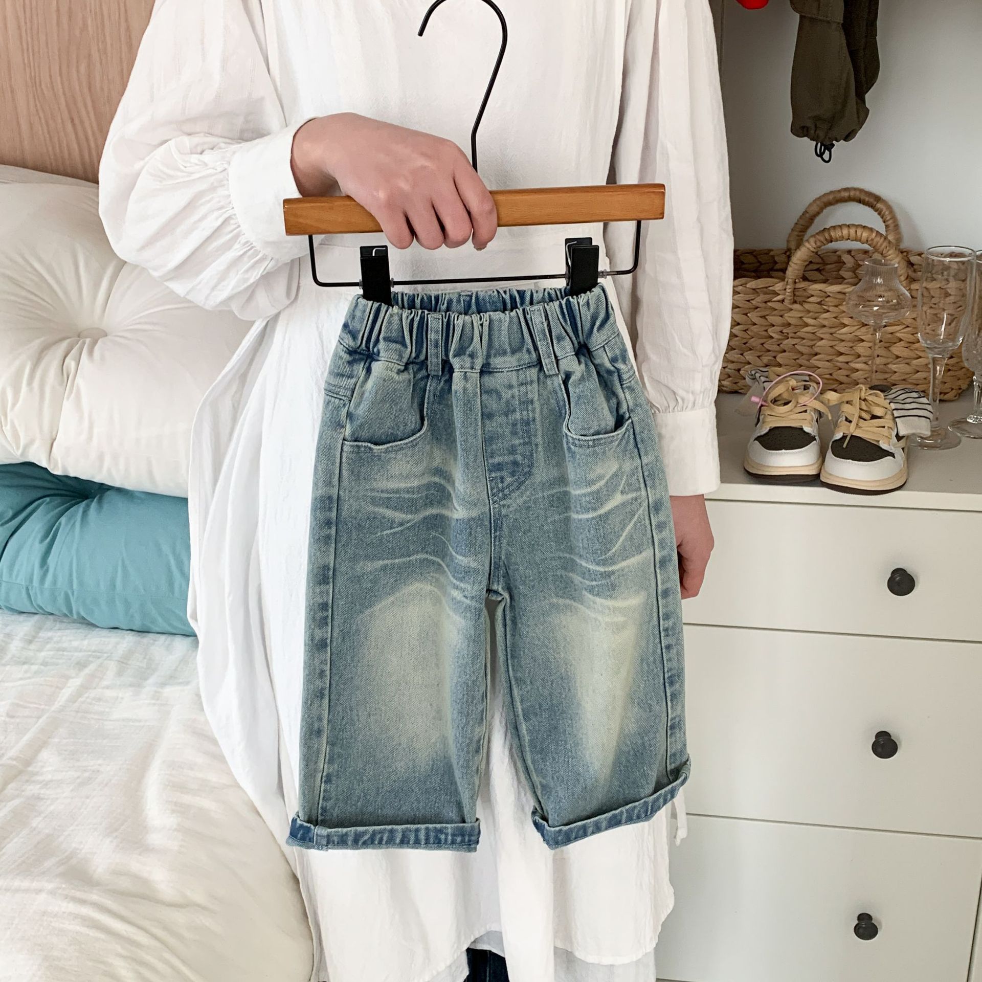 한국 2025 신상 남아 청바지 봄 스타일 유아 아동 바지 트렌디하고 멋진 여아 봄옷 스트레이트 팬츠스토어 가기