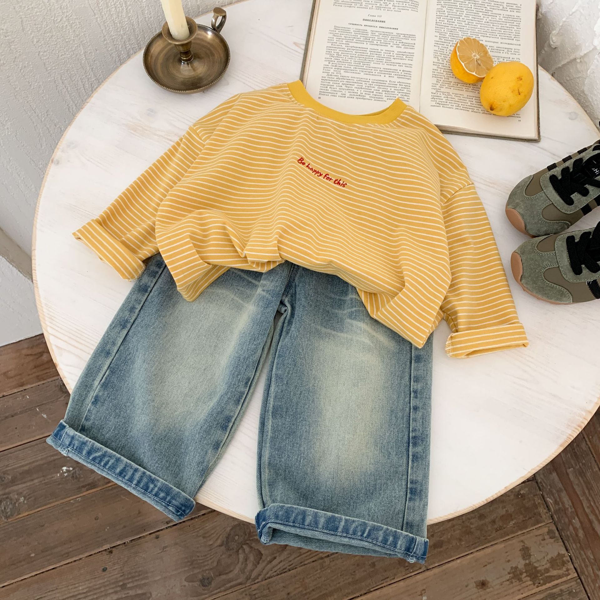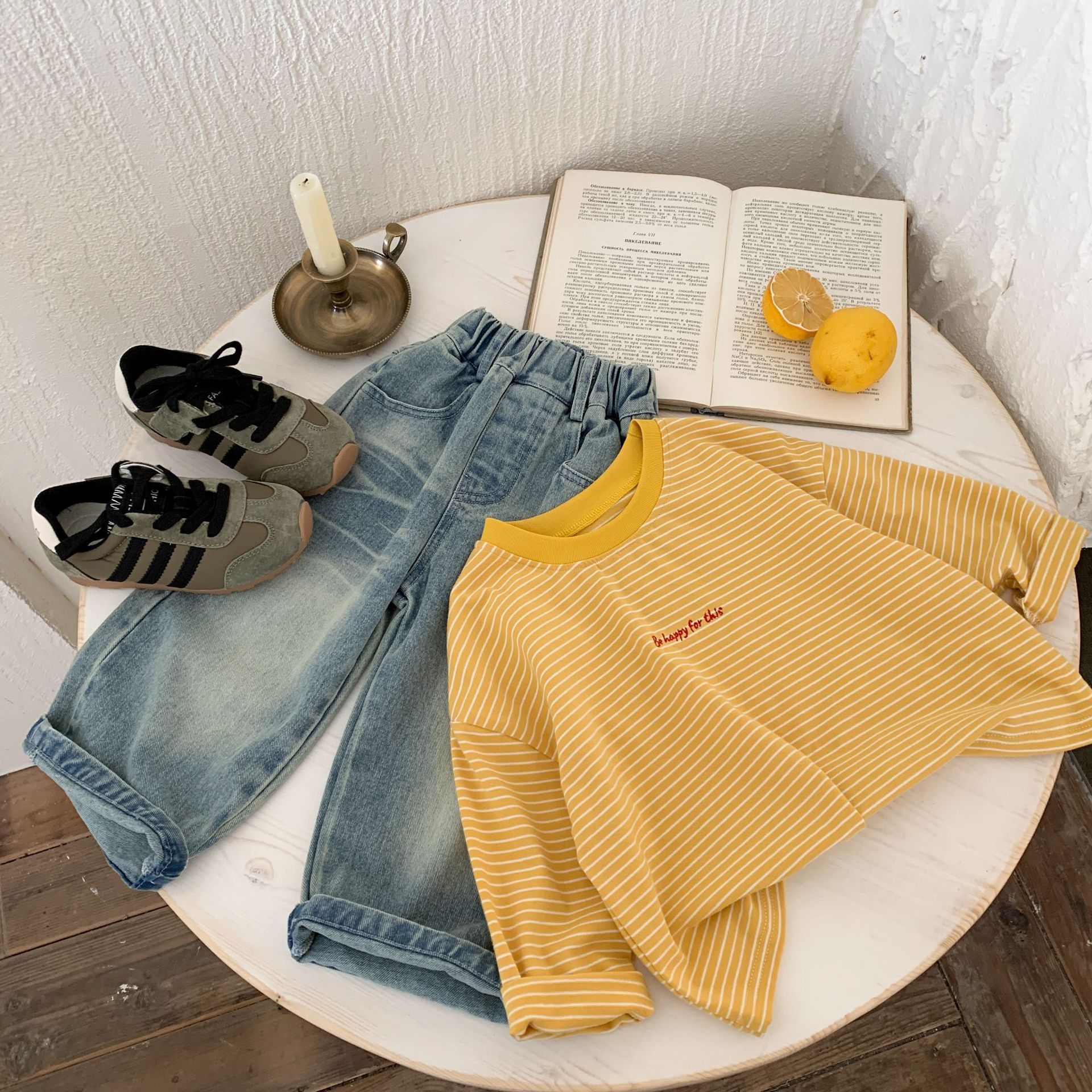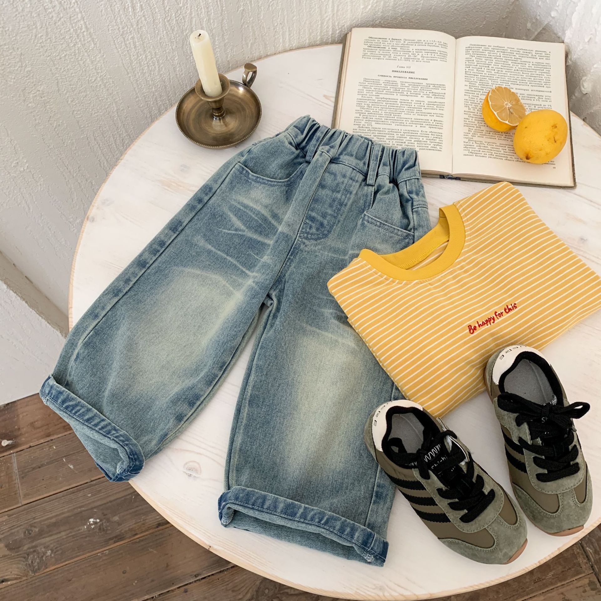 한국 2025 신상 남아 청바지 봄 스타일 유아 아동 바지 트렌디하고 멋진 여아 봄옷 스트레이트 팬츠
