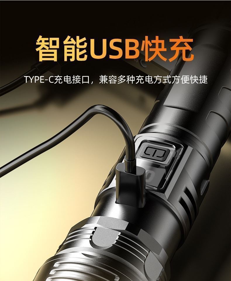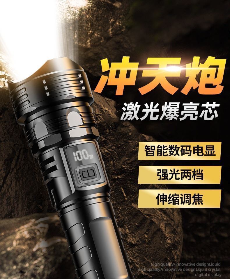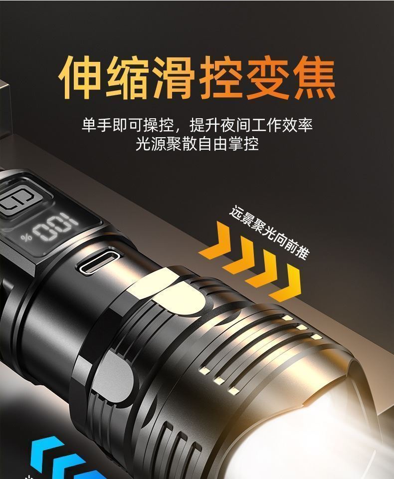 새로운 디지털 전기 디스플레이 다기능 텔레스코픽 줌 흰색 레이저 작업 빛 숨겨진 충전 순찰 방수 손전등스토어 가기