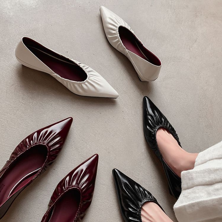 2025 년 봄과 여름 새로운 프랑스 뾰족한 발가락 높이 증가 싱글 레이어 신발 여성 솔리드 컬러 말 기름 소 가죽 입 단층 신발 여성용 신발스토어 가기