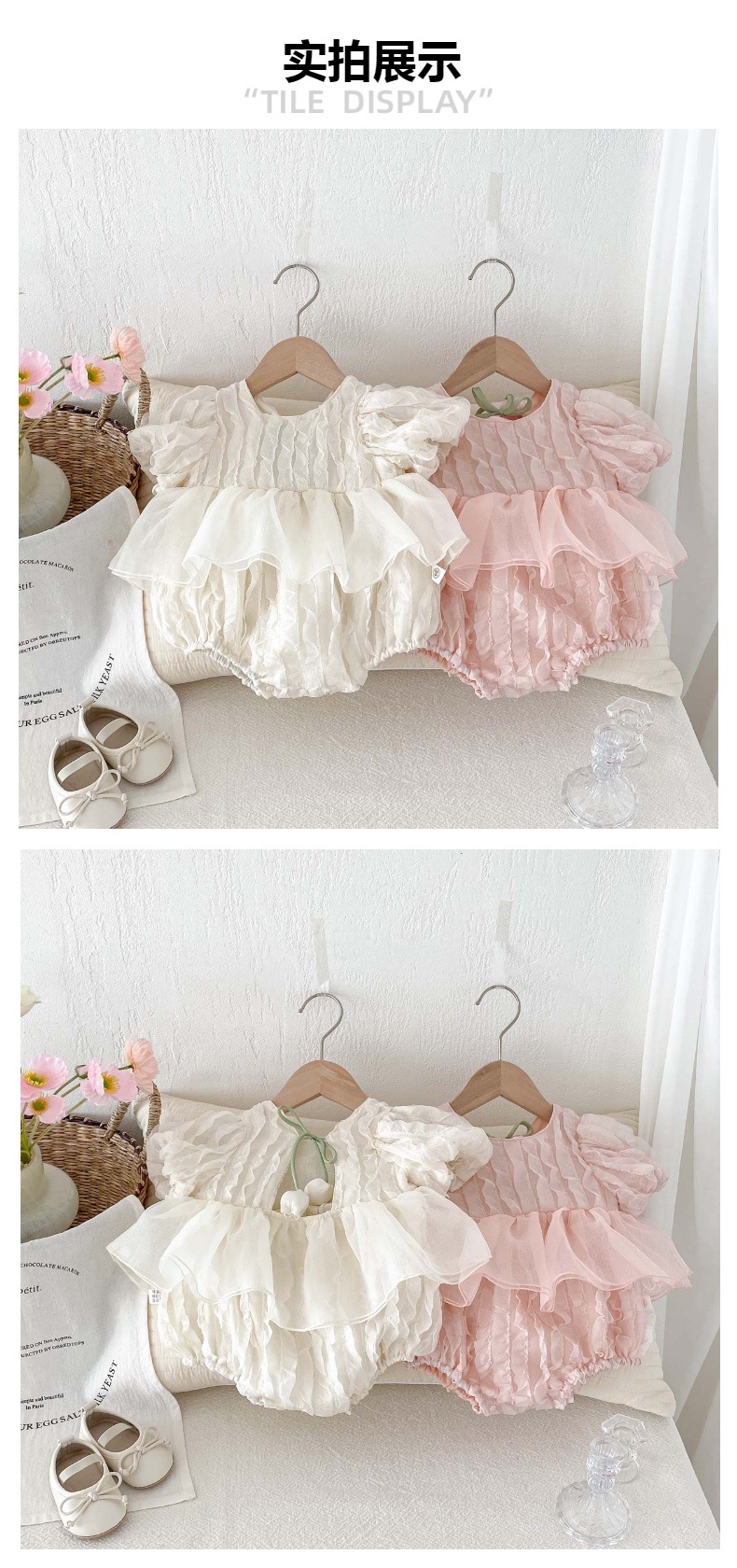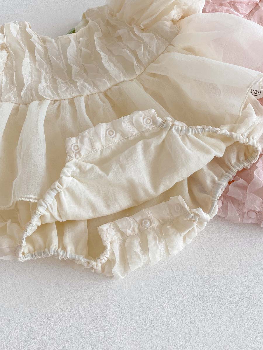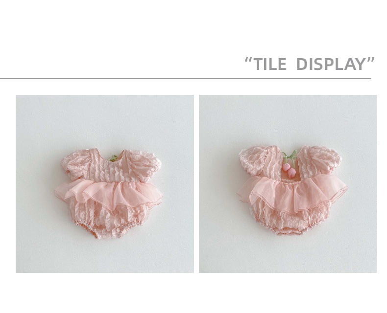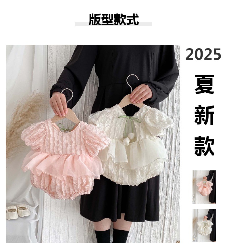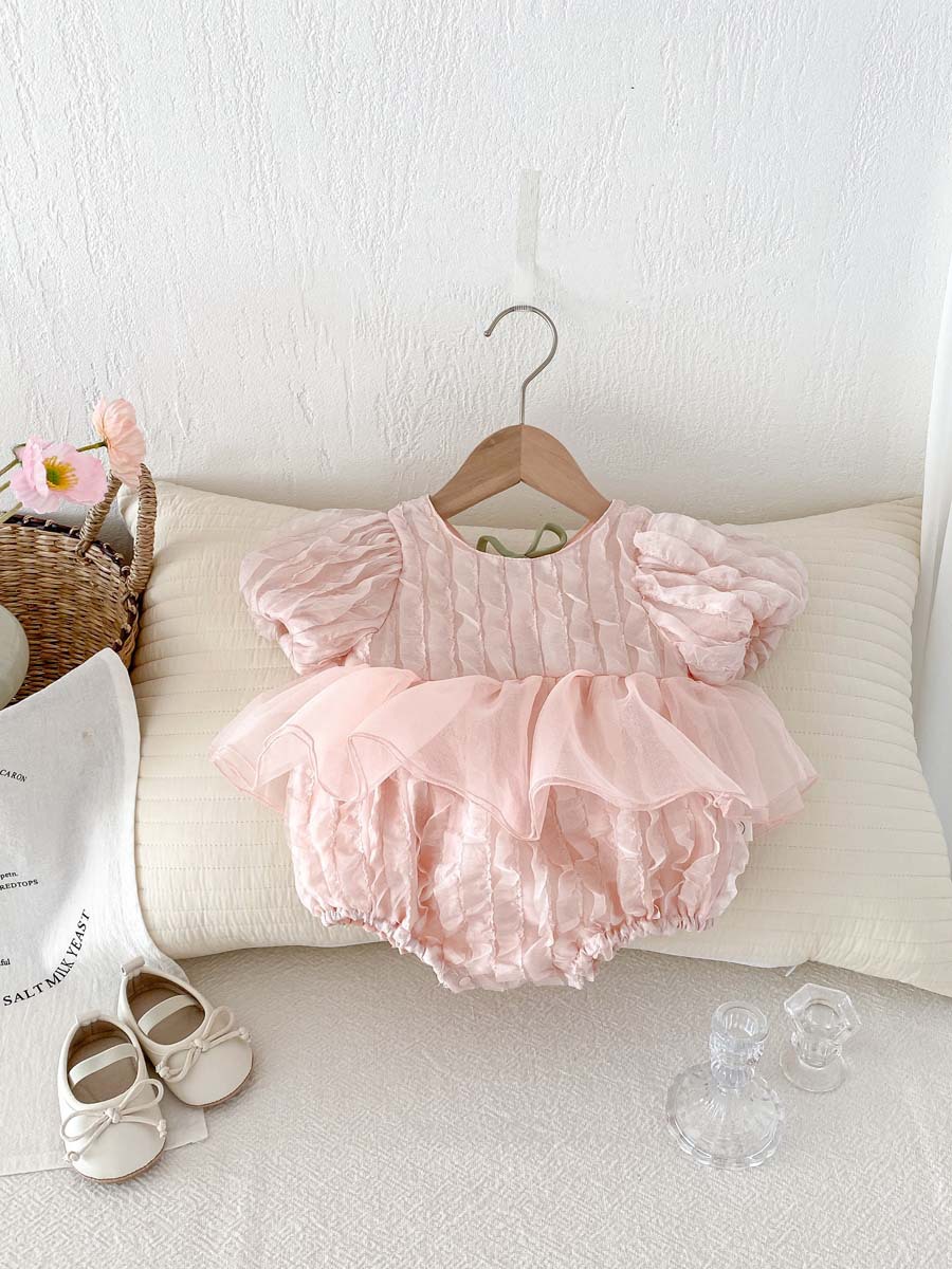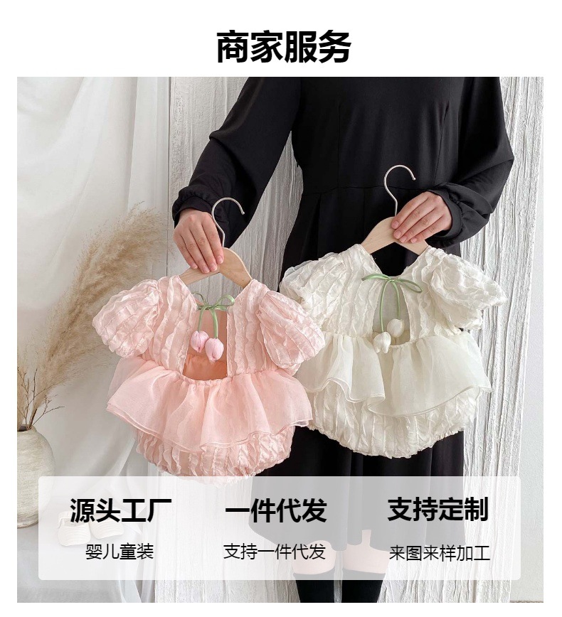 어린이 여름 새 퍼프 슬리브 반팔 점프 수트 아기 소녀 달콤한 튤립 백리스 레이스 Hassle스토어 가기