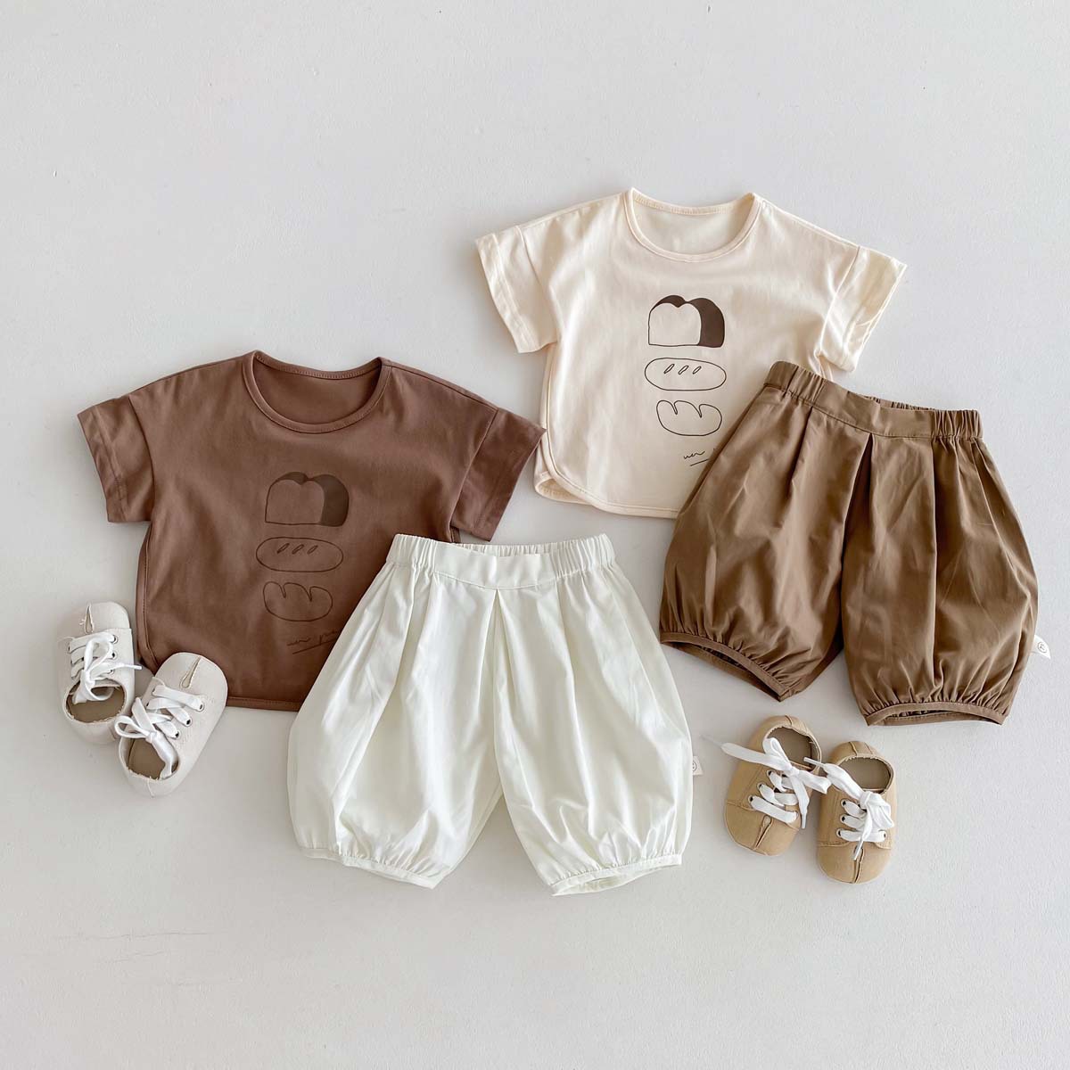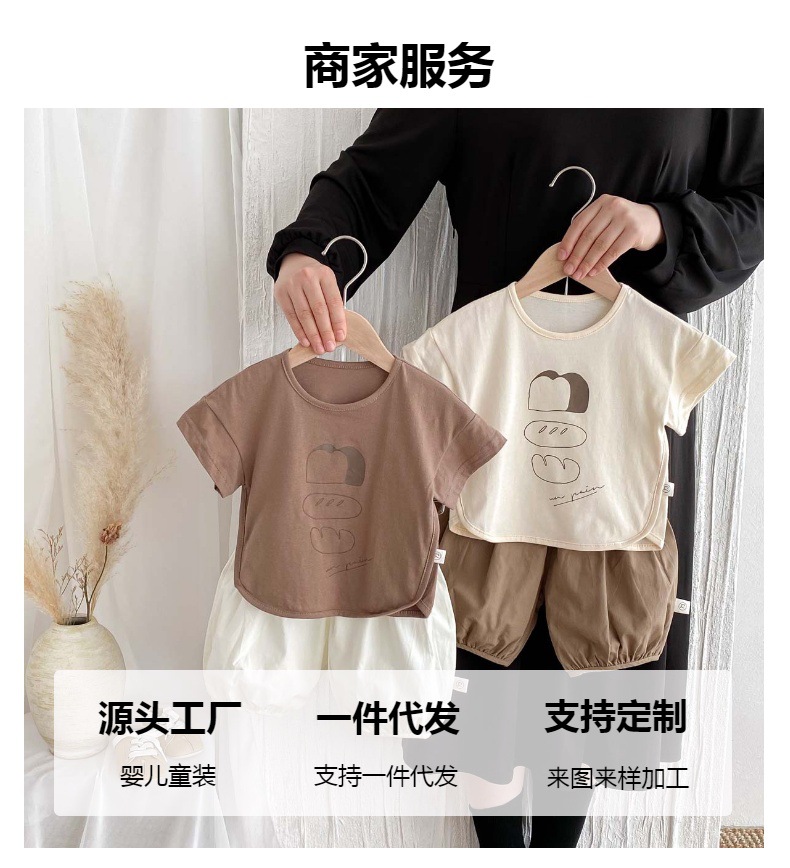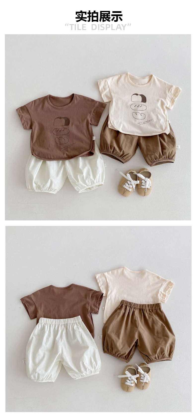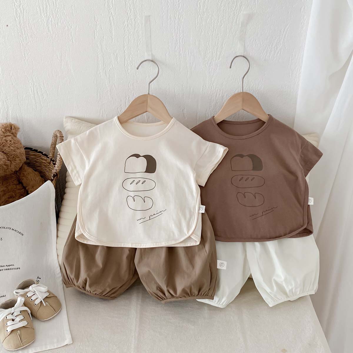 INS 여름 얇은 소년과 소녀 아기 만화 티셔츠 탑 면 캐주얼 랜턴 바지 아기 반바지 세트스토어 가기