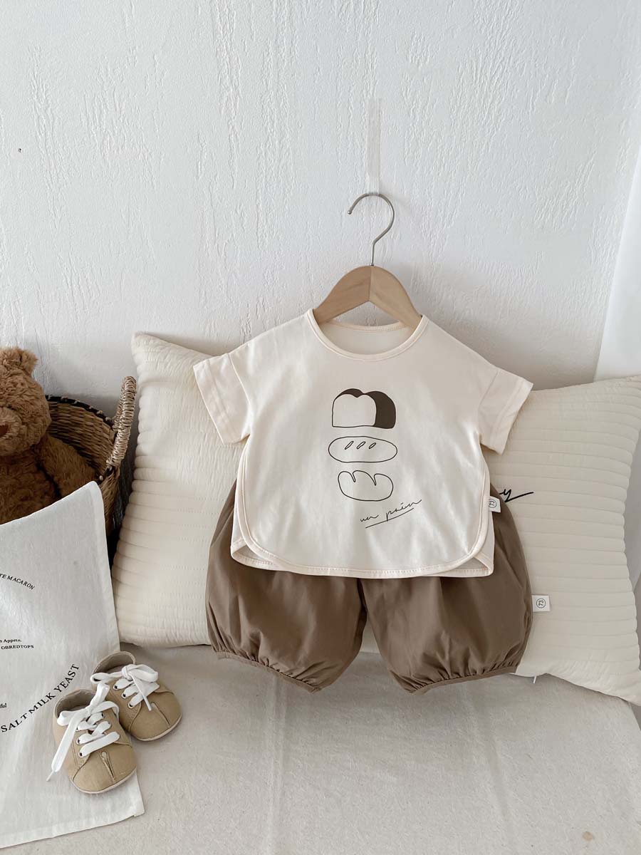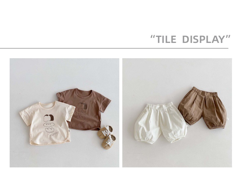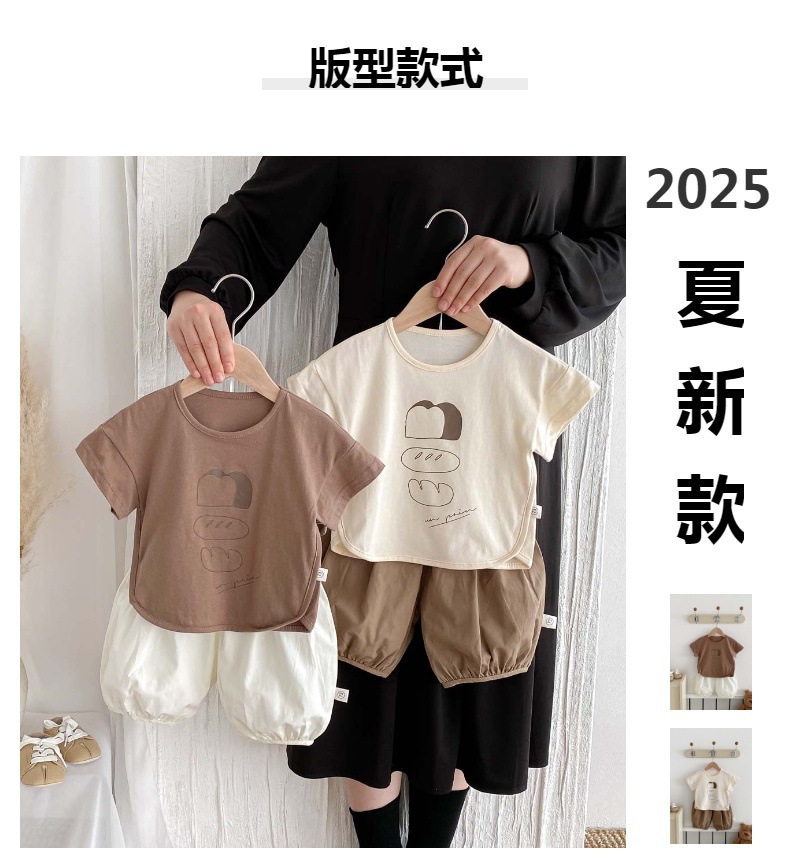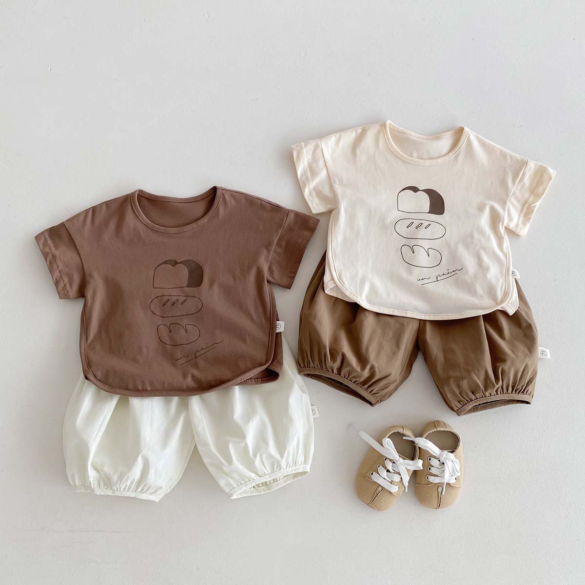 INS 여름 얇은 소년과 소녀 아기 만화 티셔츠 탑 면 캐주얼 랜턴 바지 아기 반바지 세트스토어 가기
