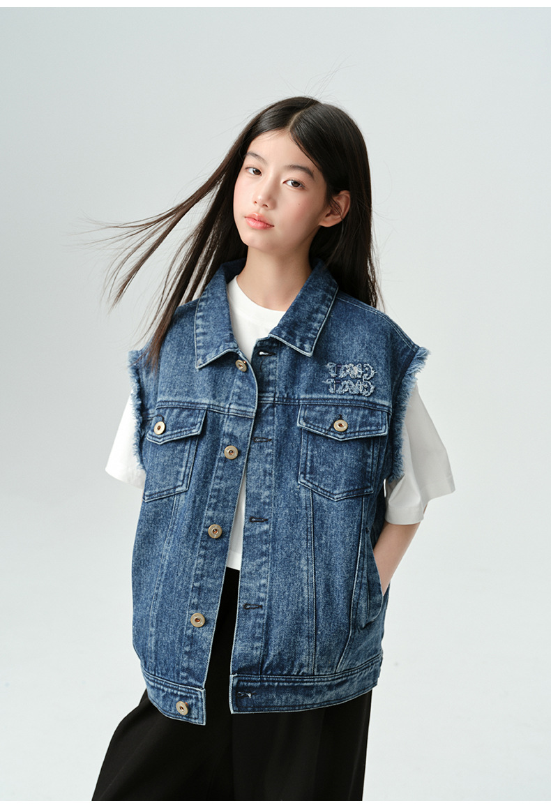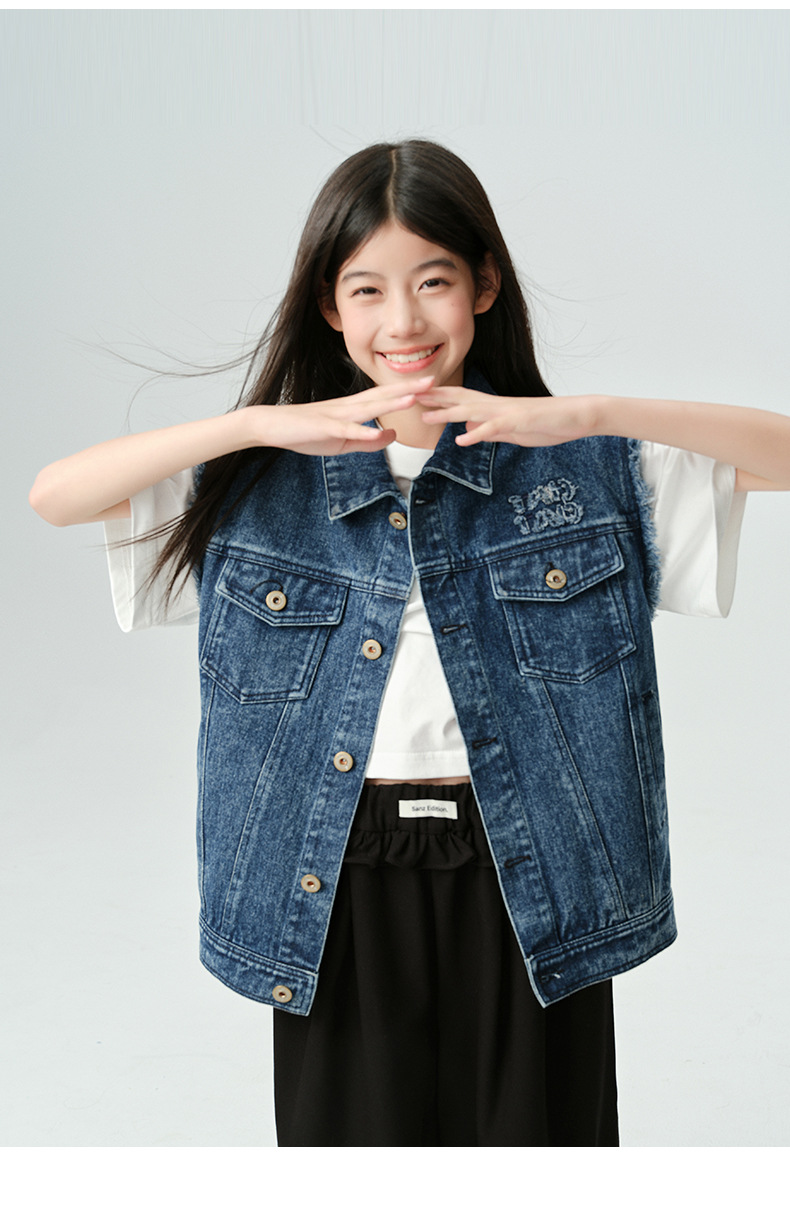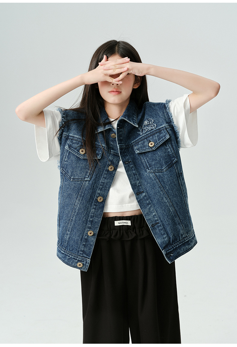 Amoy Town Wanton Tannin 샌딩 걸스 데님 조끼 봄 새 도착 빅 걸의 라루즈 민소매 조끼스토어 가기