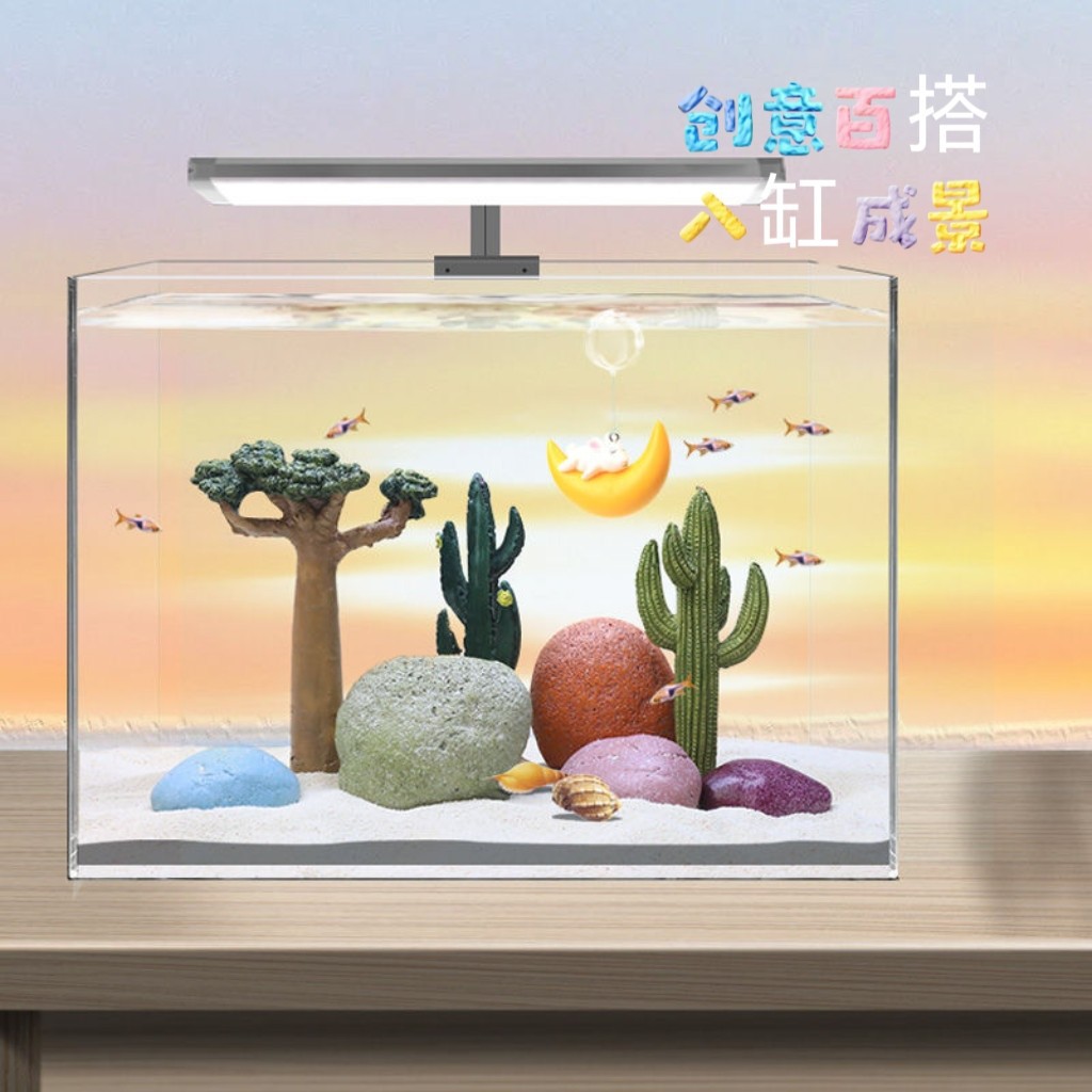 시뮬레이션 선인장 물고기 탱크 조경 물 잔디 장식품 수족관 사막 마이크로 풍경 만화 장식 수지 제조 업체