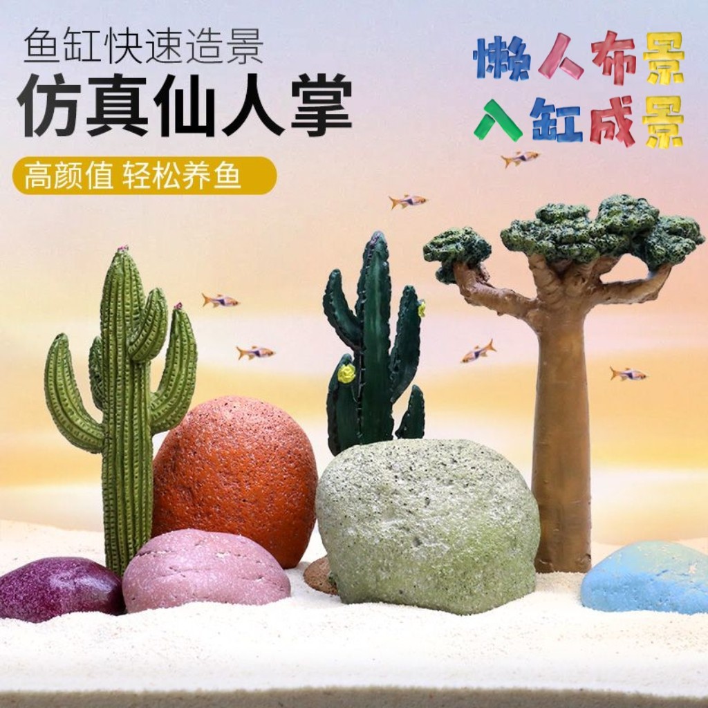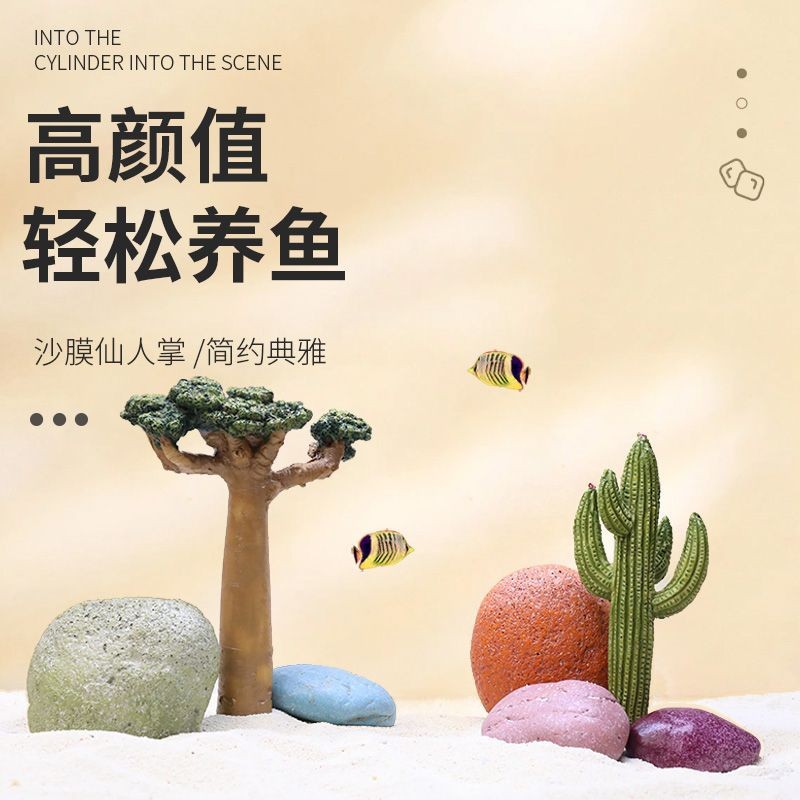 시뮬레이션 선인장 물고기 탱크 조경 물 잔디 장식품 수족관 사막 마이크로 풍경 만화 장식 수지 제조 업체스토어 가기