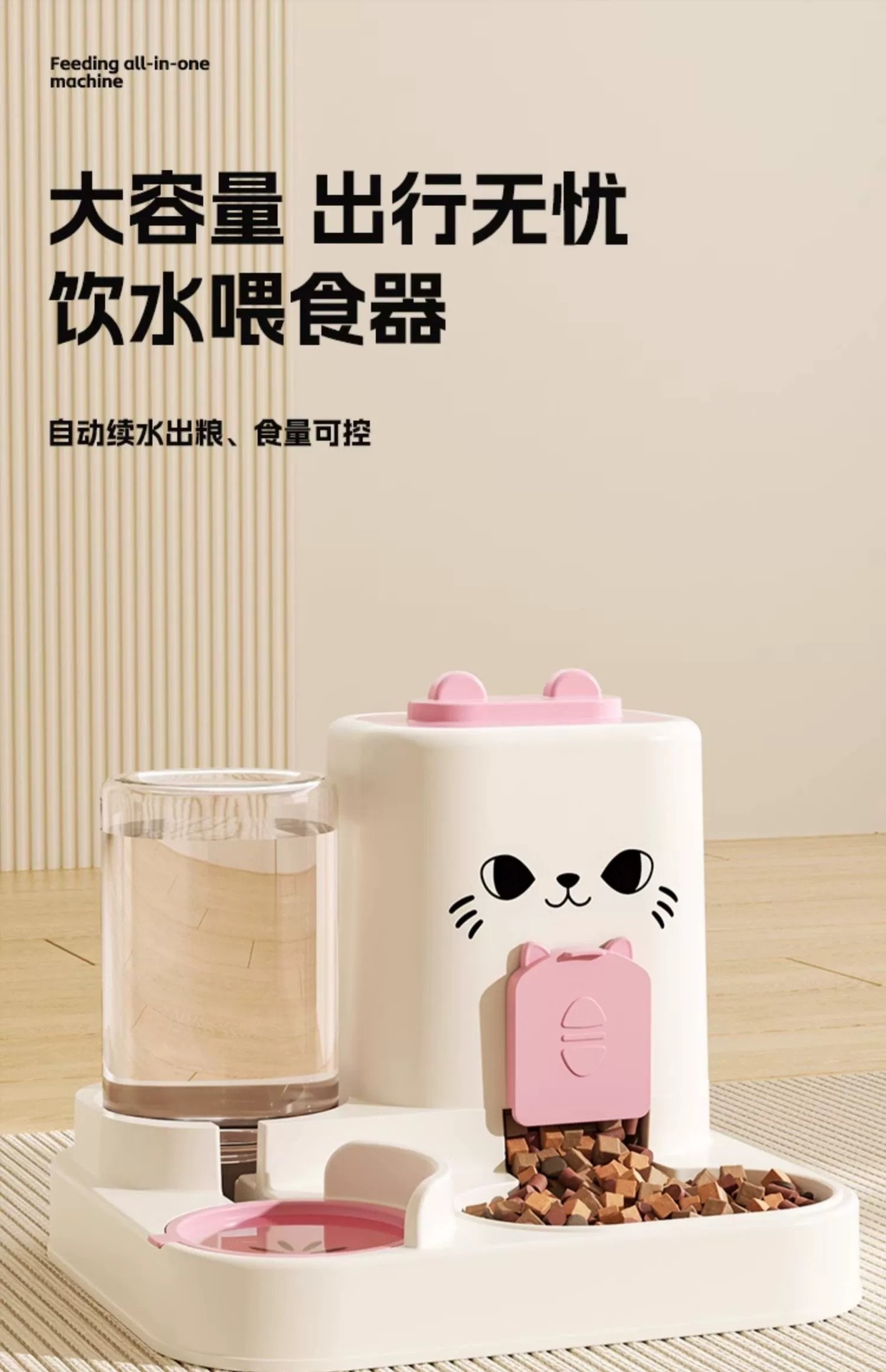 跨境猫脸喂食器水粮一体式投喂器喂食碗干湿分离猫碗狗碗储粮碗