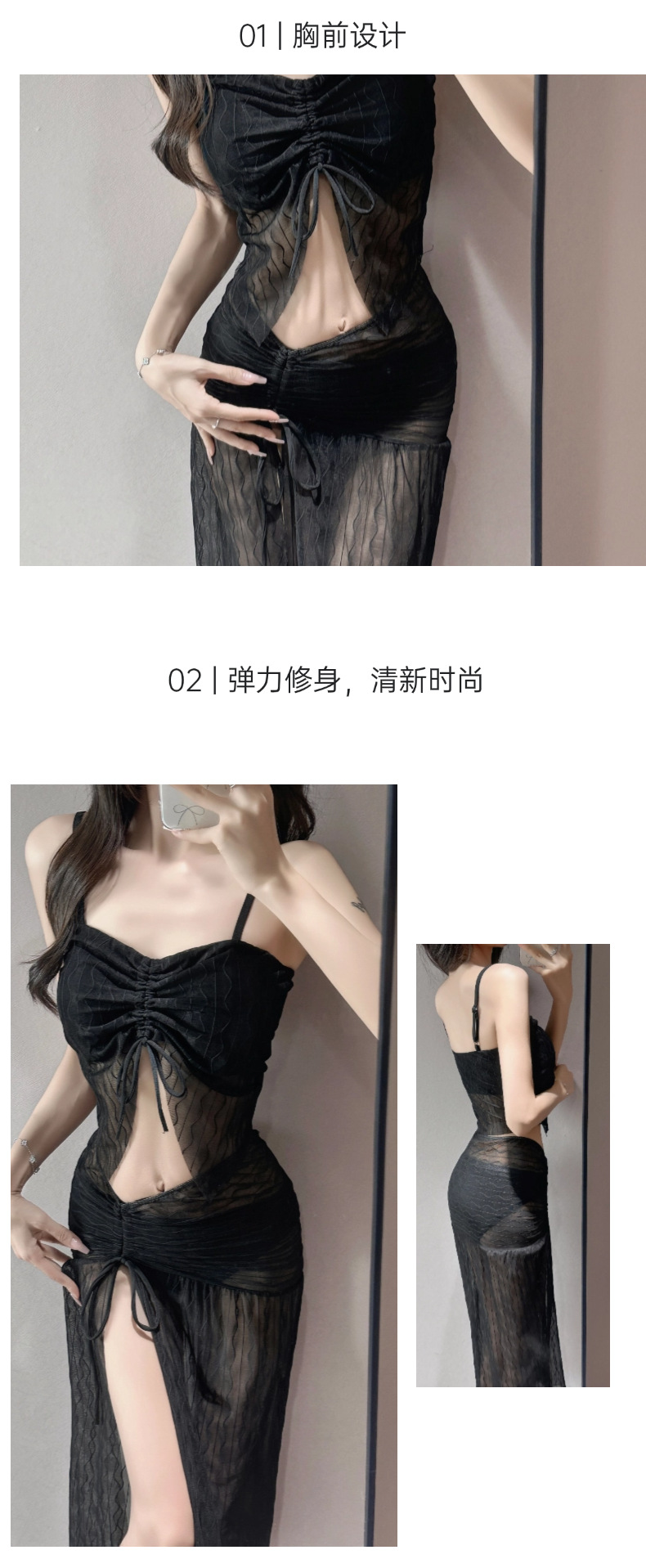2025 새로운 스타일 우아한 긴 원피스 비키니 3 피스 온천 휴가 섹시한 높은 허리 세트 비지니의 높은 감각스토어 가기