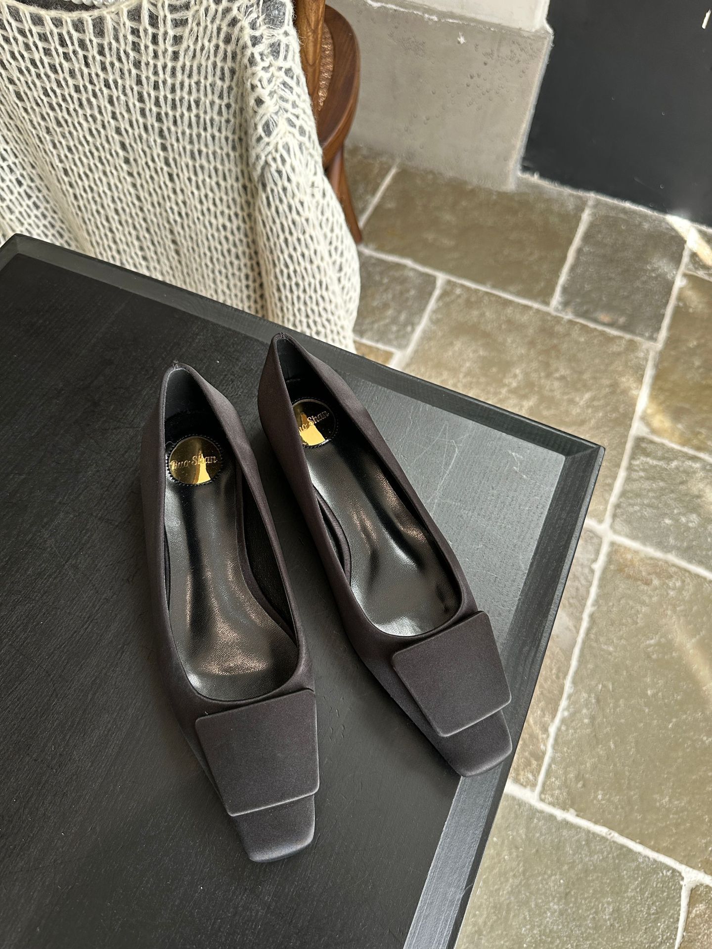 유럽과 미국의 최고 버전 2025 이른 봄 새로운 유행 황소 특허 가죽 실크 작은 광장 평면 신발 통근 신발