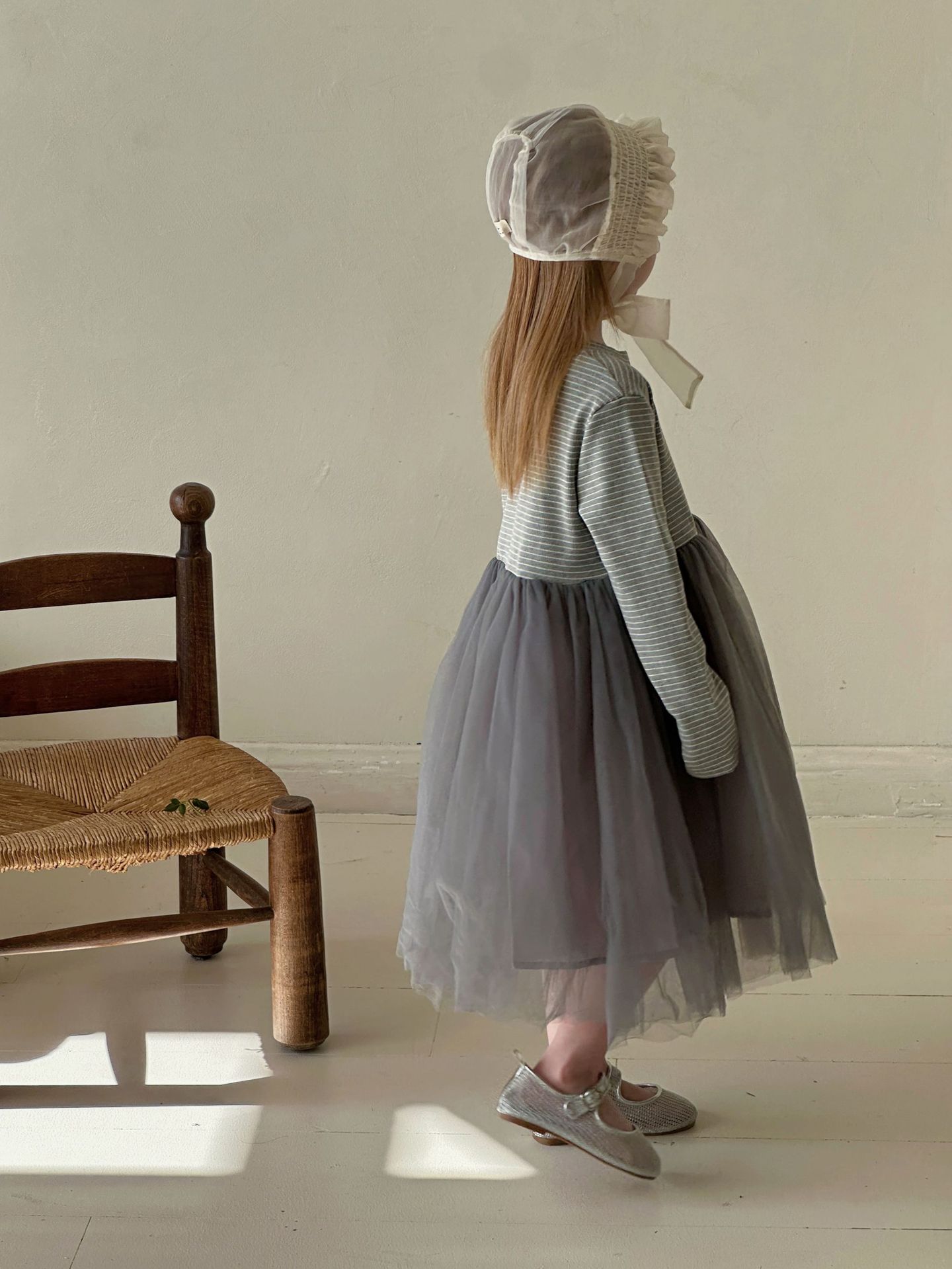 여자 드레스 2025 봄과 가을 새로운 어린이 달콤한 스플 라이스 메쉬 스커트 아기 유행 긴팔 공주 드레스