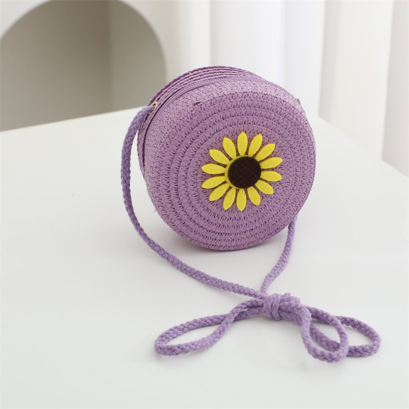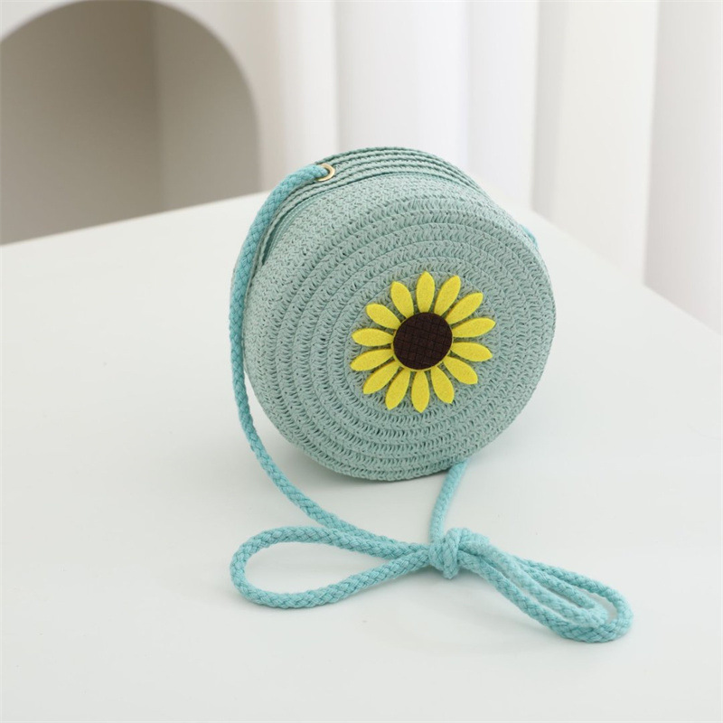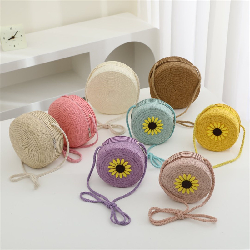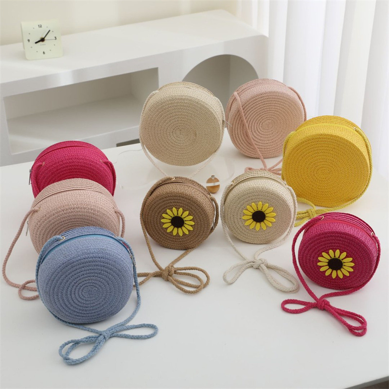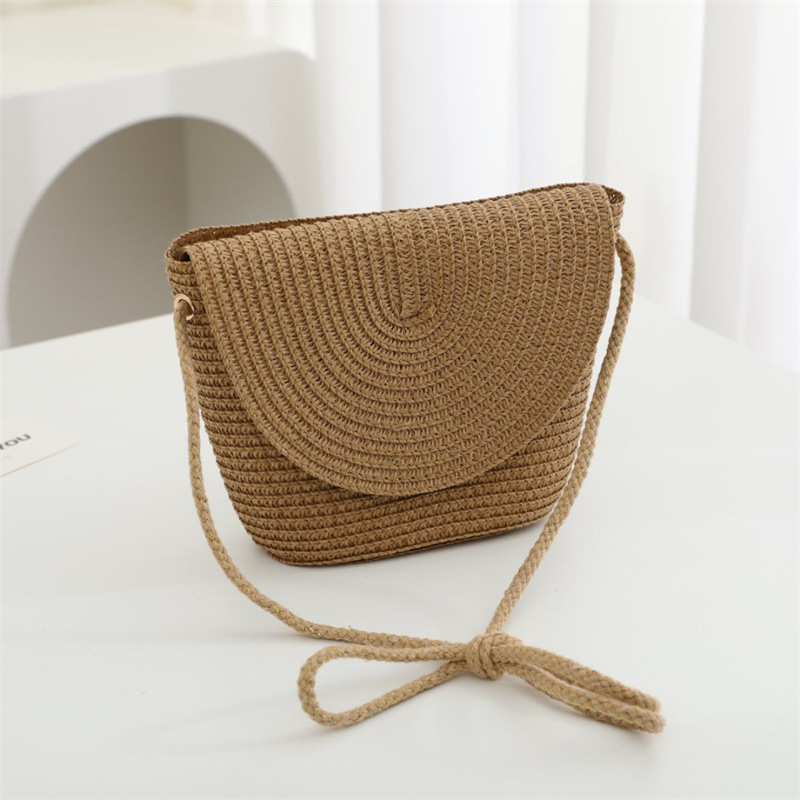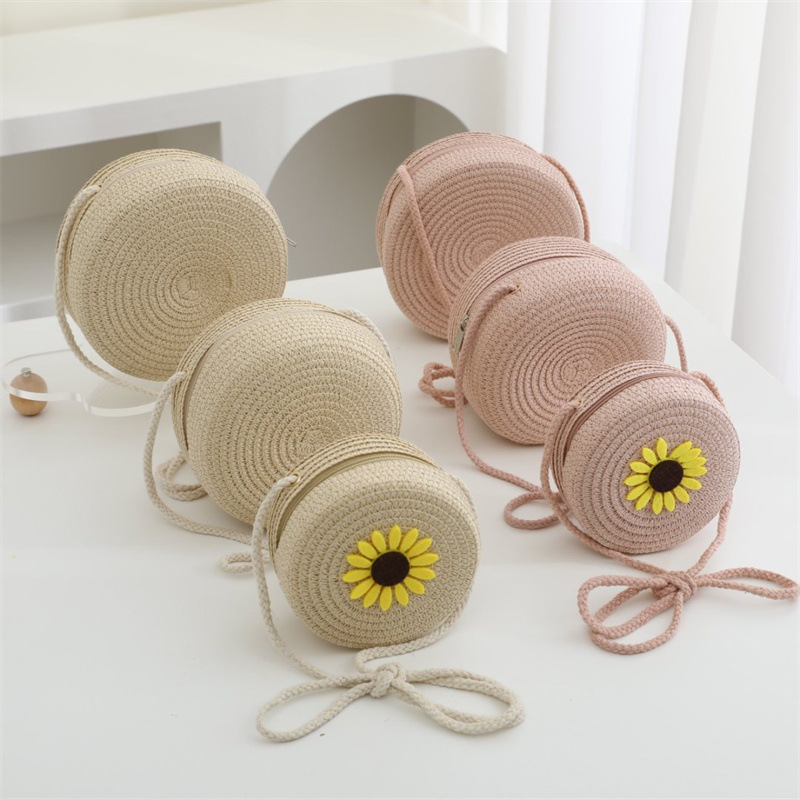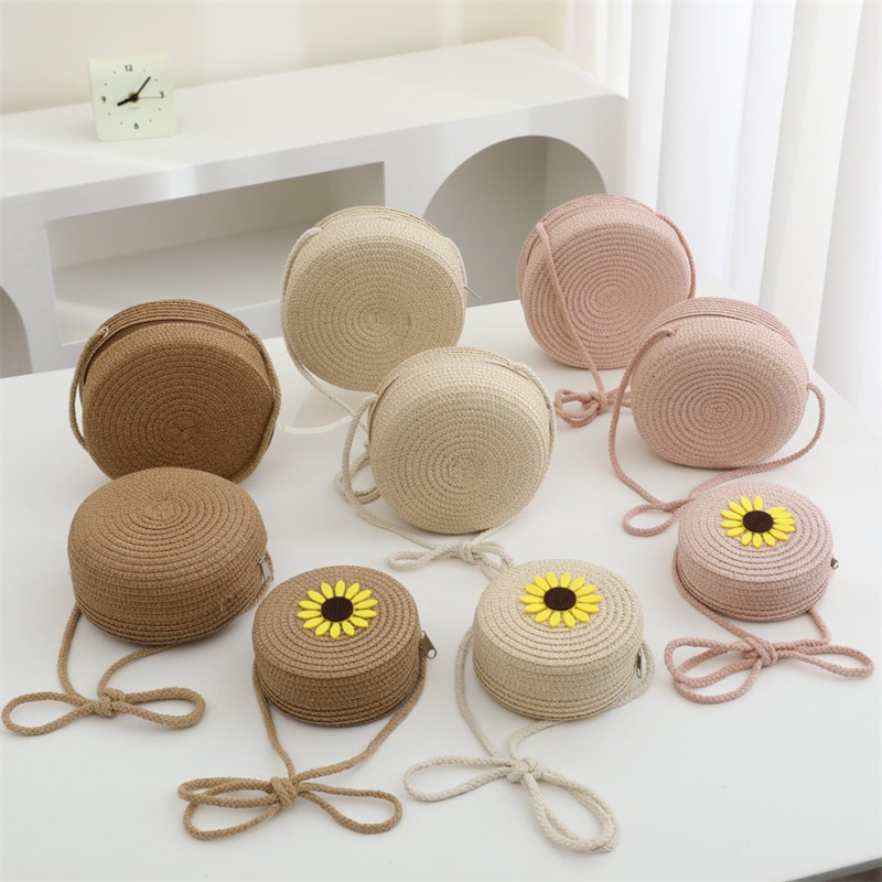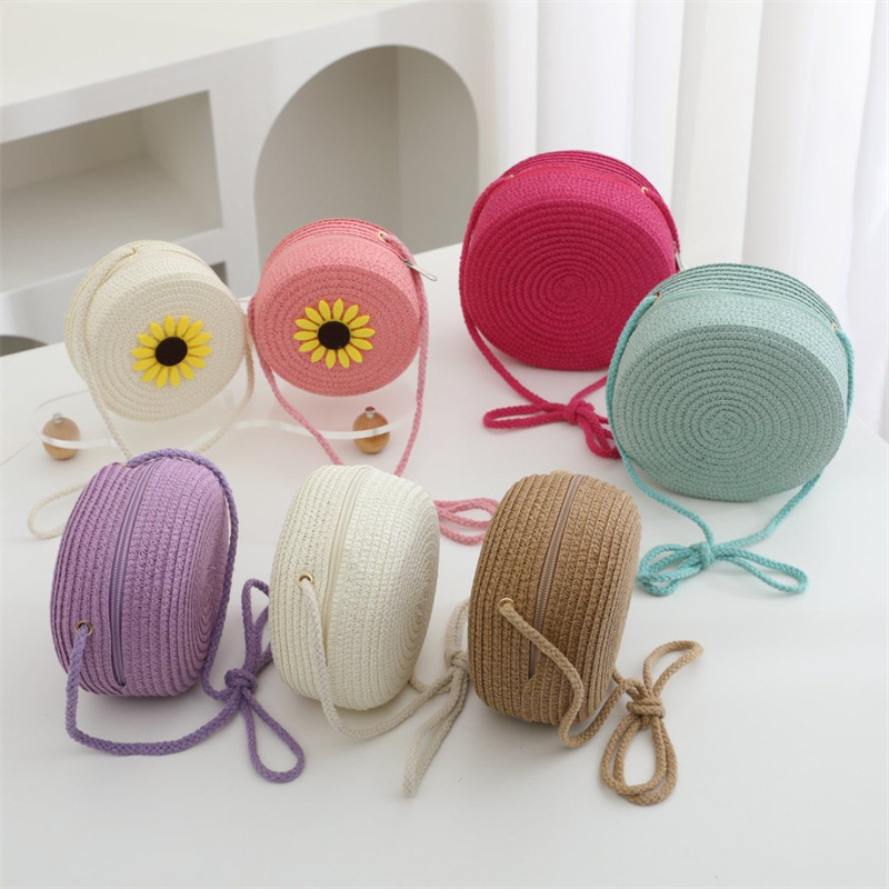 여름 어린이 작은 가방 여성의 귀여운 크로스 바디 소년의 유행 밀짚 가방 짠 가방 2024 새로운 도착 목회 스타일 해변스토어 가기
