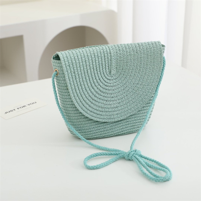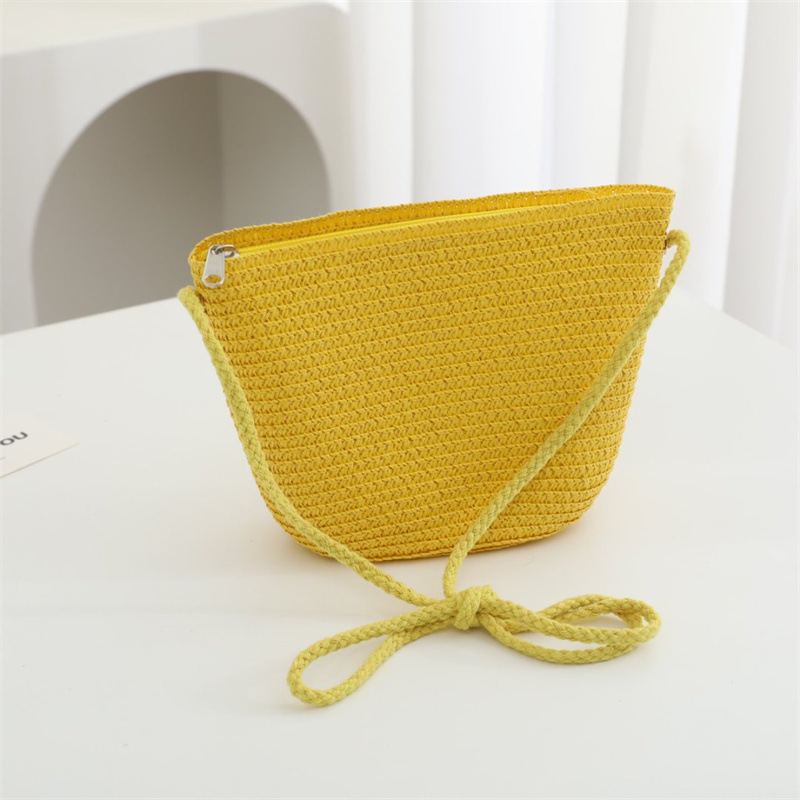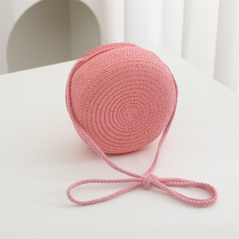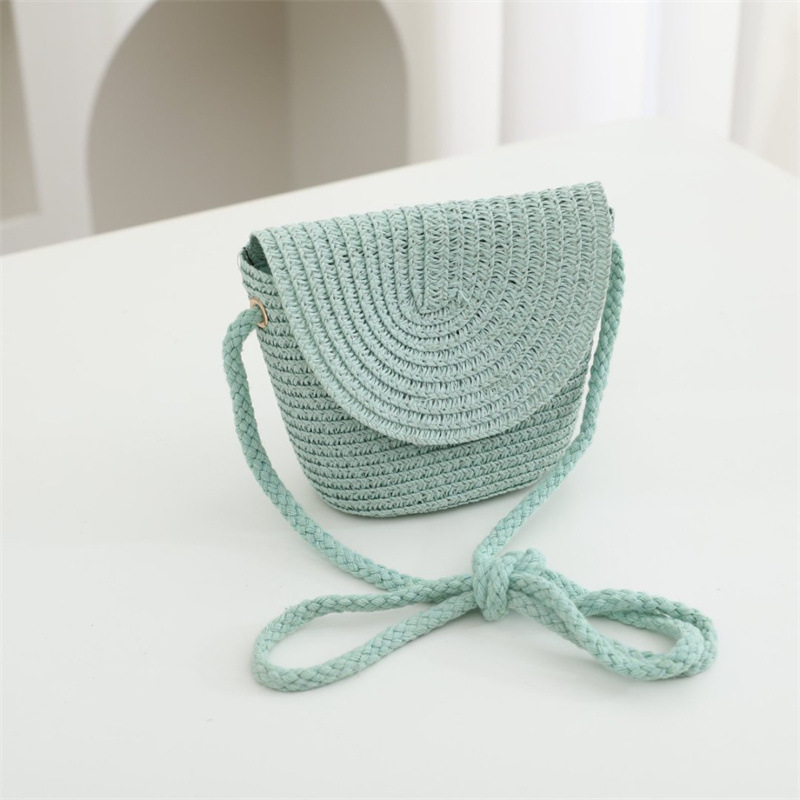 여름 어린이 작은 가방 여성의 귀여운 크로스 바디 소년의 유행 밀짚 가방 짠 가방 2024 새로운 도착 목회 스타일 해변