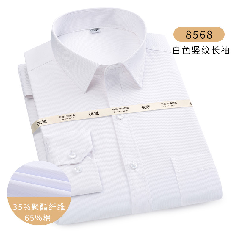남성용 긴팔 봄과 가을 화이트 셔츠 하이 엔드 비즈니스 원피스 비철 세트 셔츠 단색 느슨한 플러스 사이즈 접힘스토어 가기