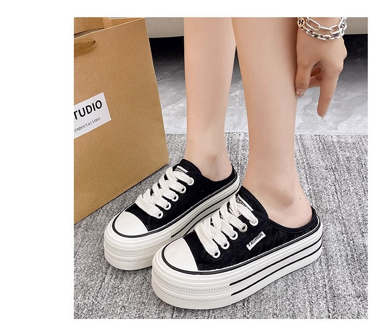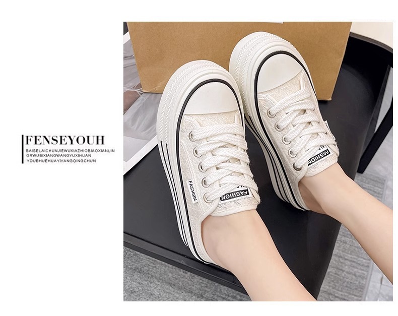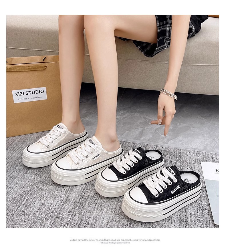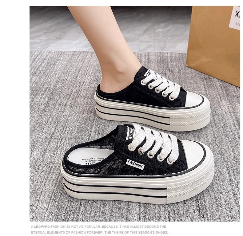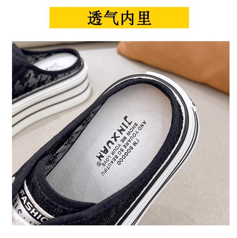 바오터우 샌들 및 슬리퍼 여성의 2024 년 여름 새로운 도착 하프 슬리퍼 Ins 레이스 통기성 플랫폼 올매치 두꺼운 신발 트렌디스토어 가기