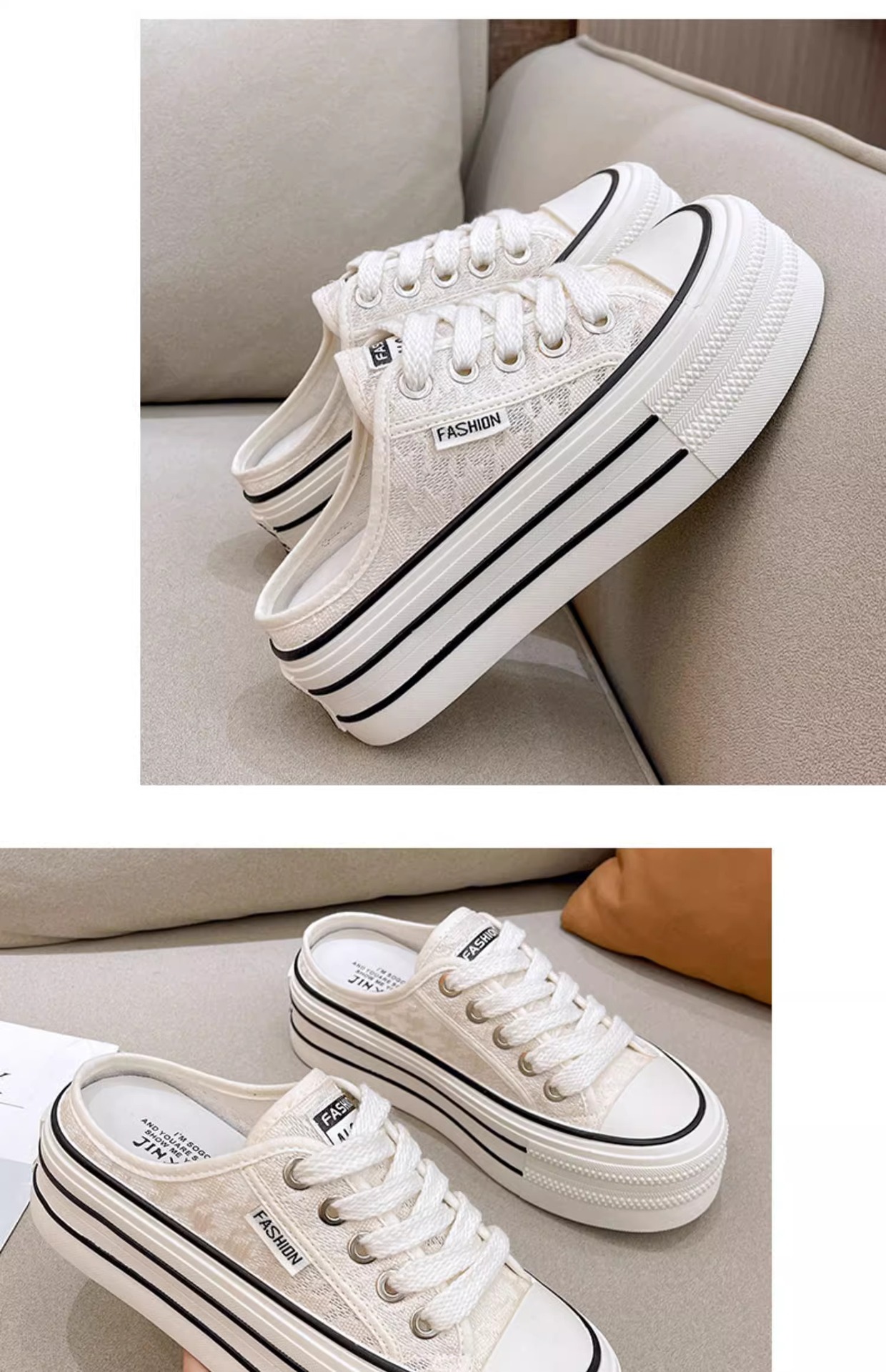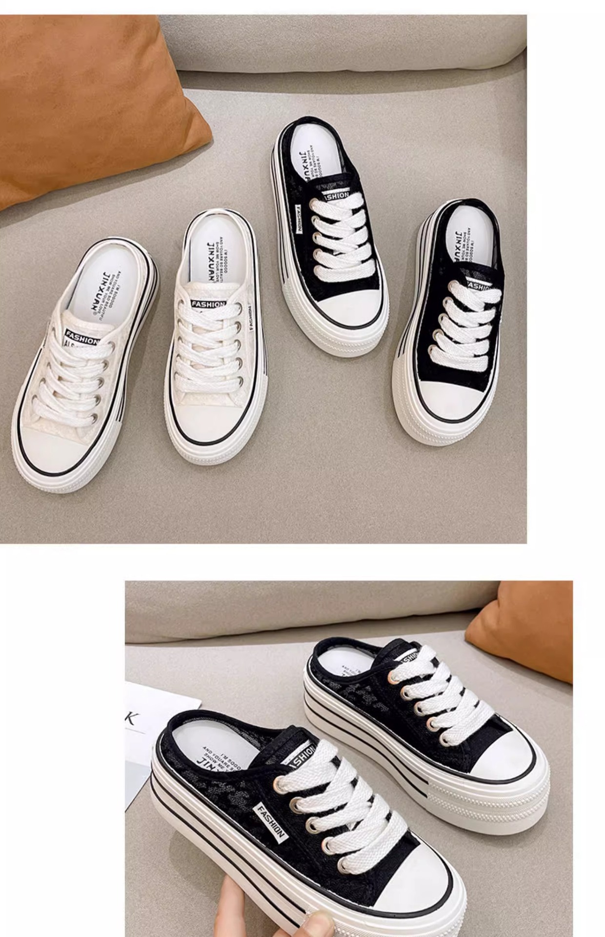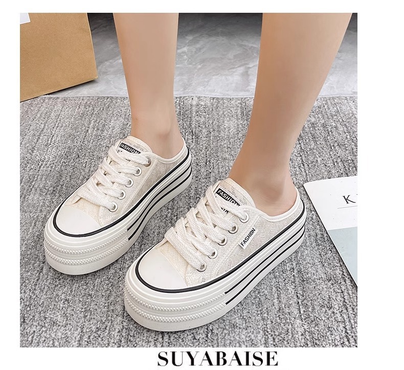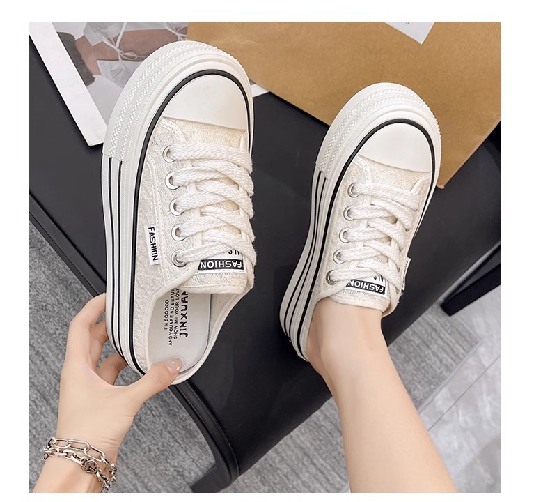 바오터우 샌들 및 슬리퍼 여성의 2024 년 여름 새로운 도착 하프 슬리퍼 Ins 레이스 통기성 플랫폼 올매치 두꺼운 신발 트렌디스토어 가기