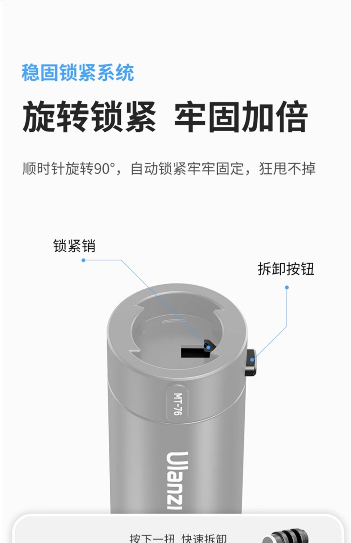 울란지 바스켓 고-퀵 II 마그네틱 어트랙션 퀵 릴리스 1.5M 스포츠 카메라 확장 셀카 스틱