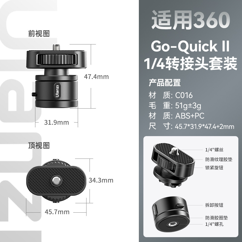 • [360에 적용 가능] GO-Quick II 1.5M 확장 셀카봉 + 1/4 어댑터 세트
