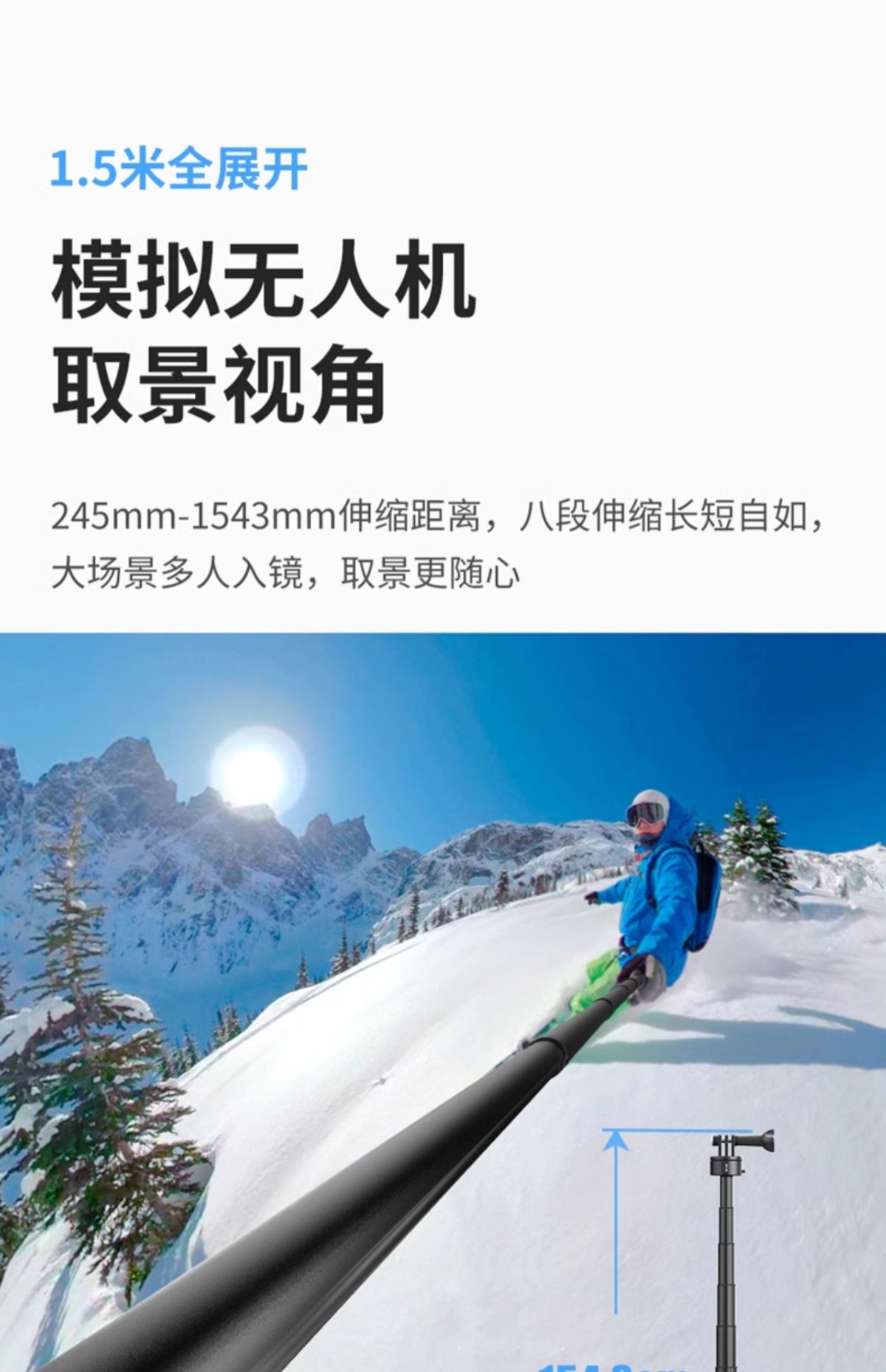 • [액션 적용 가능] GO-Quick II 1.5M 확장 셀카봉 + 액션 마그네틱 베이스