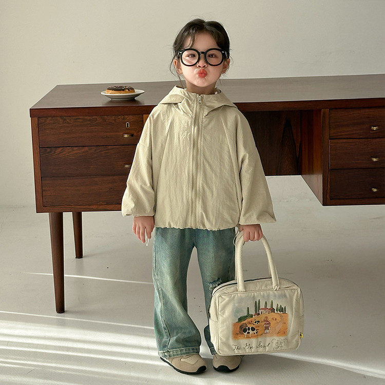 소녀 코트 봄과 가을 2025 새로운 어린이 서양식 유행 봄 코트 여성 아기 한국 후드 재킷스토어 가기
