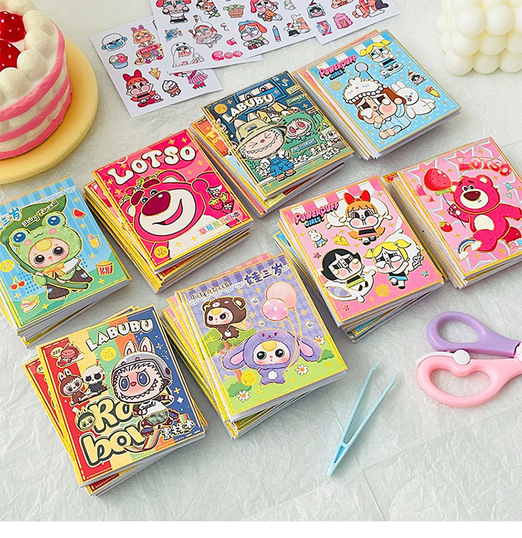 새로운 lububu 손 계정 소재이 딸기 곰 수제 diy 스티커 아기 3 세 무료 절단 창조적 인 스티커 책스토어 가기