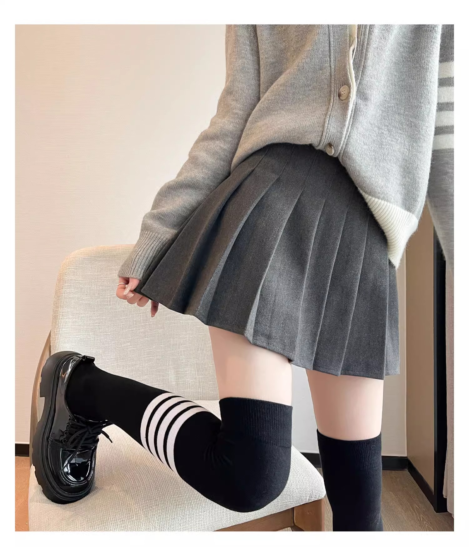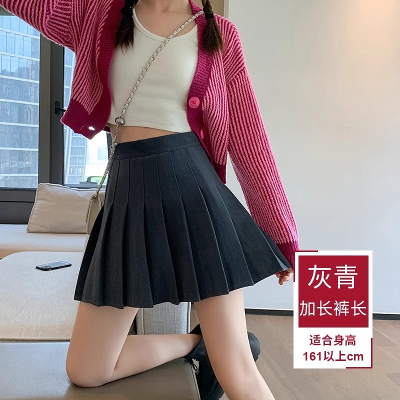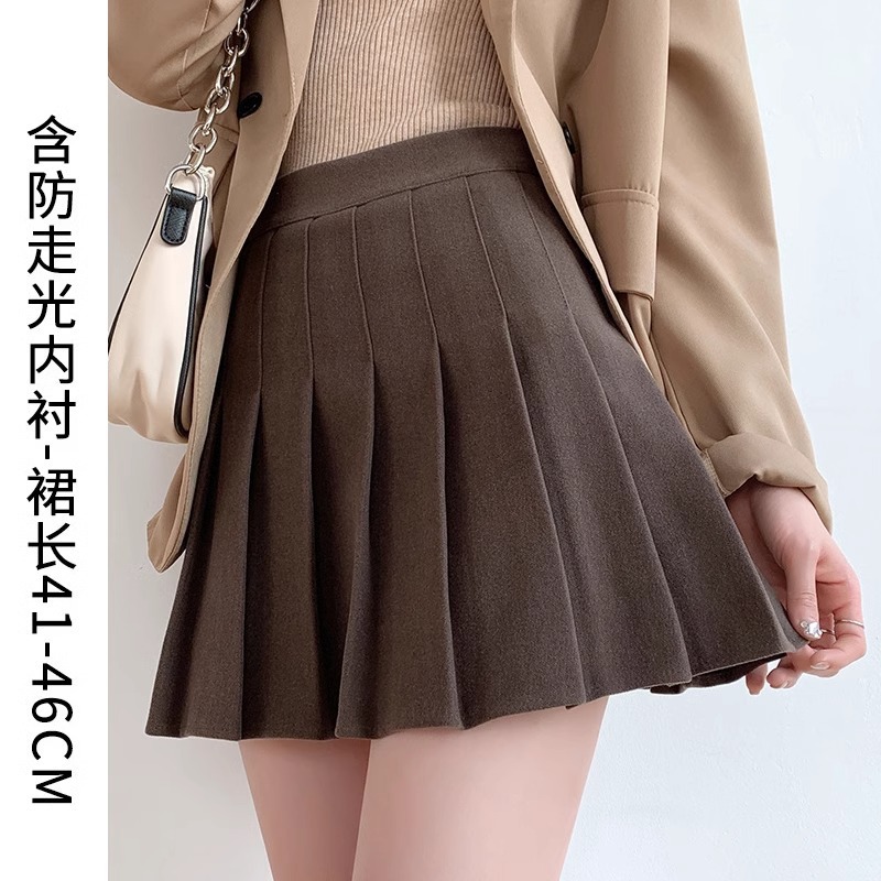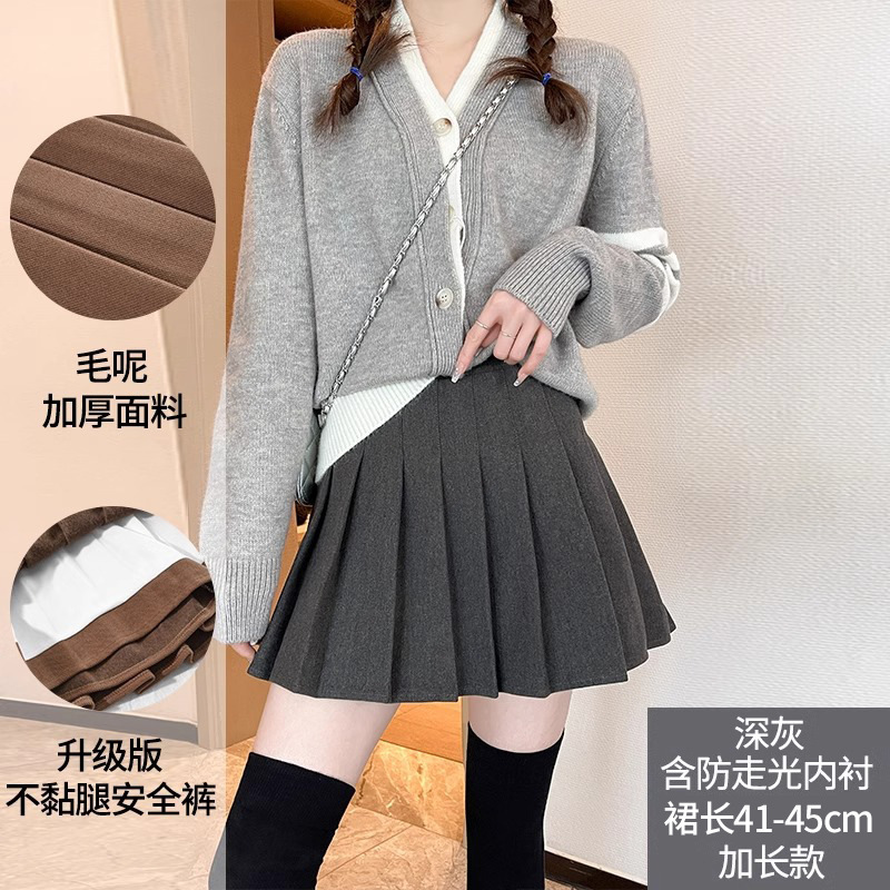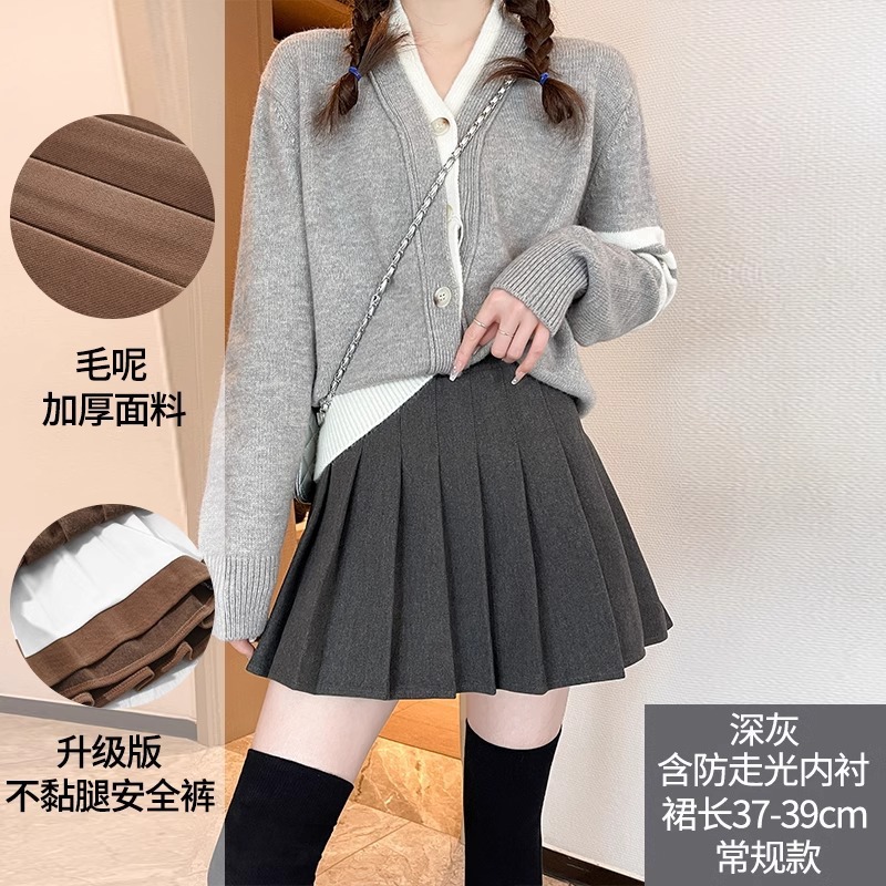높은 허리 슬림 치마 주름 치마 여성 다크 그레이 울 스커트 겨울 새로운 봄과 가을 JK