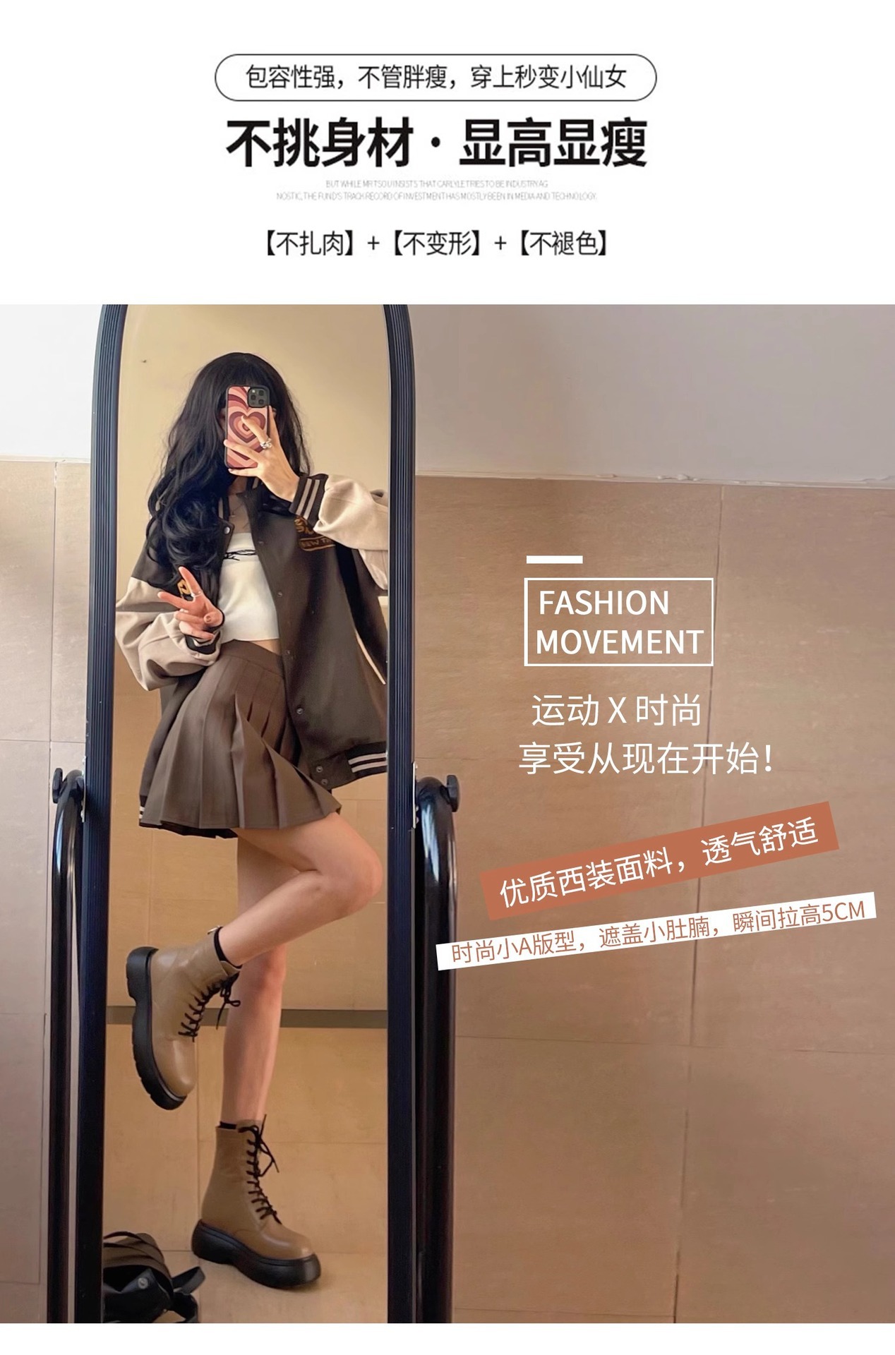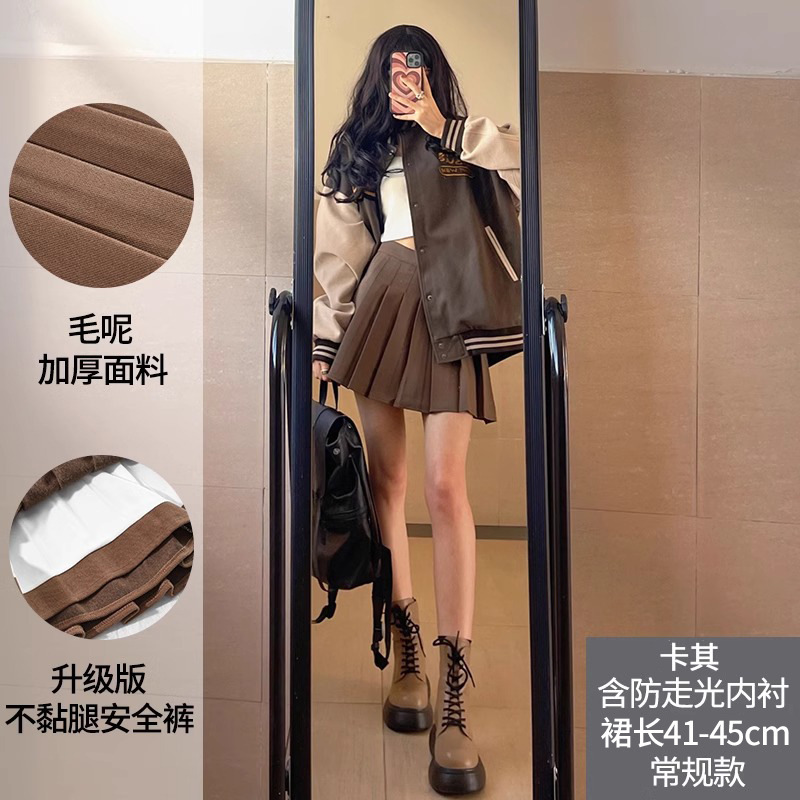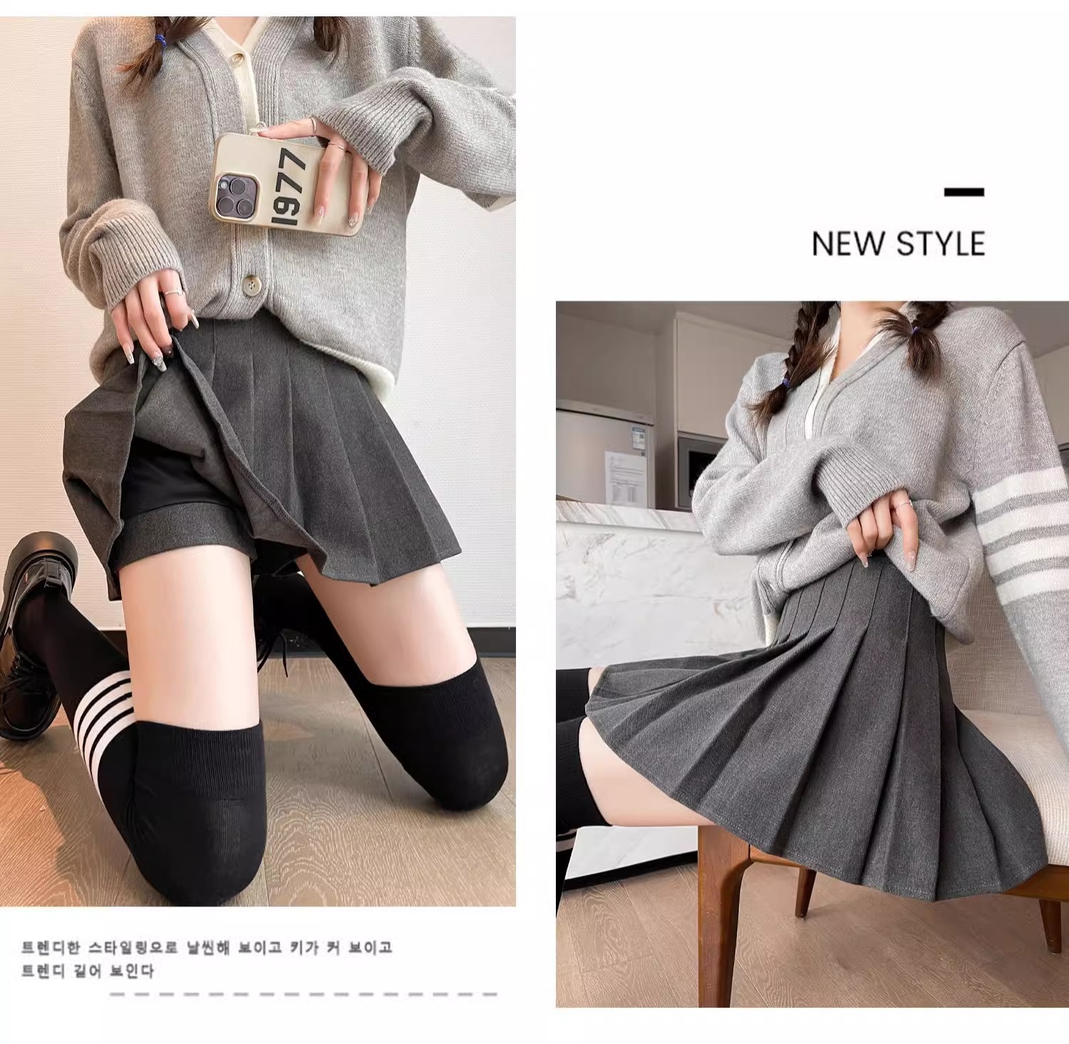 높은 허리 슬림 치마 주름 치마 여성 다크 그레이 울 스커트 겨울 새로운 봄과 가을 JK