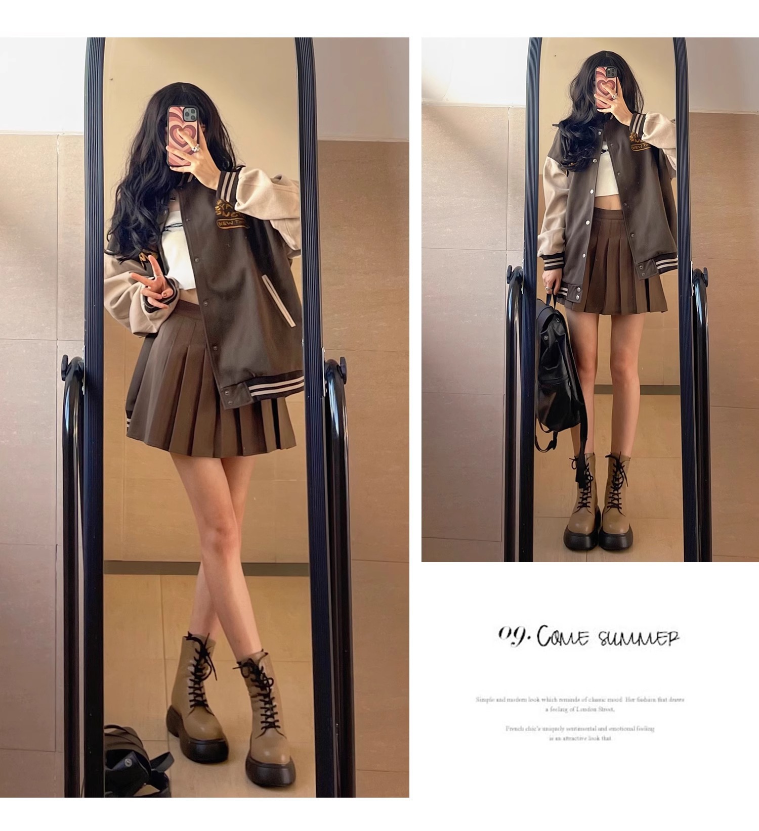 높은 허리 슬림 치마 주름 치마 여성 다크 그레이 울 스커트 겨울 새로운 봄과 가을 JK스토어 가기