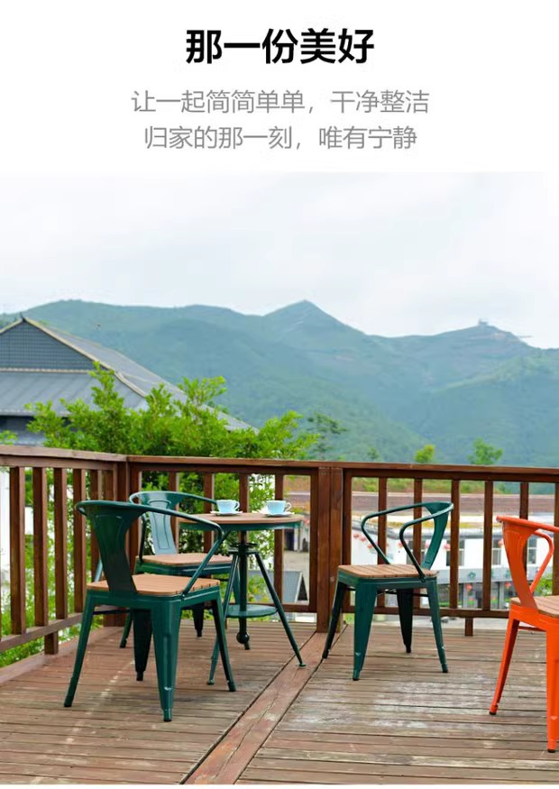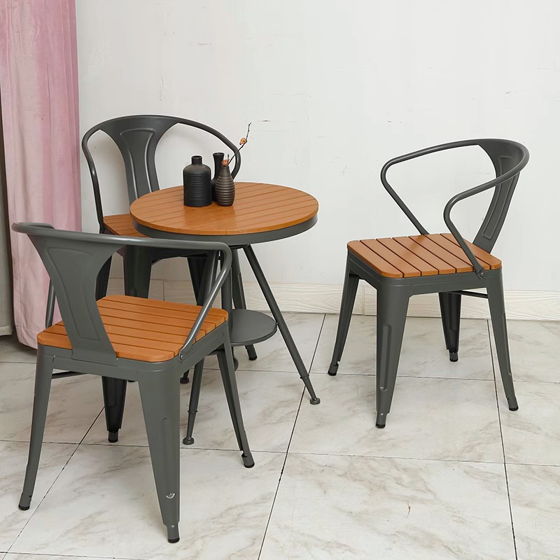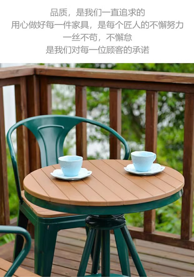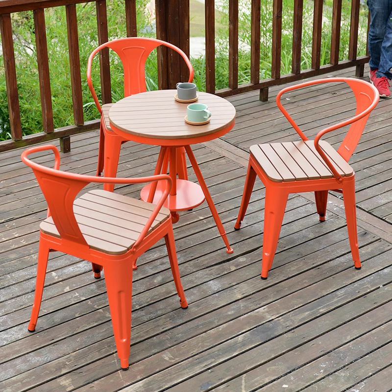 간단한 플라스틱 나무 야외 테이블 및 의자 야외 안뜰 발코니 야외 식당 레저 테이블 카페 외부 테이블 및 의자 조합