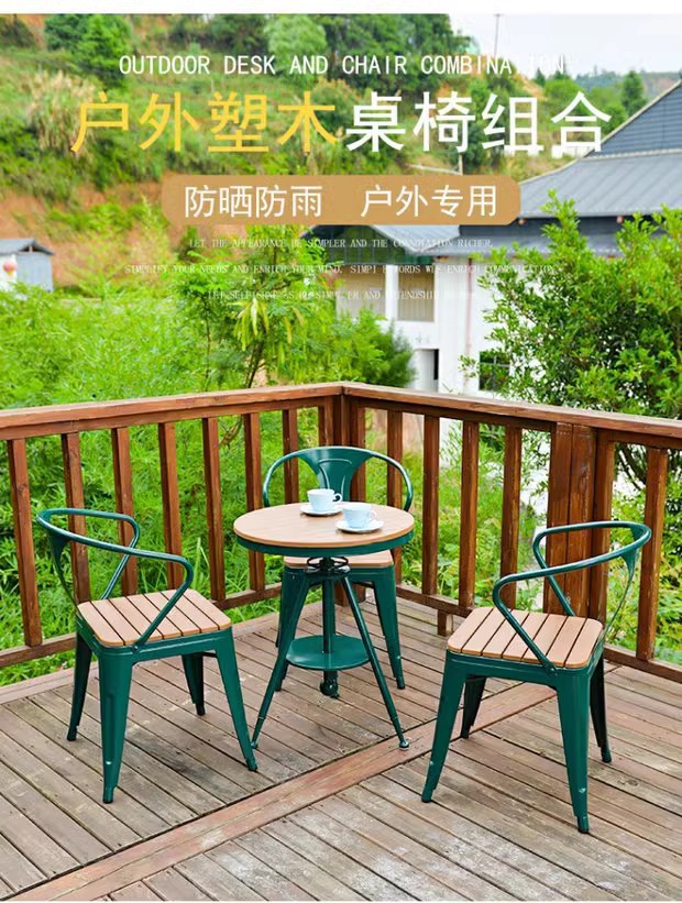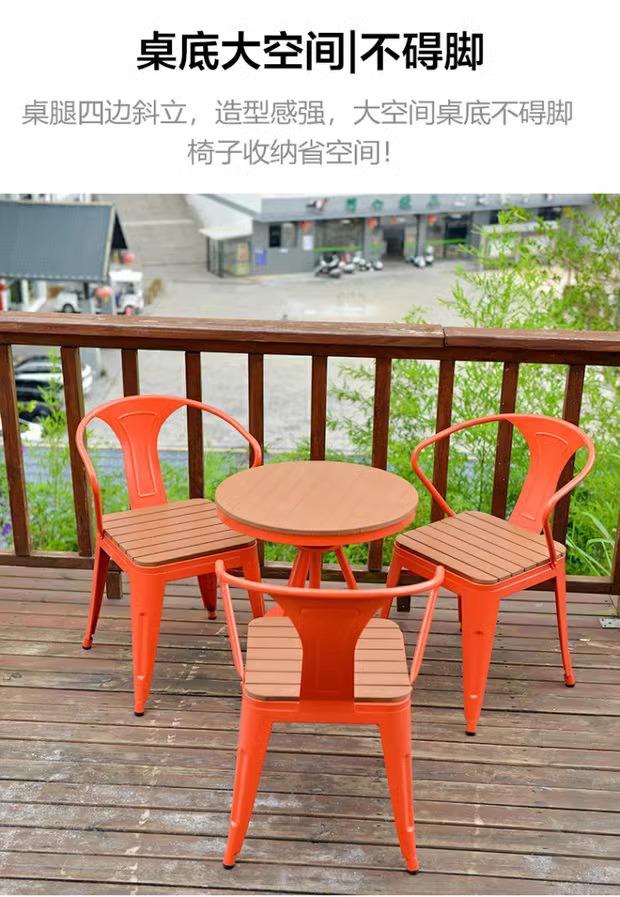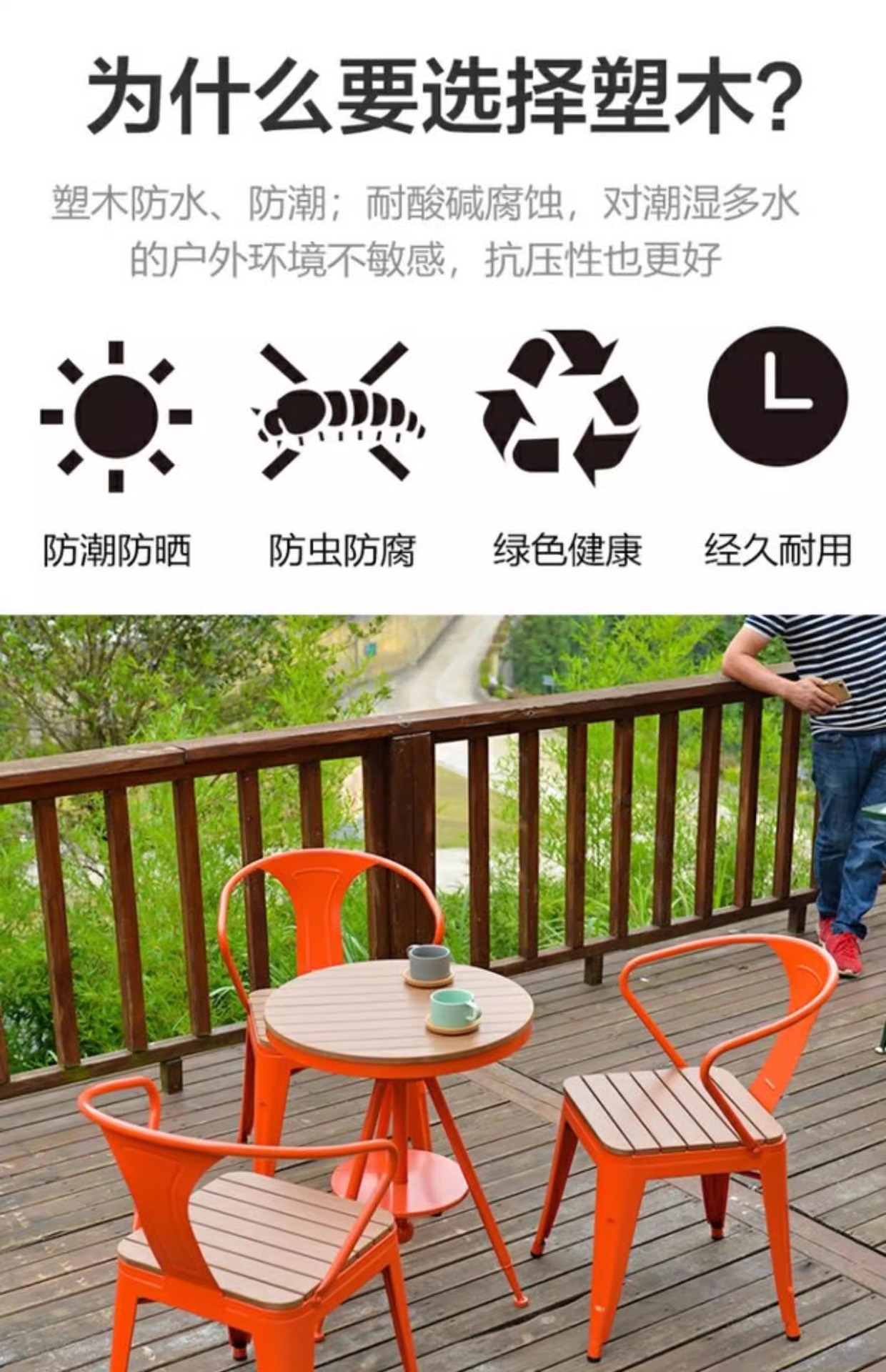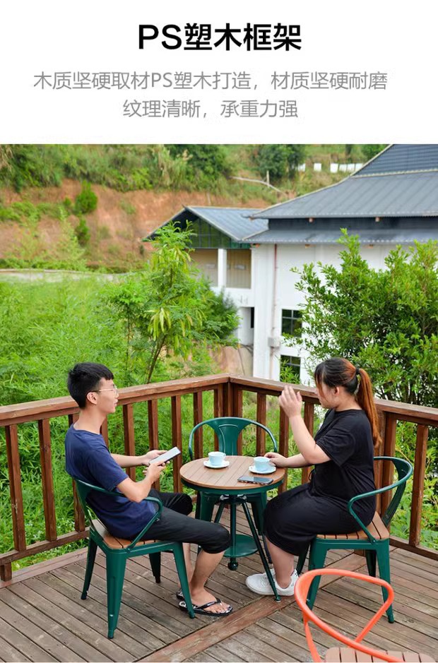간단한 플라스틱 나무 야외 테이블 및 의자 야외 안뜰 발코니 야외 식당 레저 테이블 카페 외부 테이블 및 의자 조합스토어 가기
