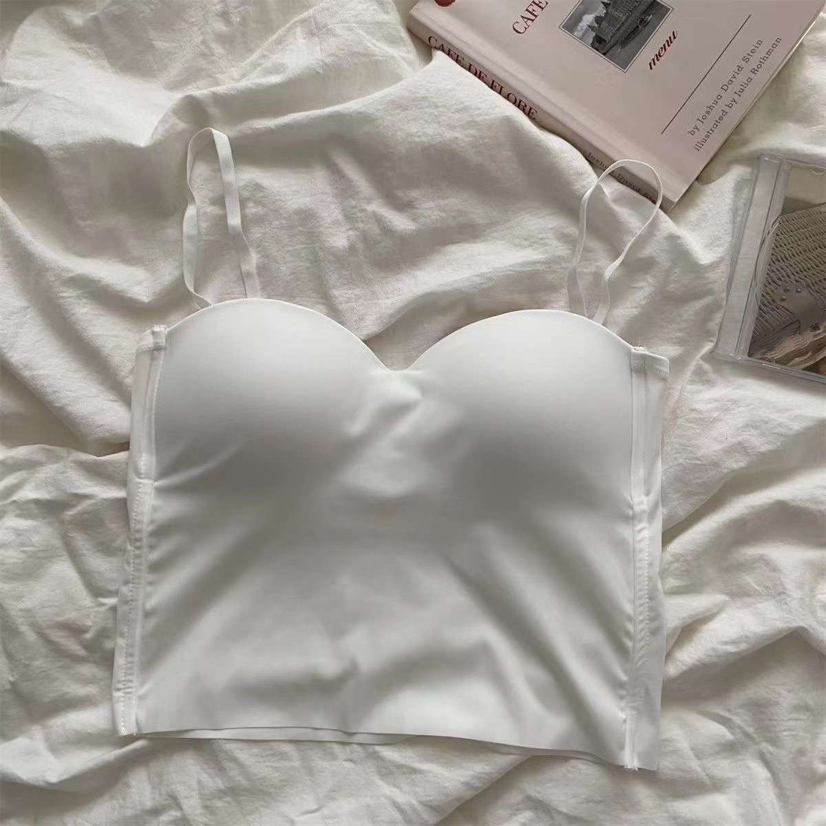 여성용 튜브탑 브라, 올인원 조끼 브라, 외출용, 푸쉬업, 아름다운 등라인, 무봉제, 아이스 실크 탑, 고정형 패드스토어 가기