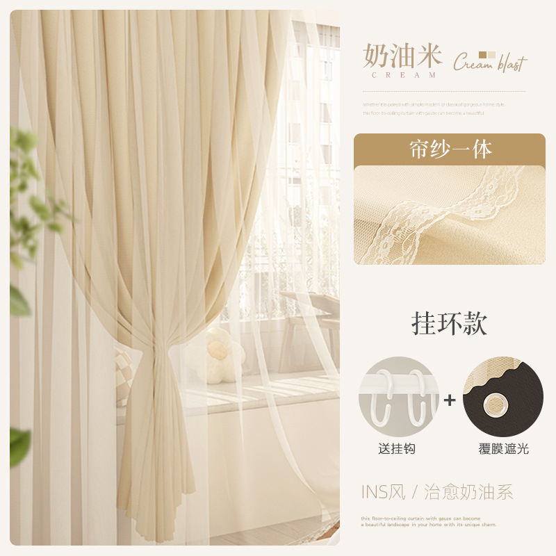 전체 정전 커튼 조명 고급 현대 간단한 침실 더블 레이어 거즈 크림 거실 2025 새로운 스타일스토어 가기